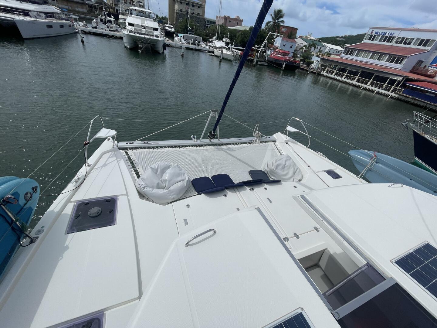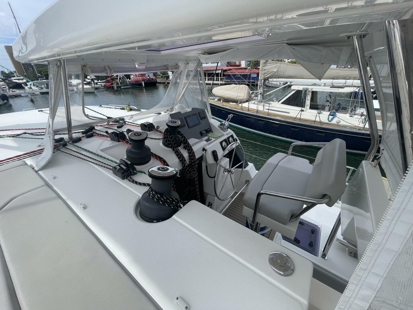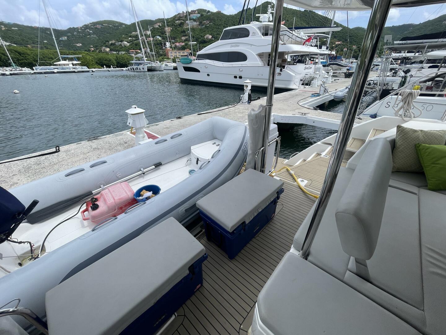 Spacious, upgraded 2019 Leopard 50 with 5 cabins plus crew, flybridge lounge, Raymarine electronics, generator, A/C, watermaker, and hydraulic platform—ideal for bluewater cruising and off-grid Caribbean living.
