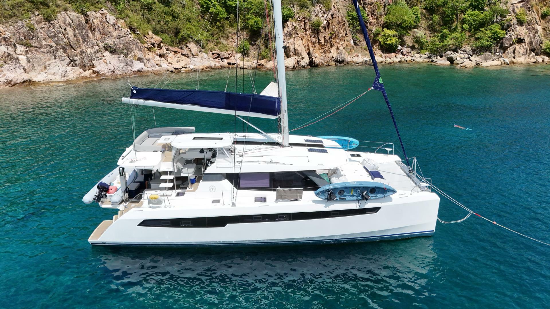 Ordered new by her current and only owner this vessel was delivered to Tortola in 2019. Originally placed with the moorings she was in the Crewed Yacht fleet. Her current and only captain and chef have been with the vessel since new. The first few years of the moorings program saw little use of the boat due to Covid and she was taken out of the program early after just 4 years. Since then she has been operating privately as a boutique crewed charter experience. Her fulltime captain and chef have maintained her to an impressive standard such that the boat shows as if new. Summer storage and maintenance are scheduled for July here in the BVI.