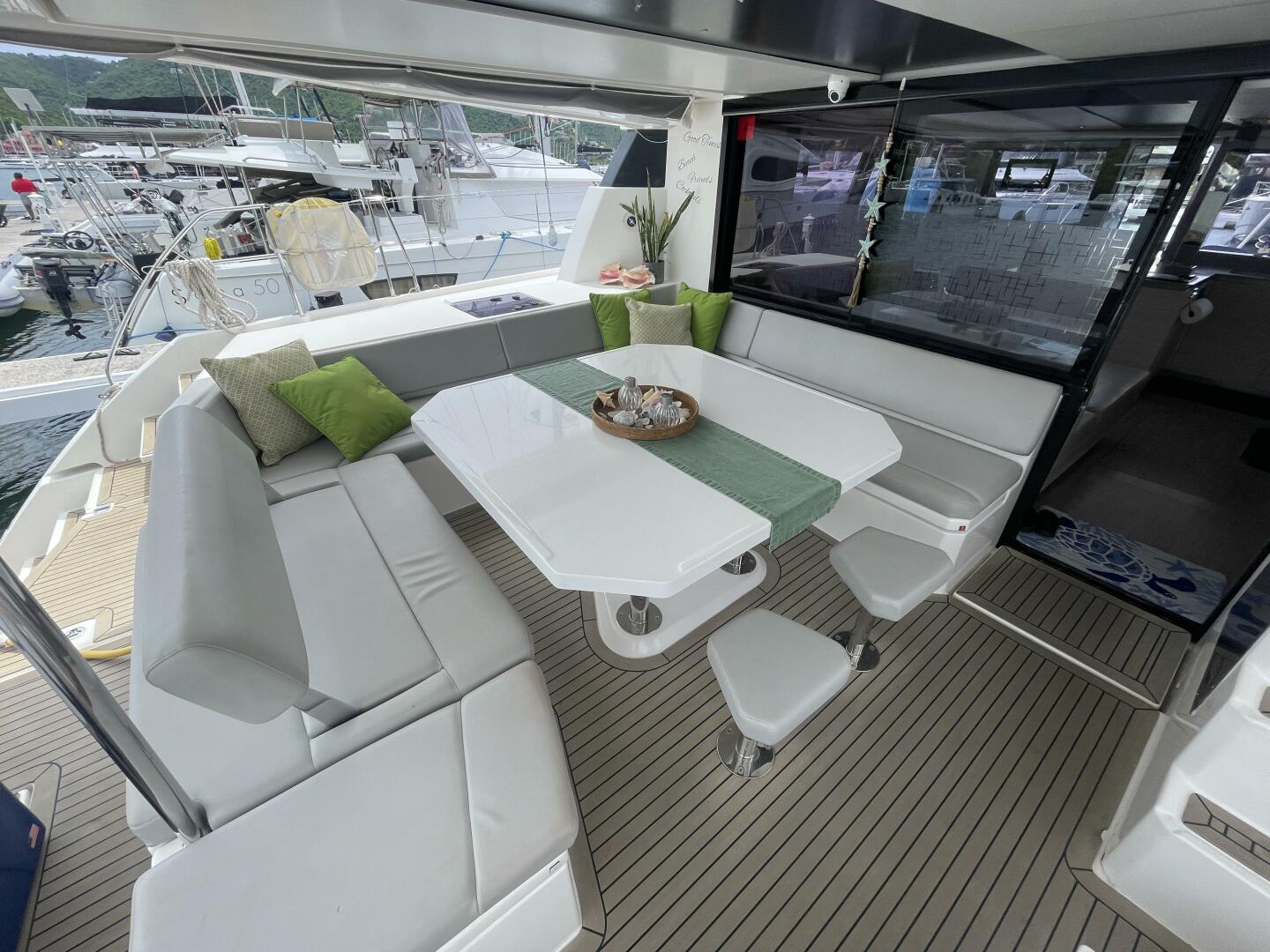 Additional highlights include a hydraulic tender lift platform, electric grill, cockpit refrigeration, and upgraded entertainment systems, making her as comfortable at anchor as she is underway. Whether you're looking to step into a thriving charter business or cruise the world in comfort, this Leopard 50 is ready to deliver.