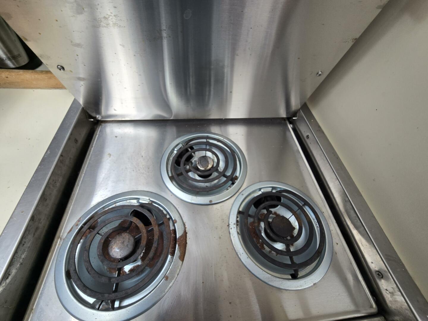 - Full galley with refrigerator, stove and oven, microwave, Corian countertops