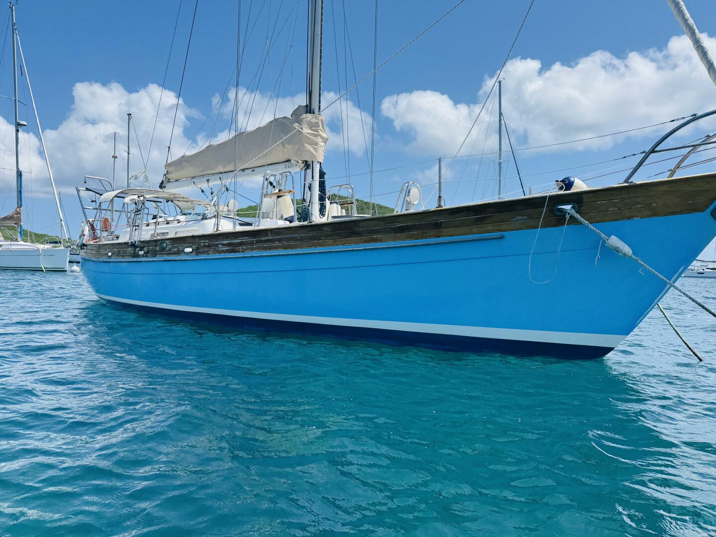 Due to their age, many Christina 43s on the market have been upgraded with new standing rigging, sails, engines, solar panels, lithium batteries, and improved electrical systems. Regular hull maintenance, such as barrier coatings and bottom paint, is also common. These upgrades keep the yacht competitive and reliable for extended offshore use.