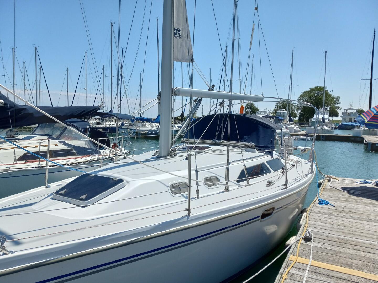 This lovely Catalina 320 has received tender loving care and regular maintenance. It has a new in-mast furling mainsail, her 155 genoa and pole-less top down furling spinnaker are in very good shape as is all running rigging. It also has a top down furling gennaker. both use the Selden extending pole at front of boat.