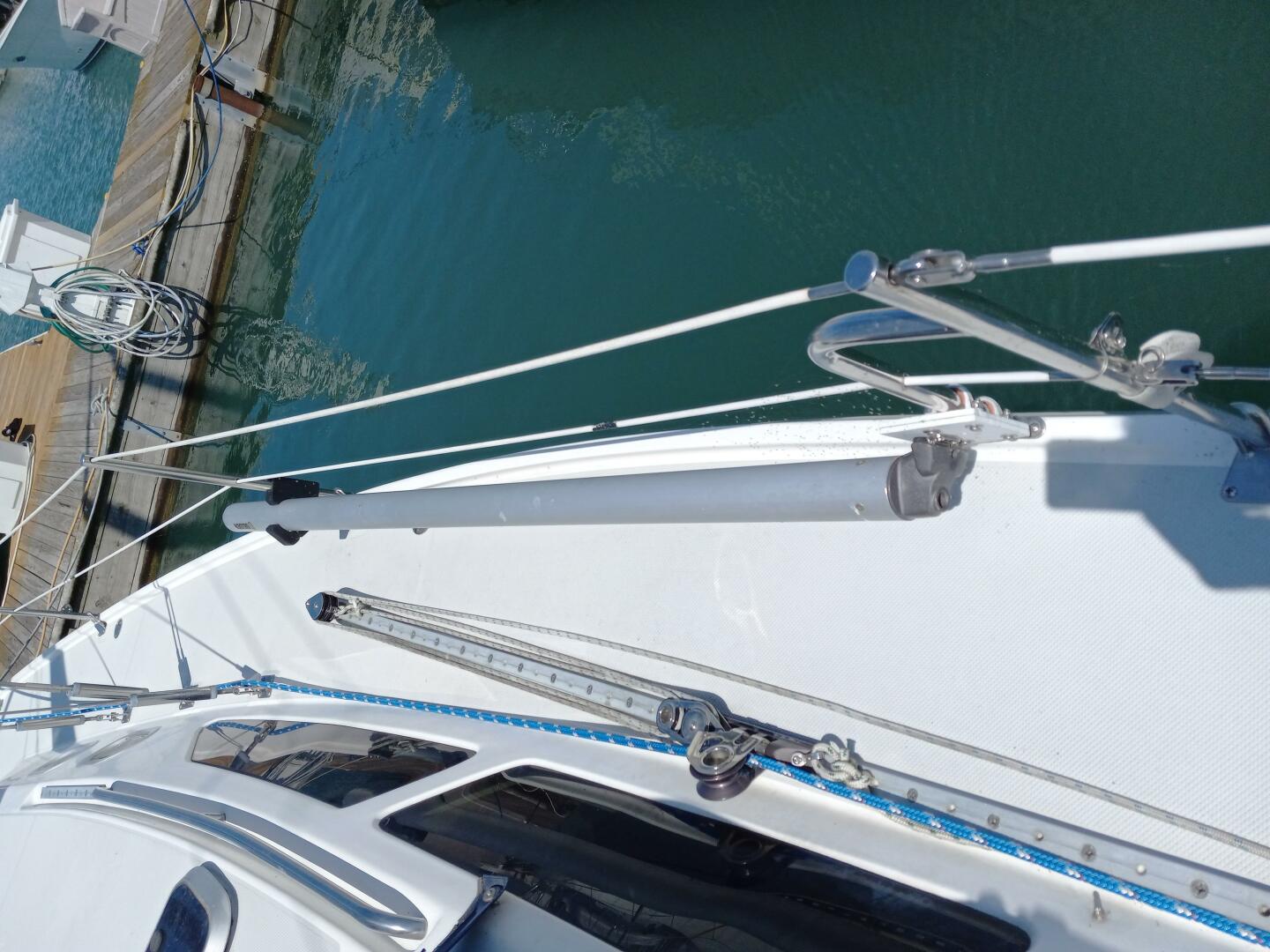 Look across the deck; clean with lines led aft. Furling head sail and in-mast furling allows for ease of use. Start sailing the instant you shut down the dependable Yanmar 27 HP diesel with 2 blade folding bronze racing propeller.