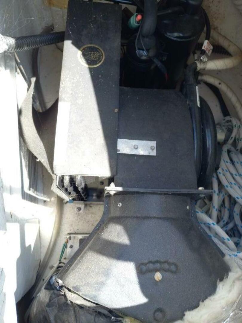 Maxwell 500 electric anchor windlass installed in anchor locker with foot switch