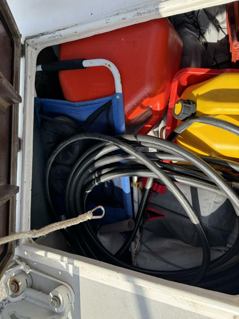 • Emergency Bilge Pump: Manual hose system; can be deployed anywhere in the boat