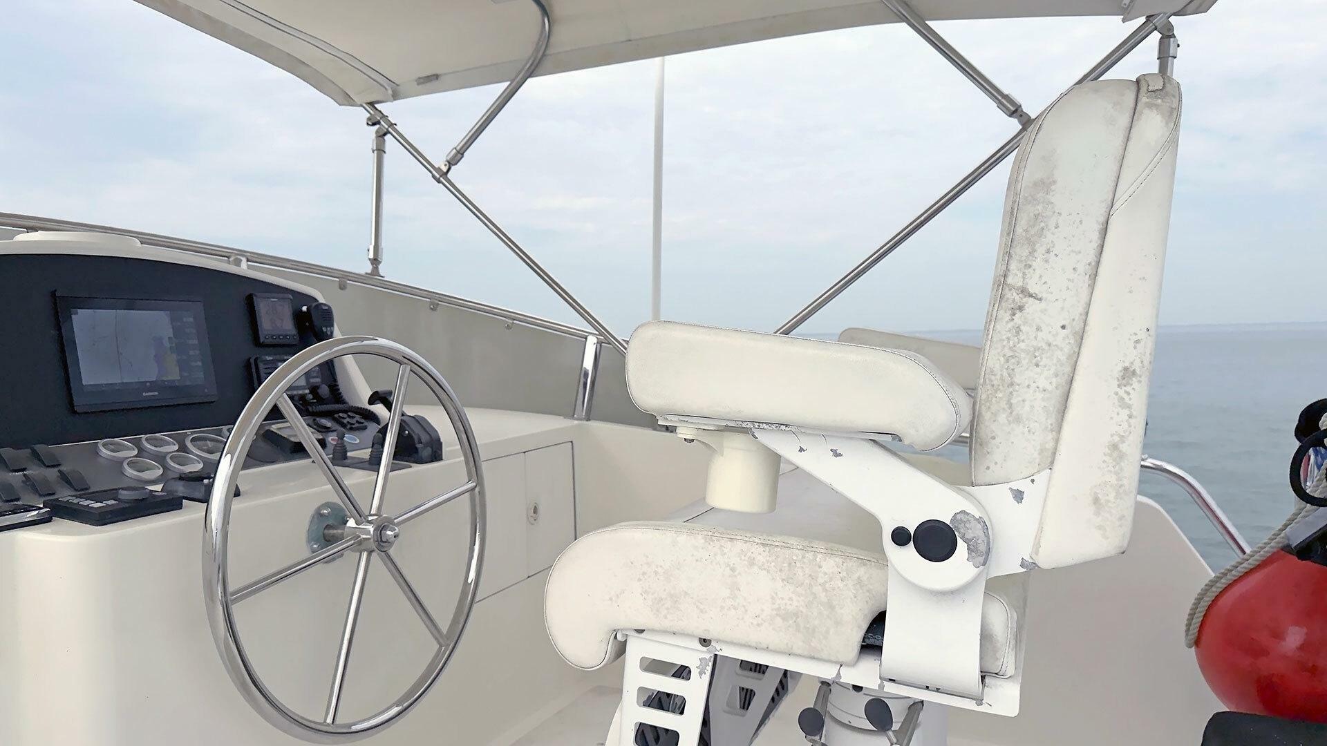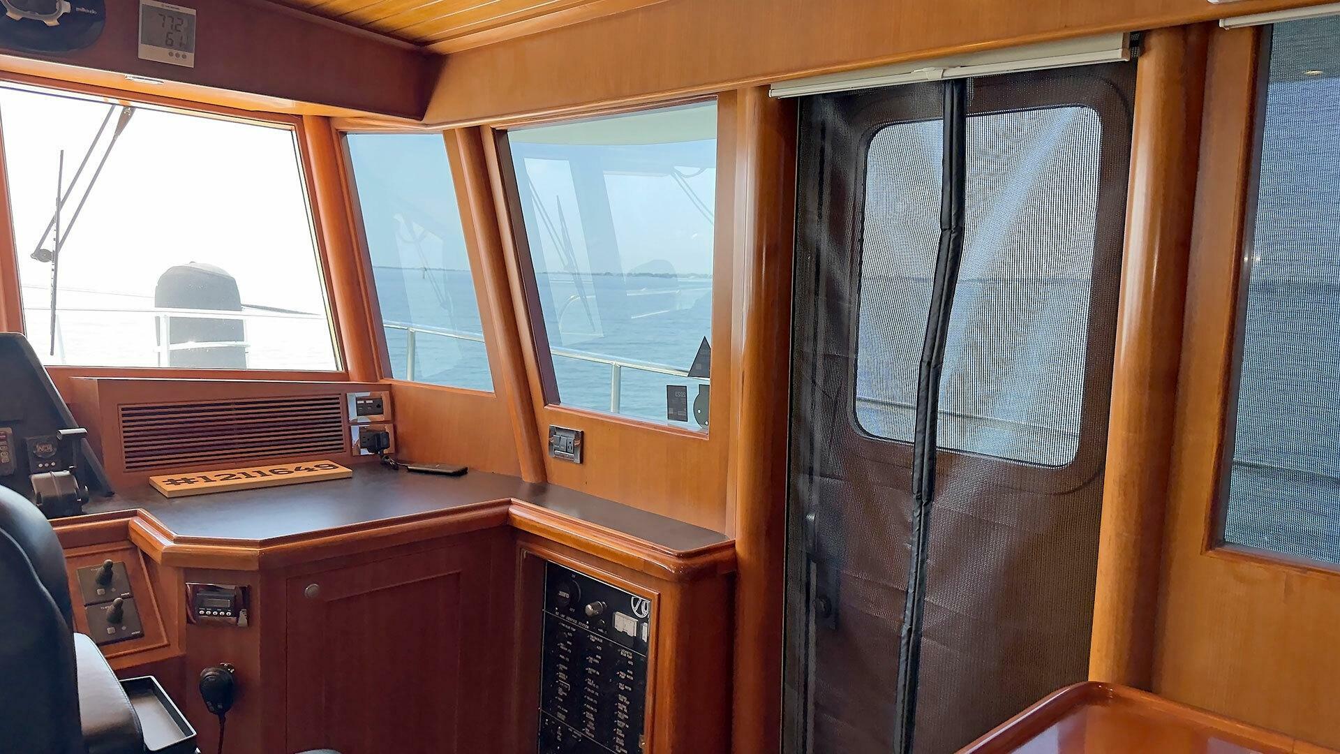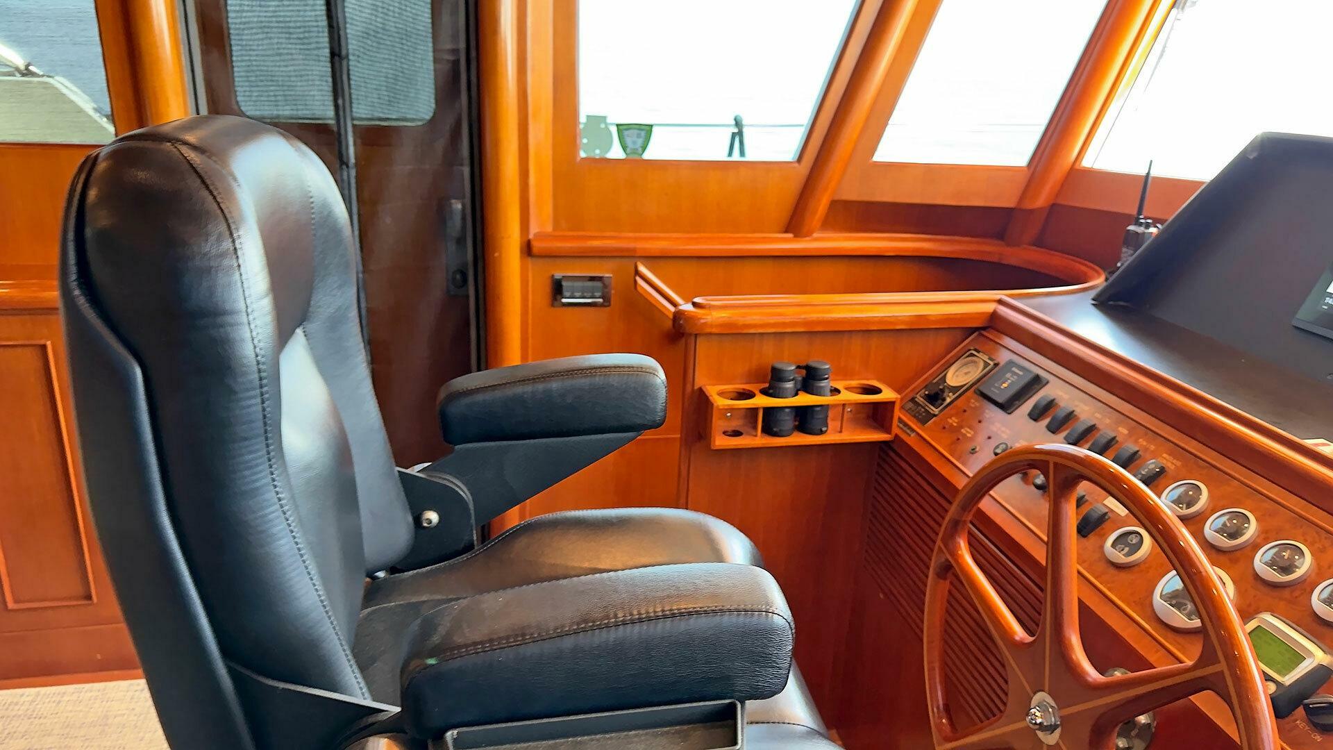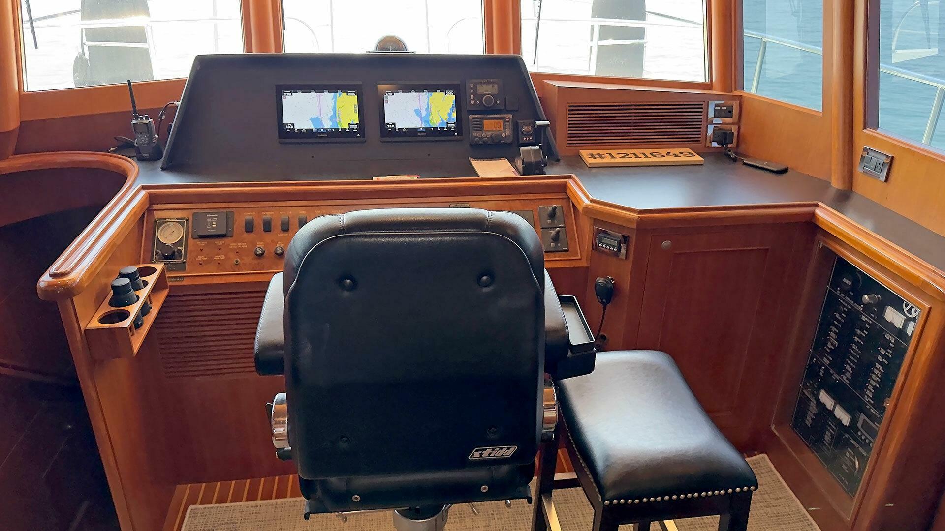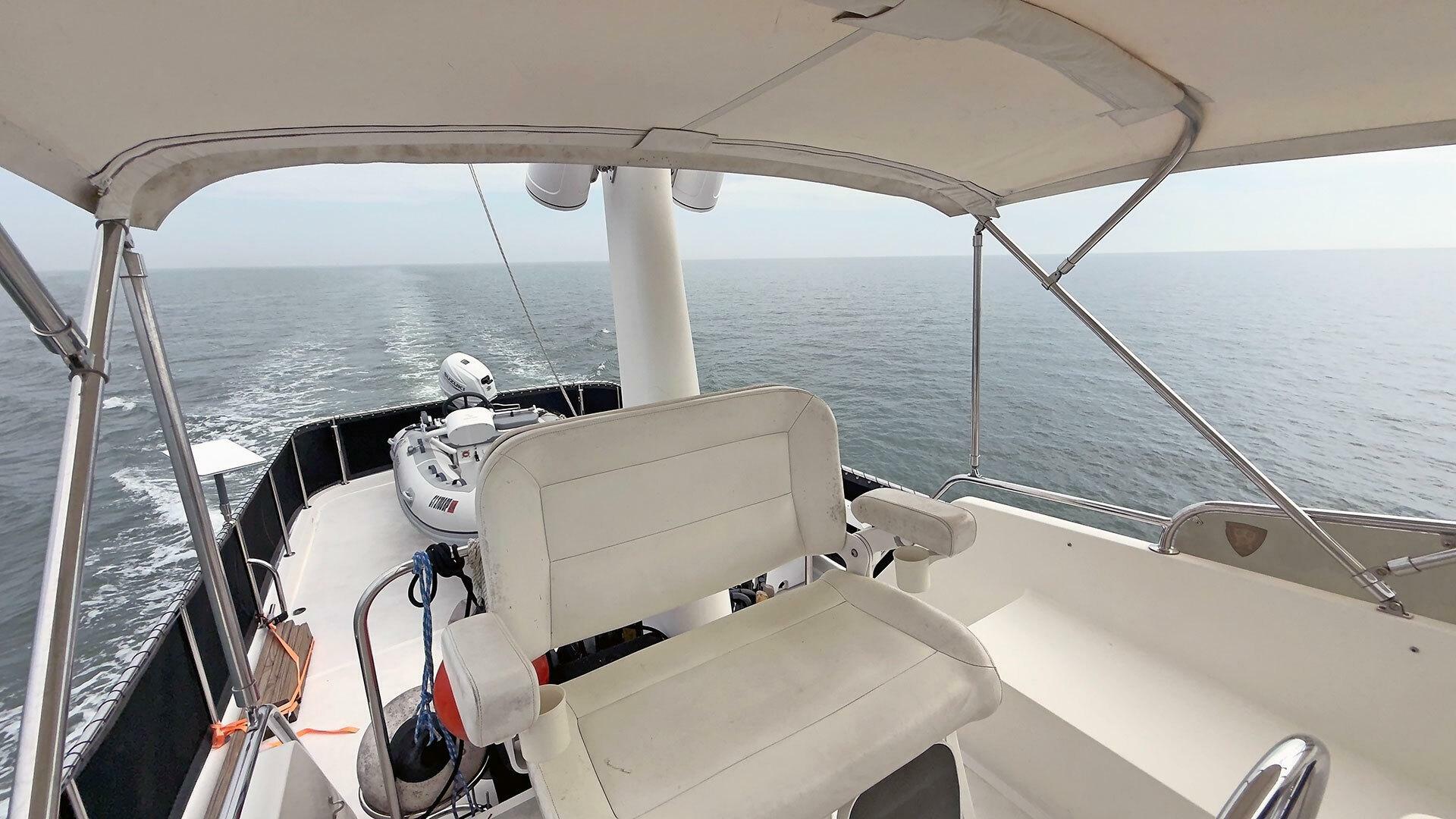 Looking for a fuel-efficient coastal cruising trawler that can head straight to the Bahamas or do the Great Loop? Lightning is a 2007 Ocean Alexander 50 Classicco powered by a 300 HP John Deere 6068 enjoying a smooth ride underway courtesy of her Key Power active fins stabilizers.