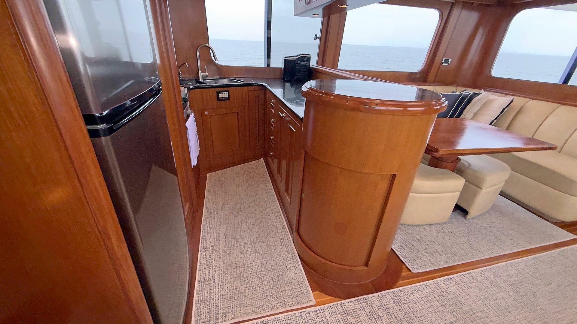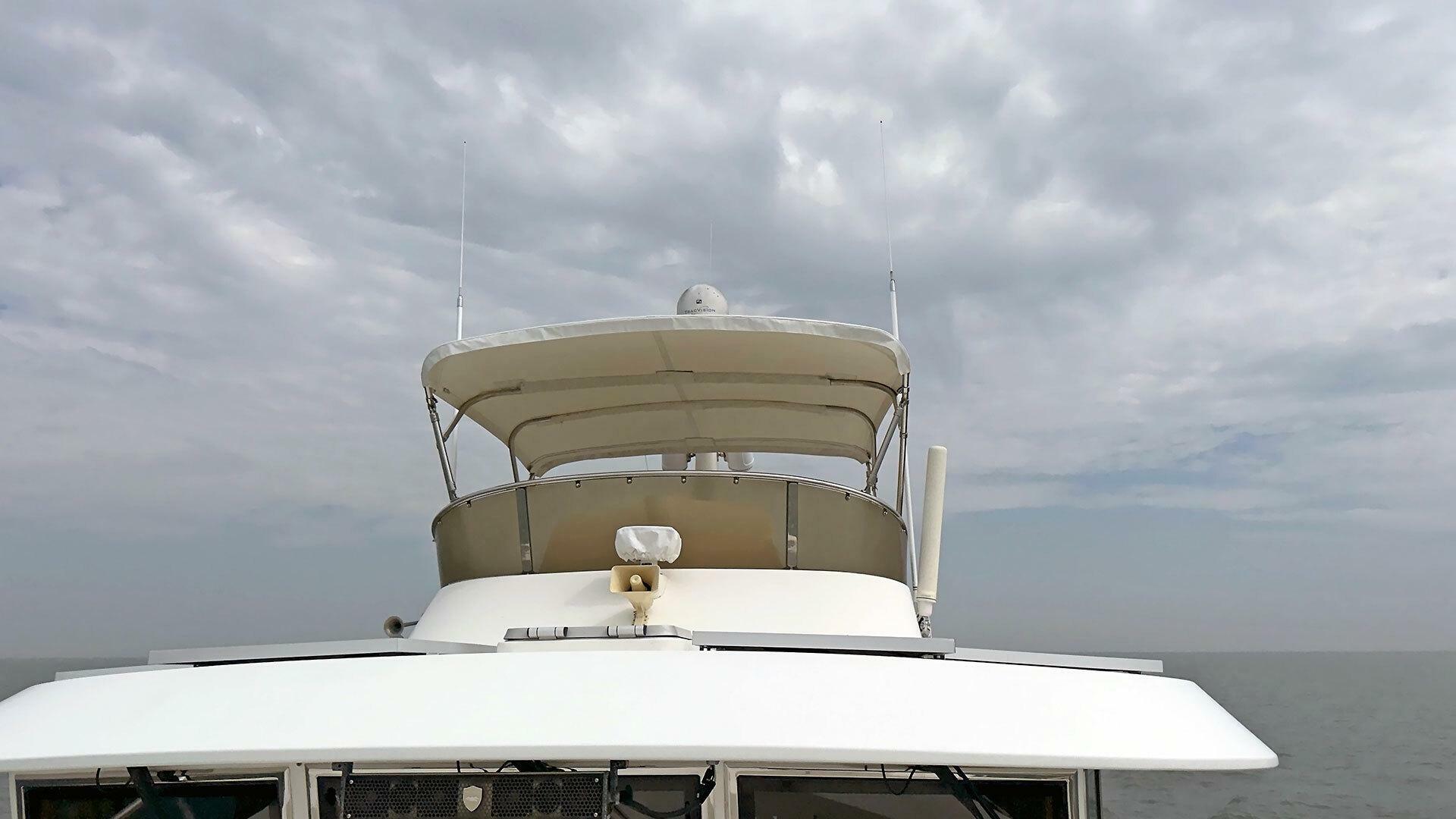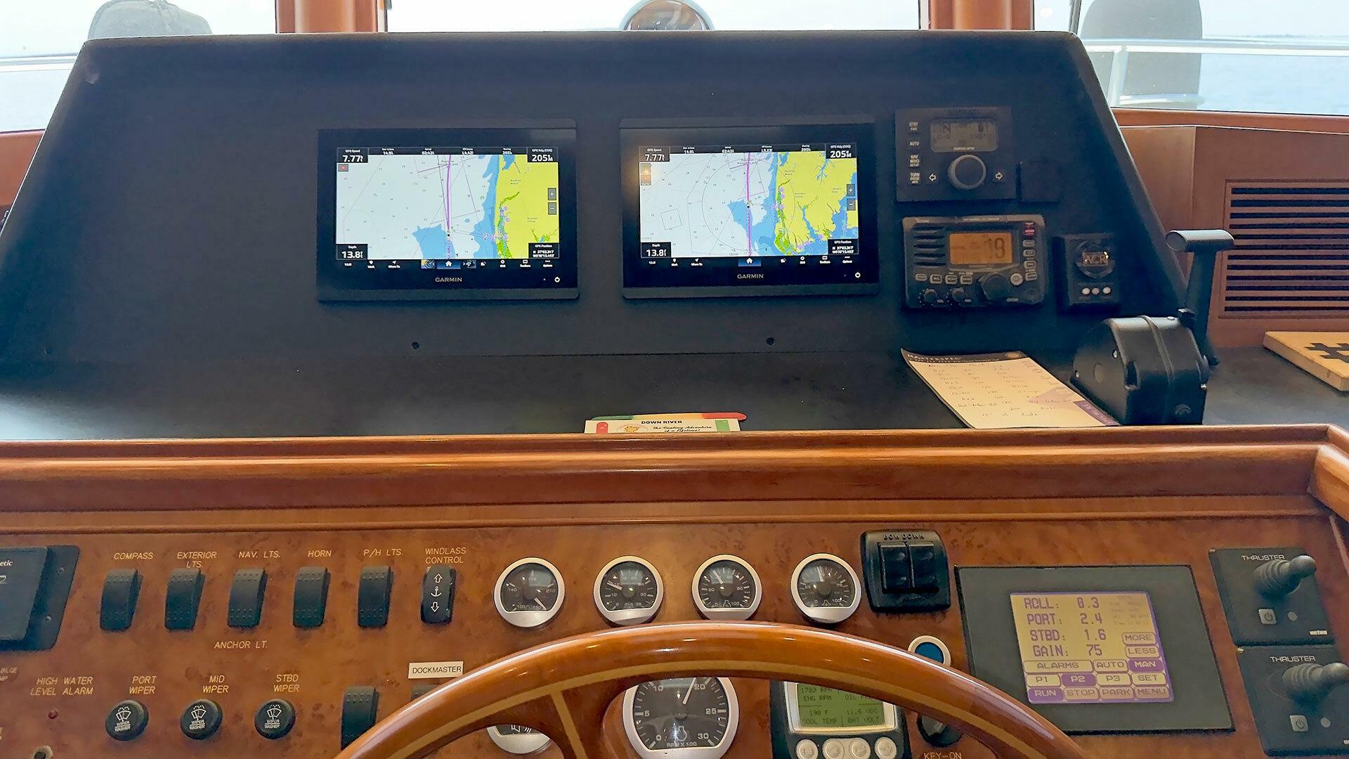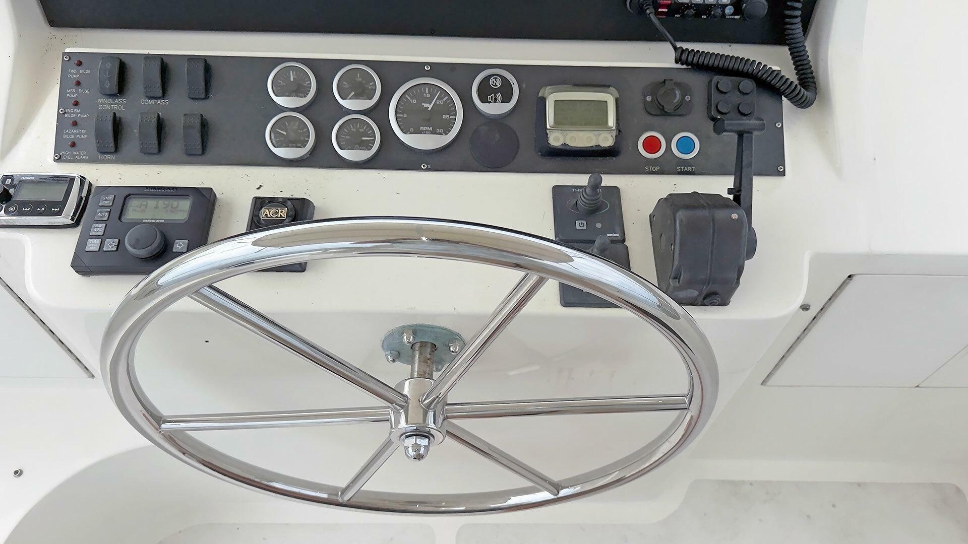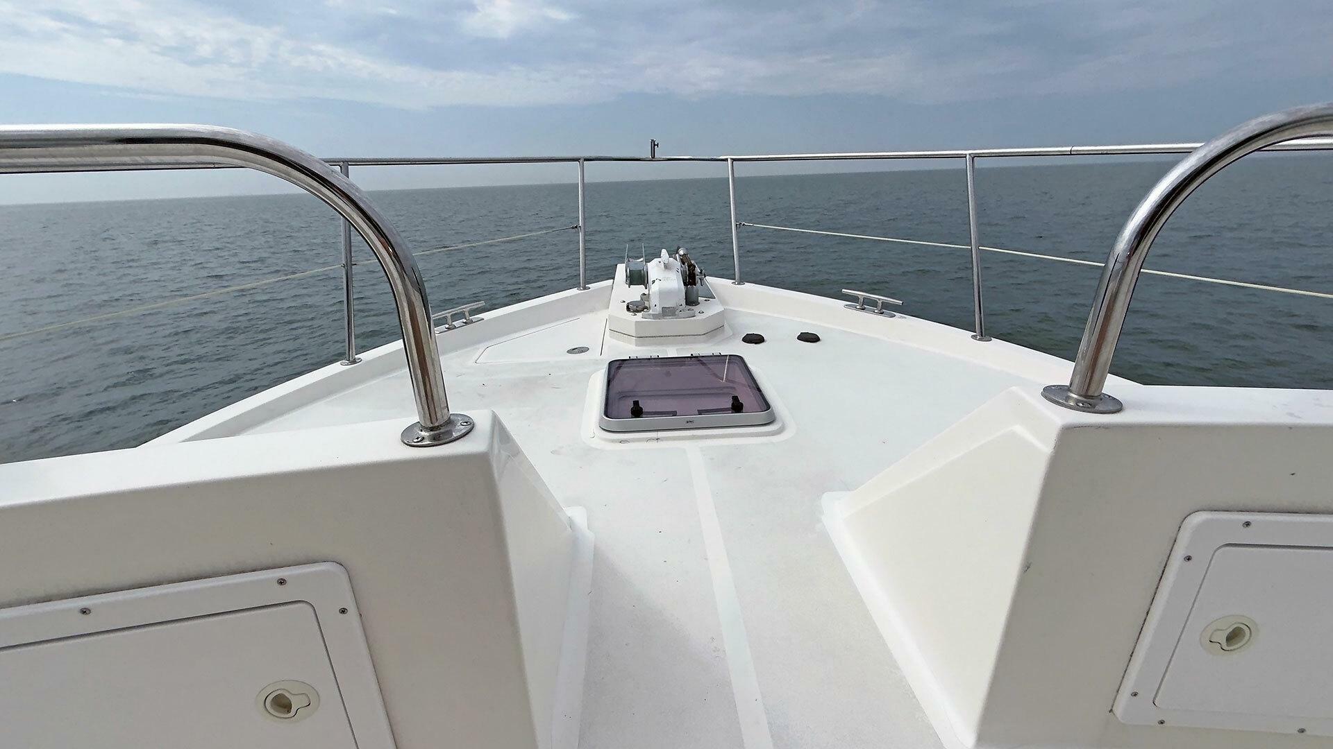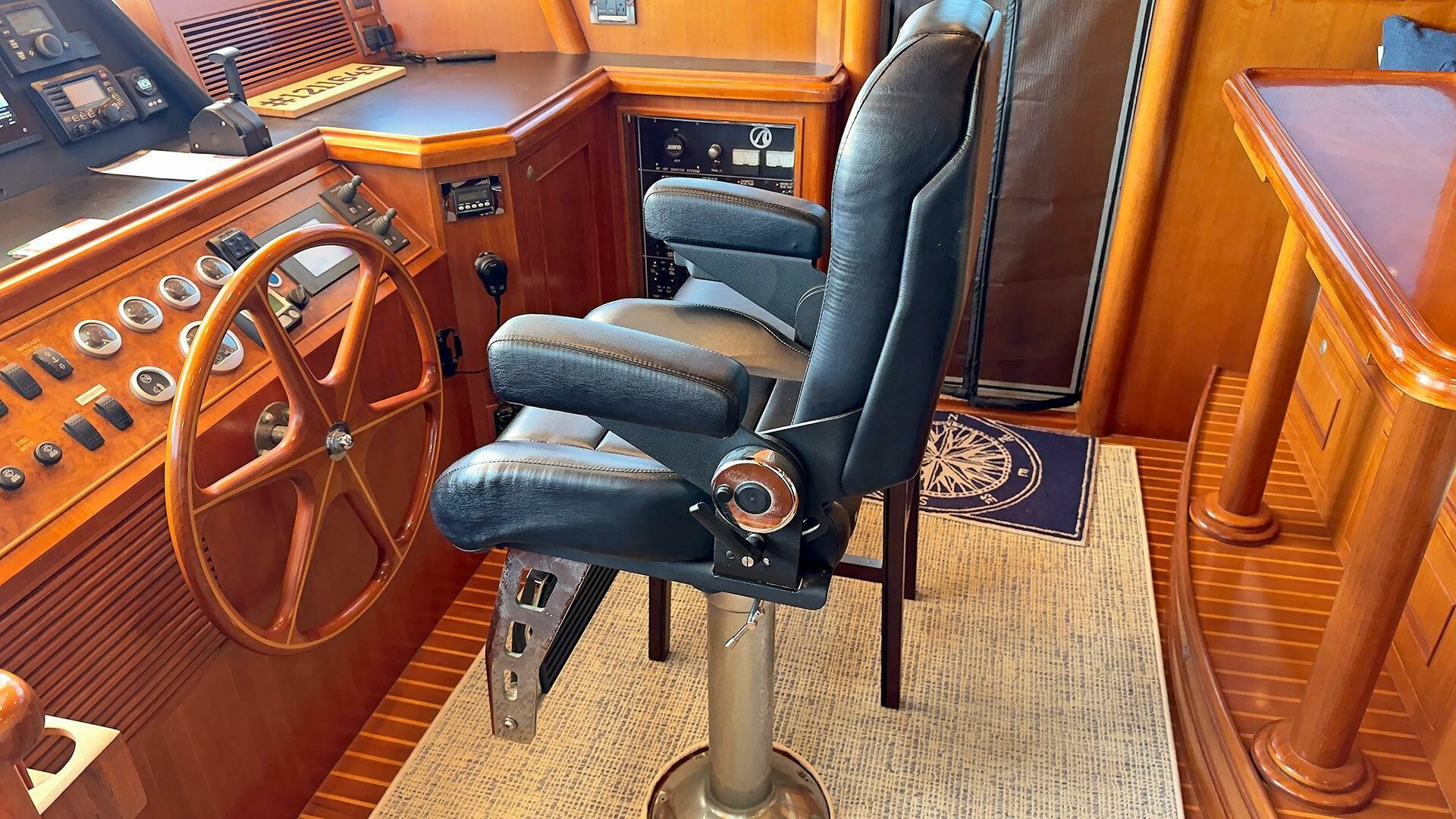 Looking for a fuel-efficient coastal cruising trawler that can head straight to the Bahamas or do the Great Loop? Lightning is a 2007 Ocean Alexander 50 Classicco powered by a 300 HP John Deere 6068 enjoying a smooth ride underway courtesy of her Key Power active fins stabilizers.