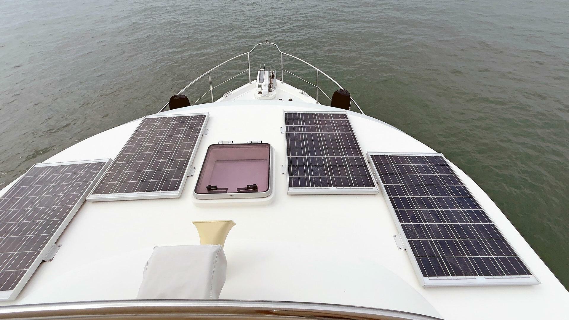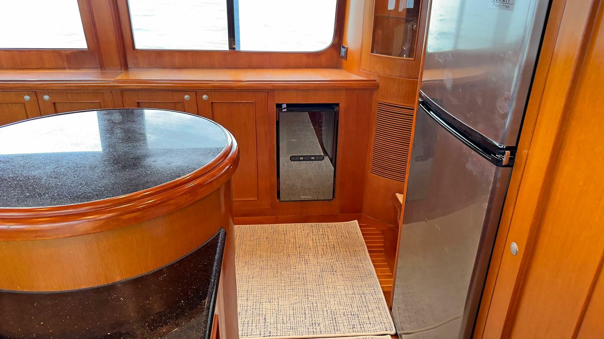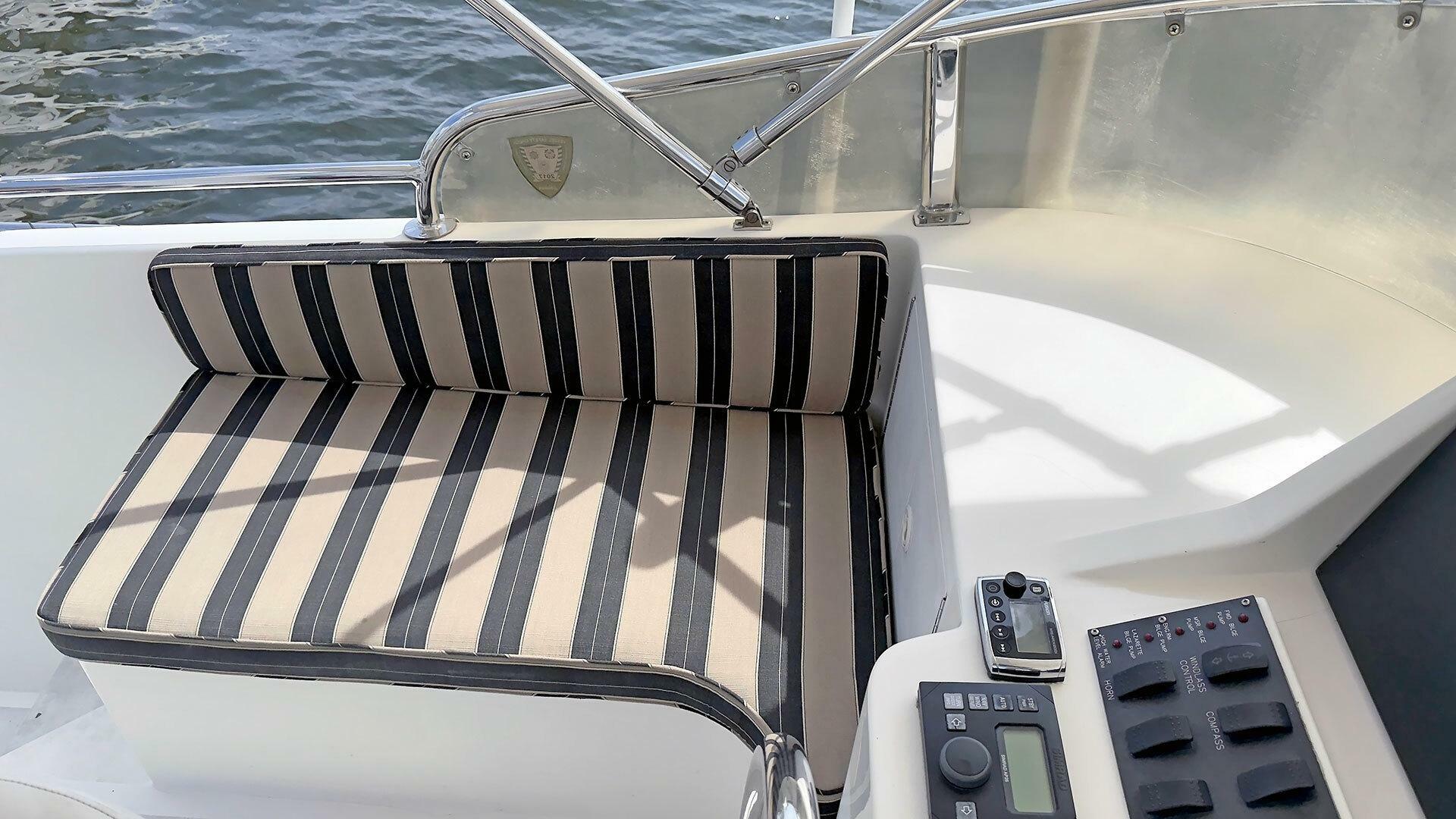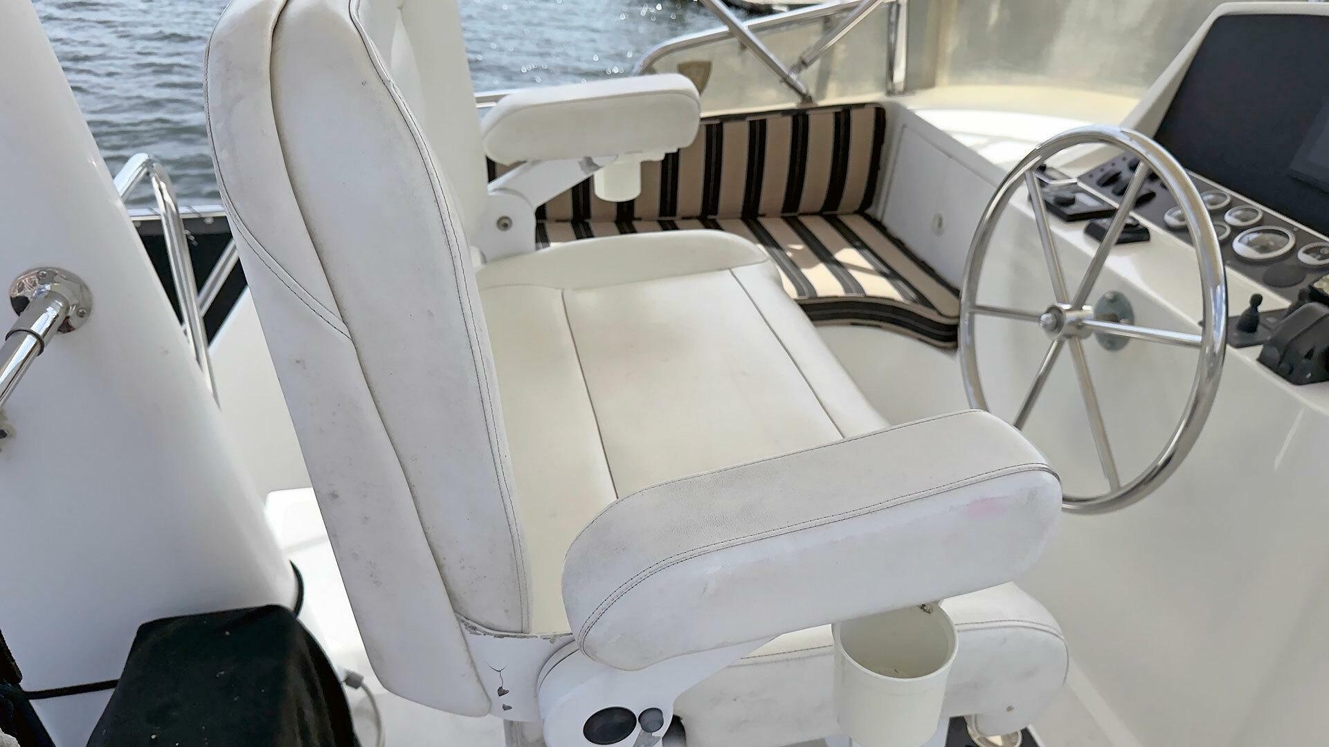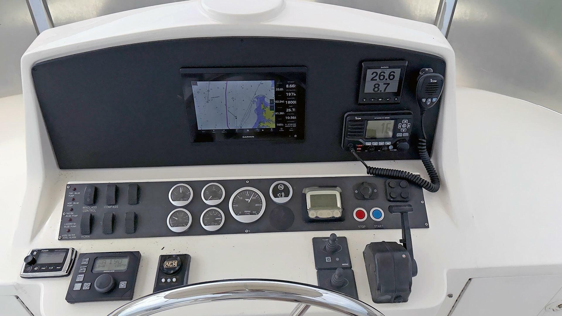 Looking for a fuel-efficient coastal cruising trawler that can head straight to the Bahamas or do the Great Loop? Lightning is a 2007 Ocean Alexander 50 Classicco powered by a 300 HP John Deere 6068 enjoying a smooth ride underway courtesy of her Key Power active fins stabilizers.