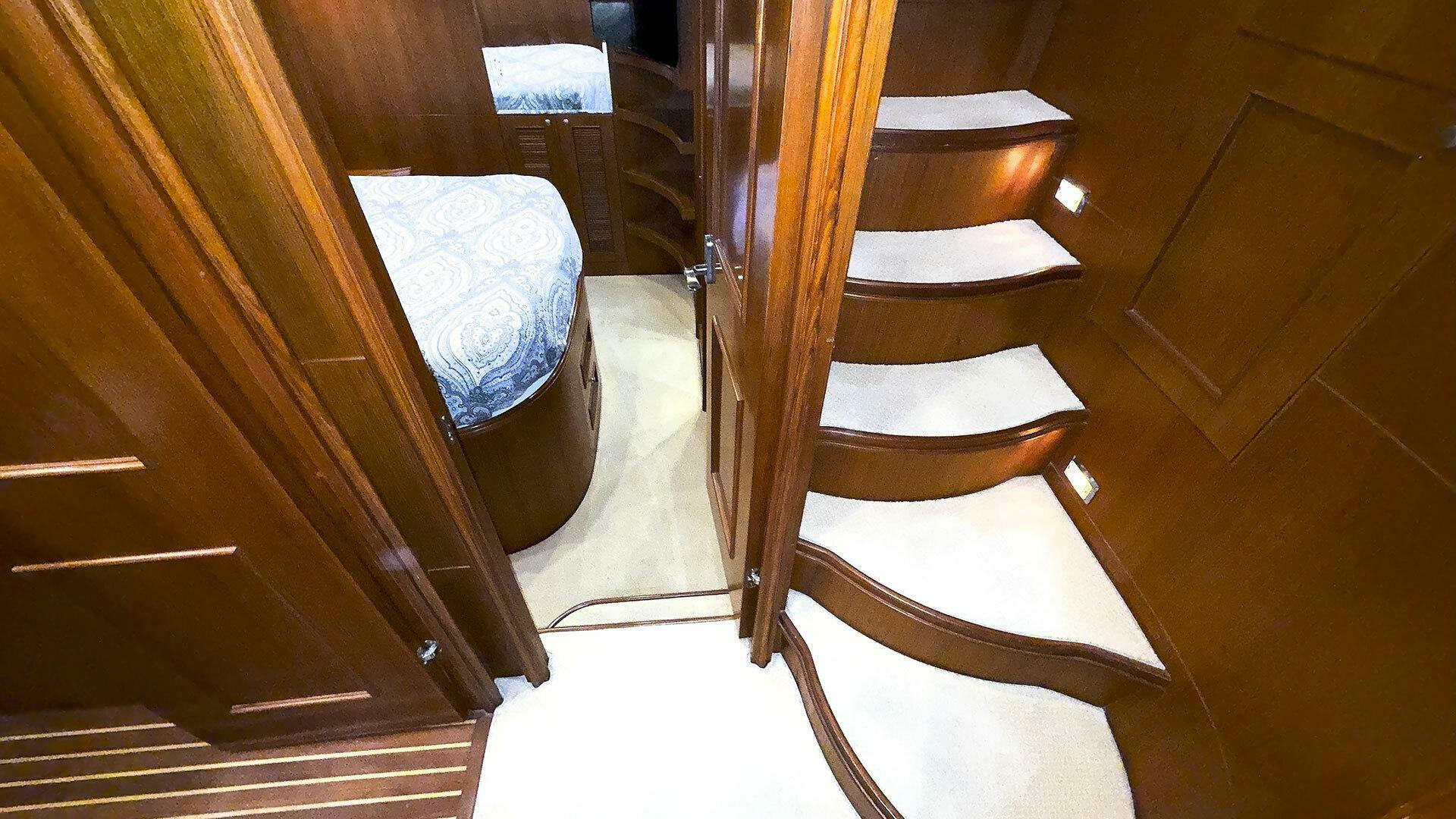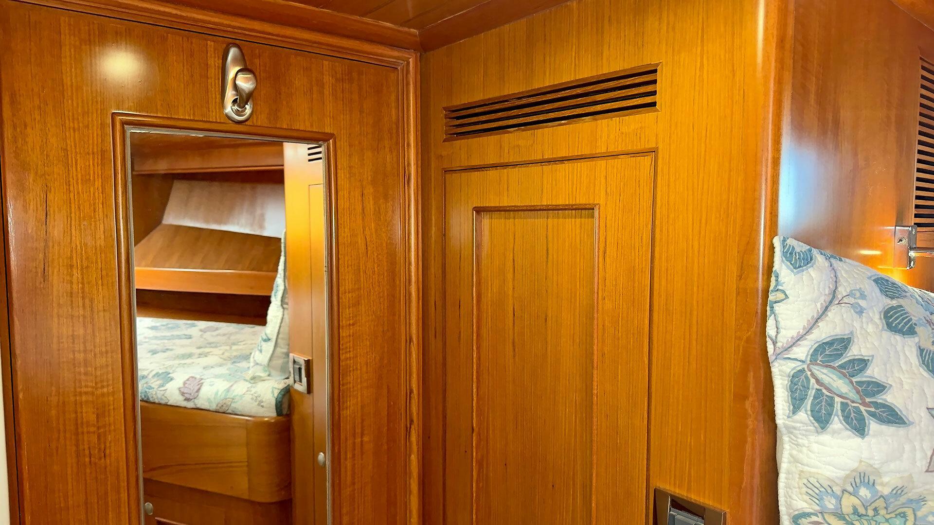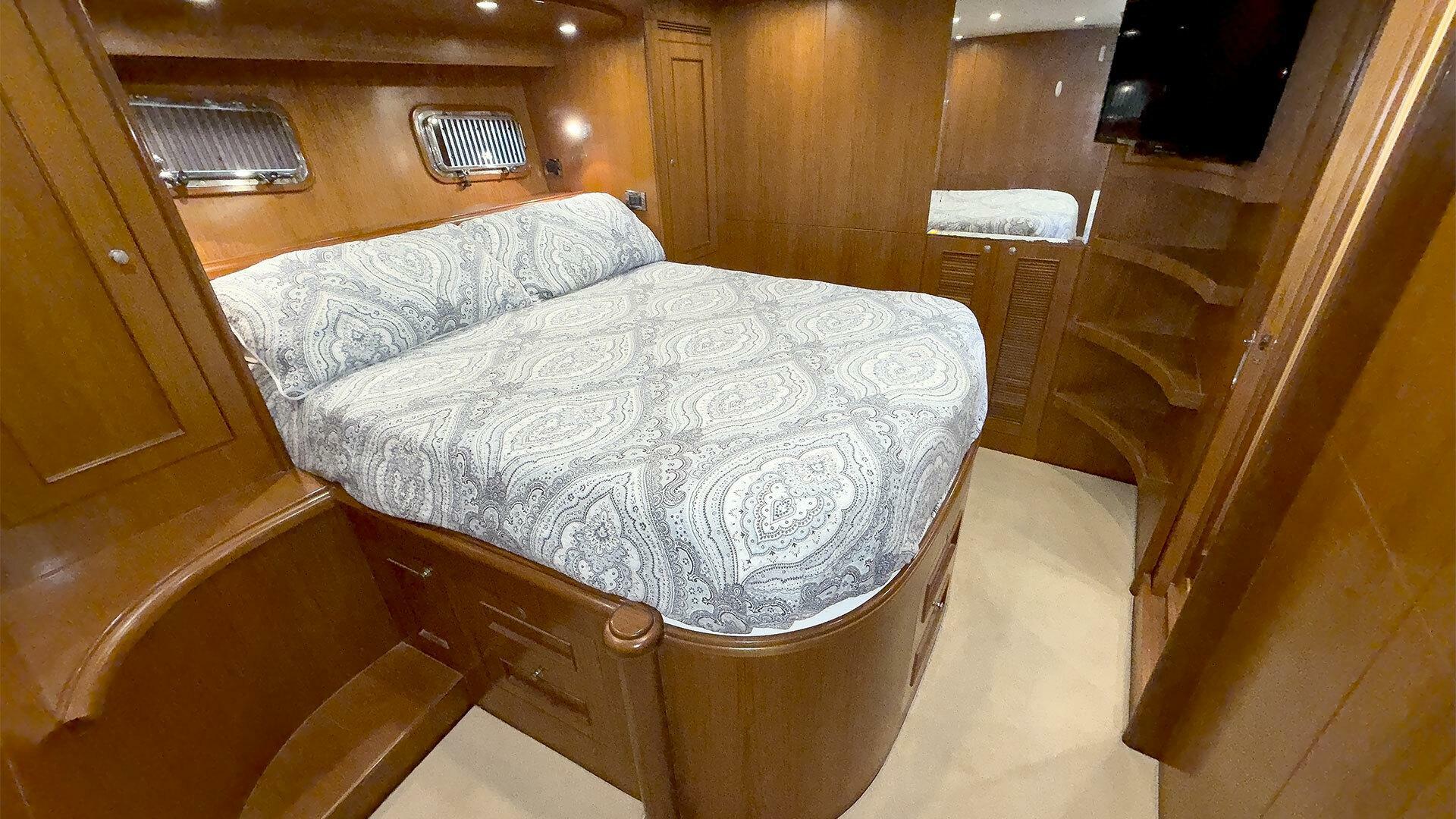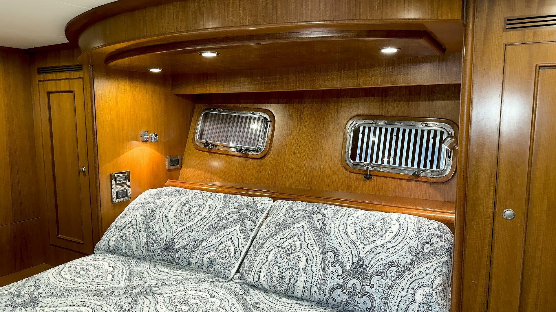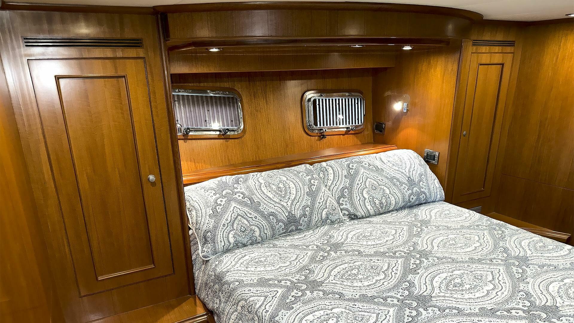(Owner) amidship with custom mattress | (2) single berths in forward guest stateroom | Pilothouse watch berth
