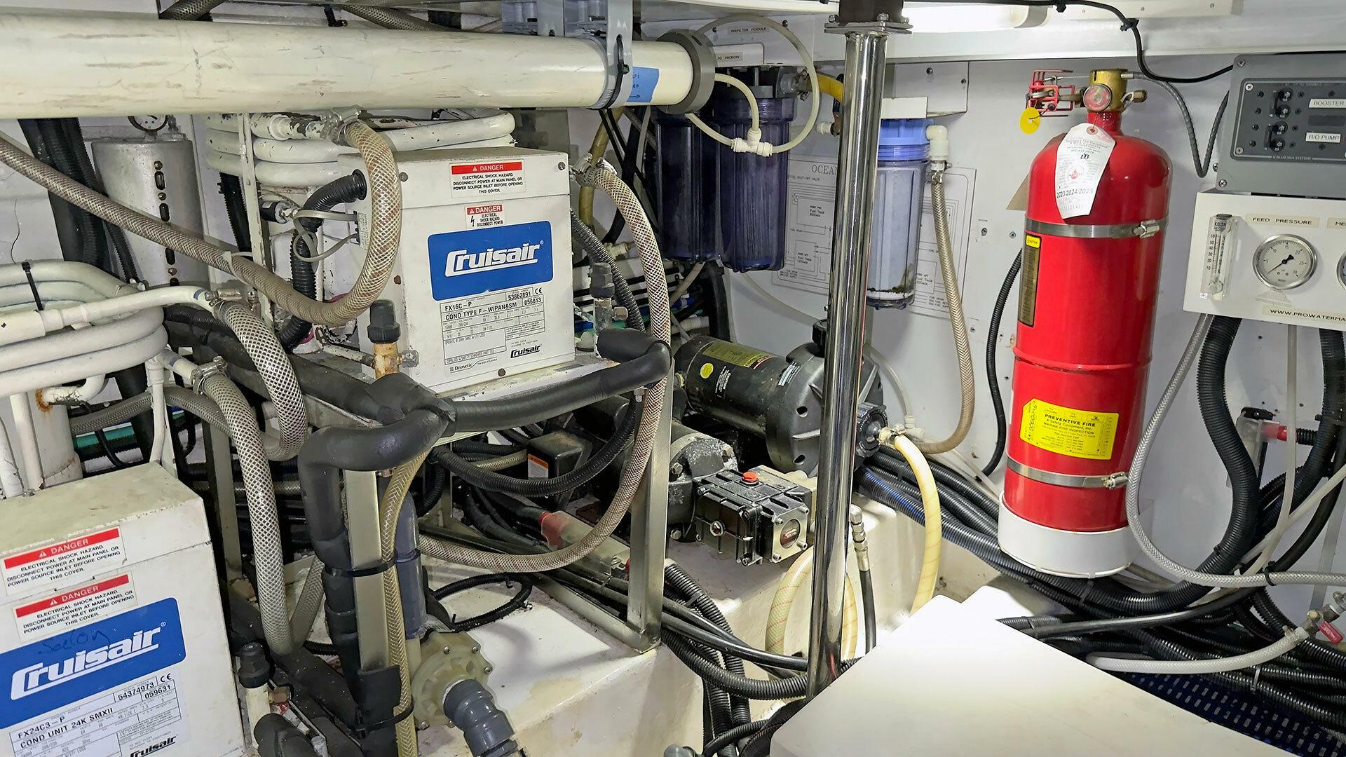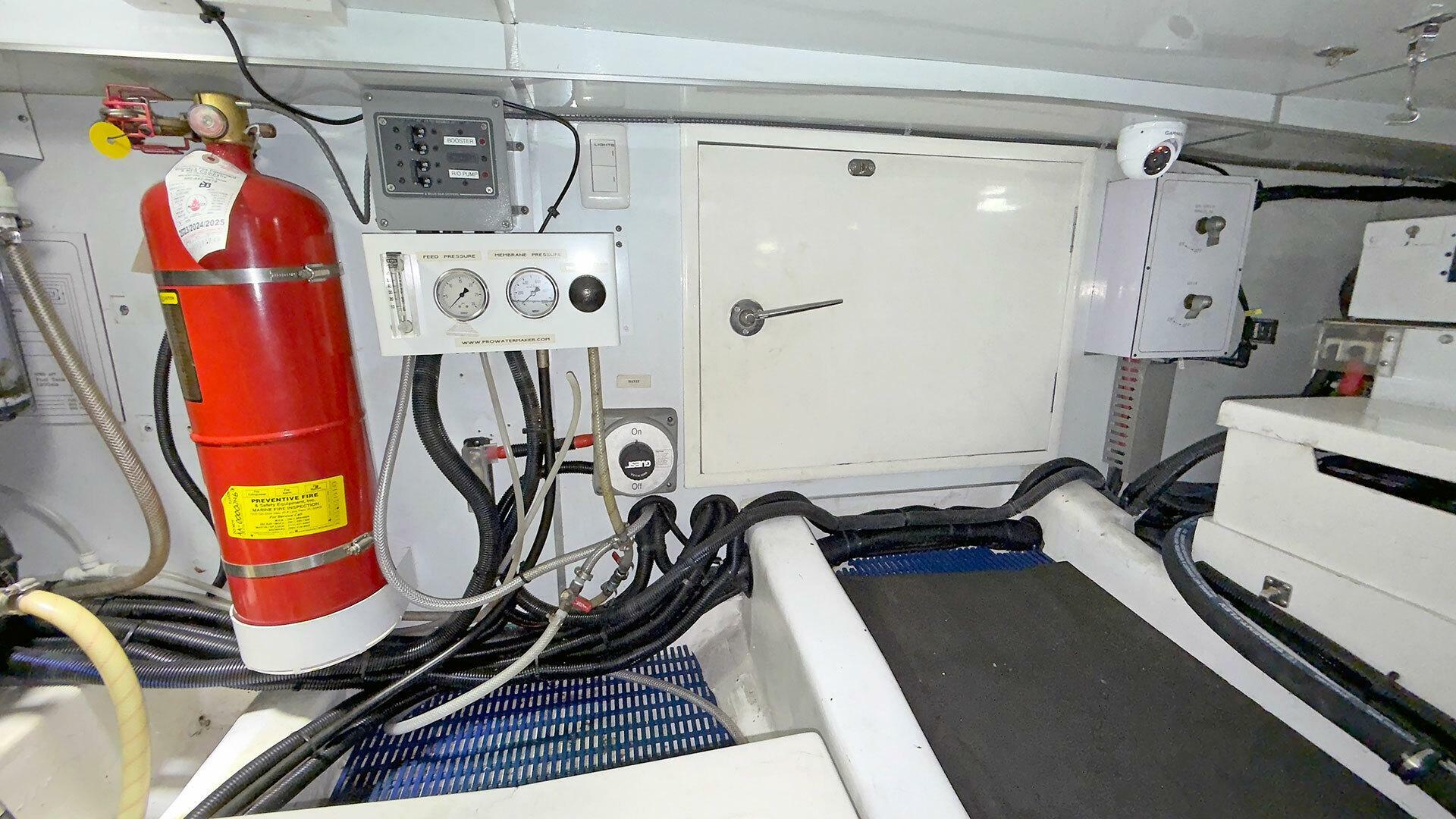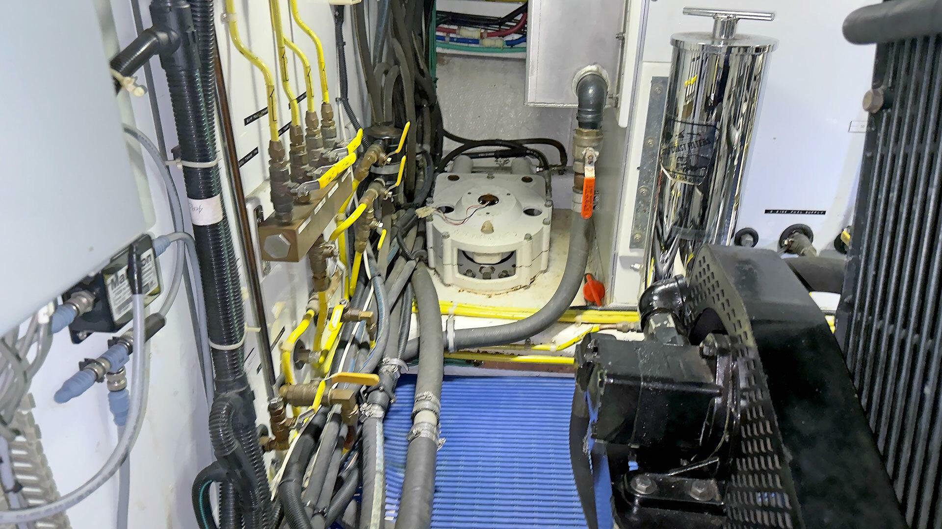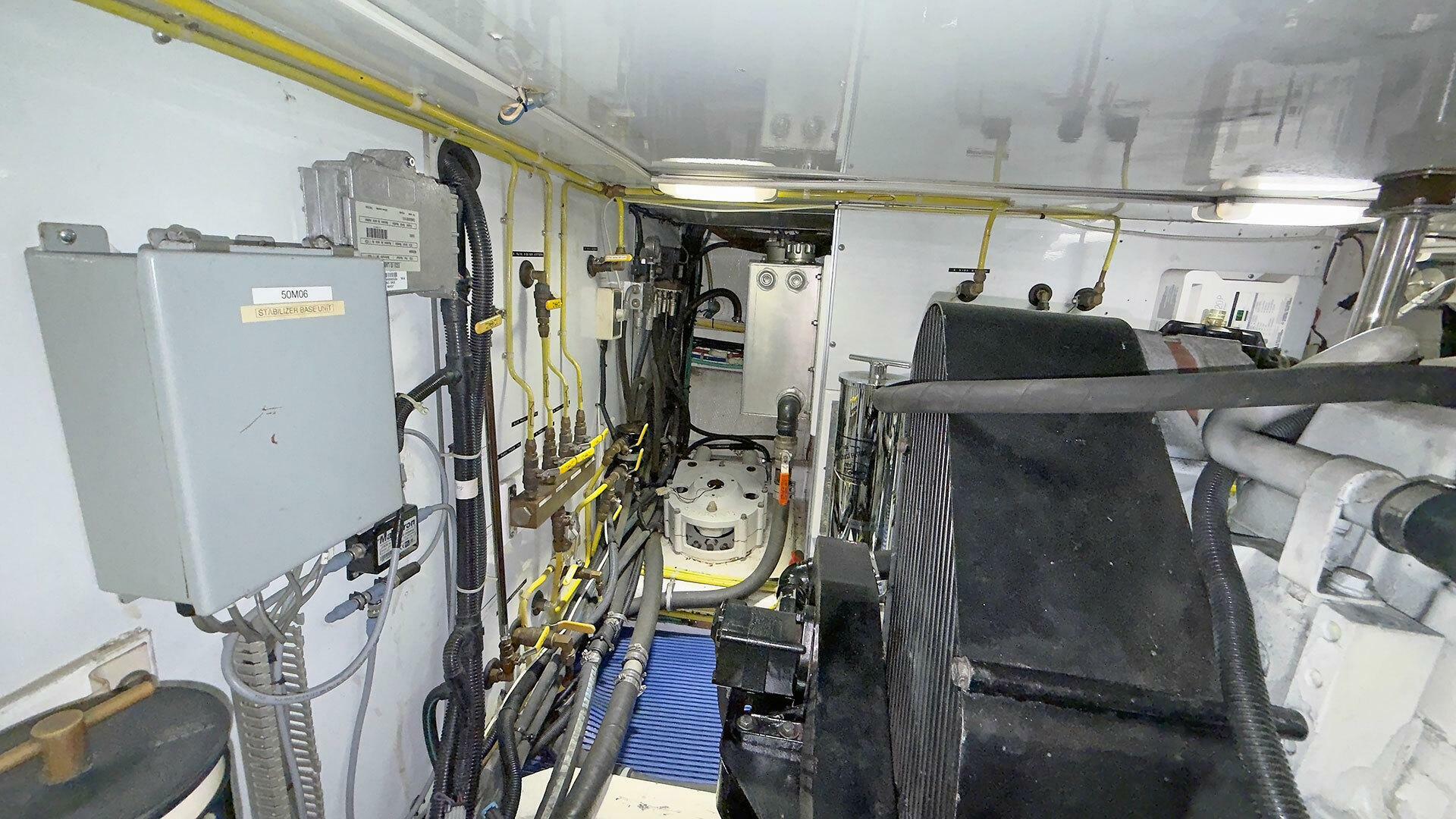 Engine Room: The engine room is under the saloon and galley. It is accessible via opening floor hatches, one forward to port, the other aft to starboard. The engine room machinery is easily accessible for service and inspection.