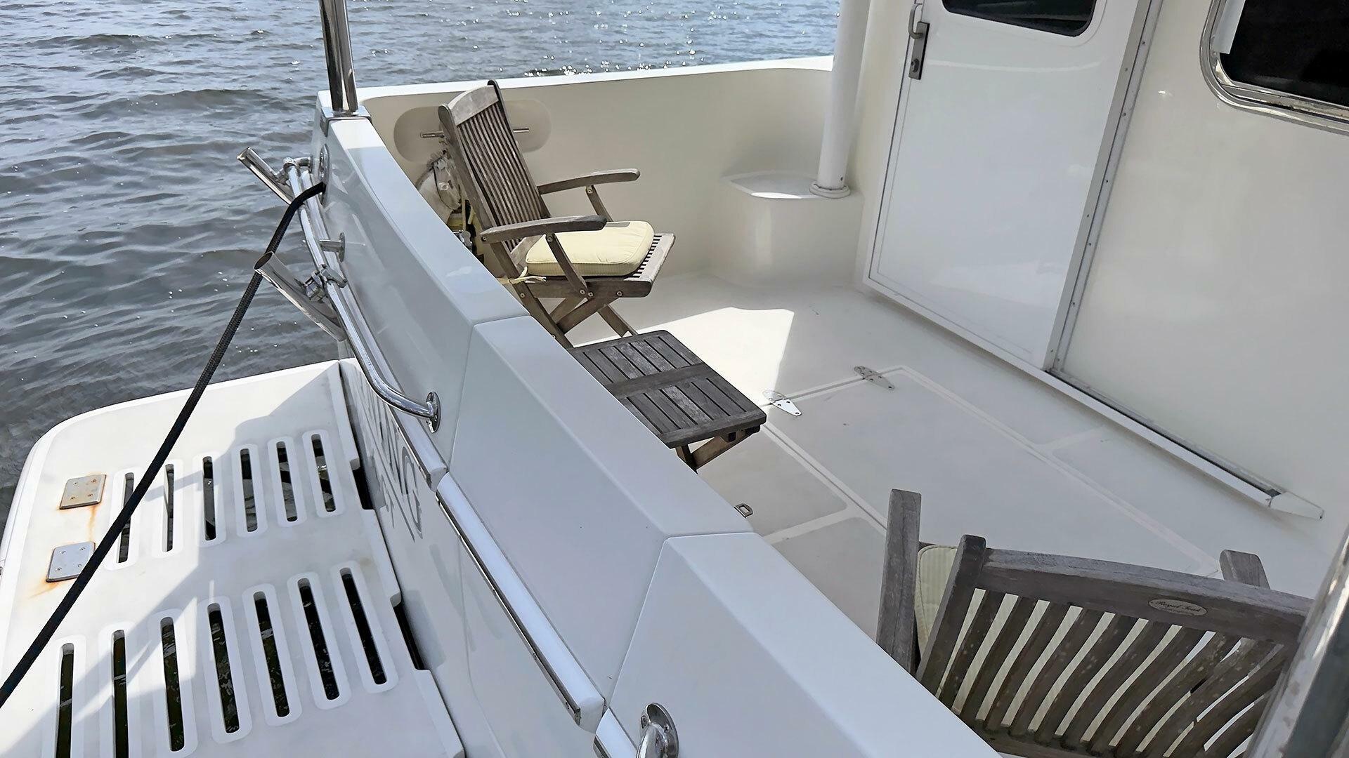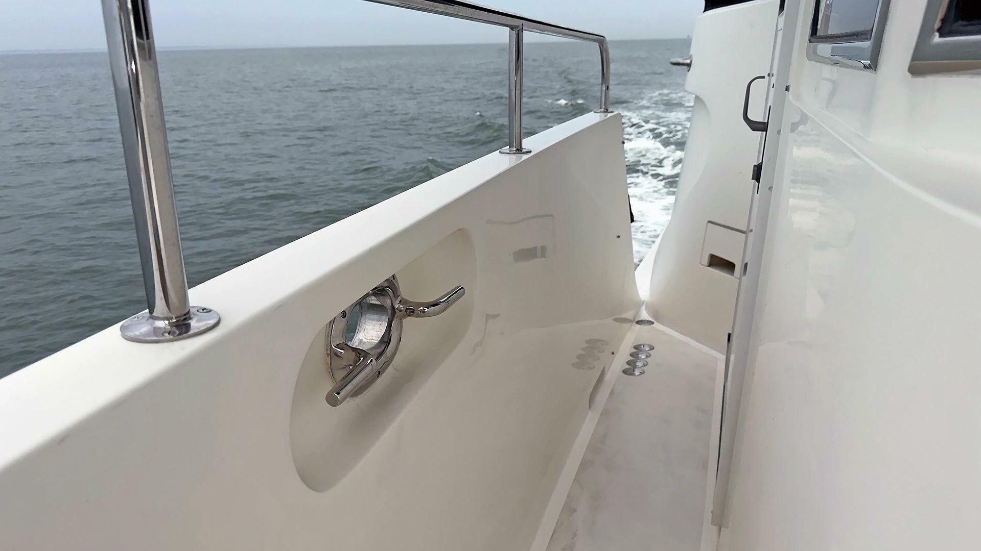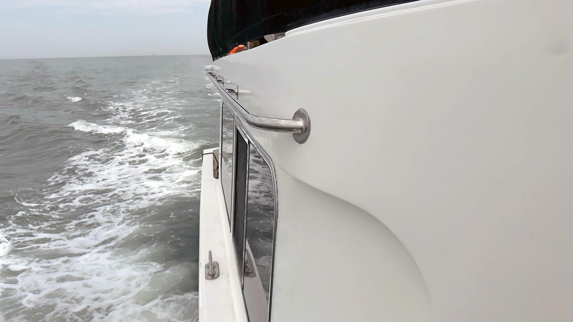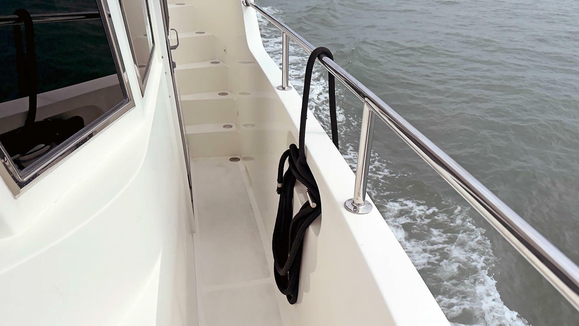 - Stainless steel handrail along beam of outboard transom