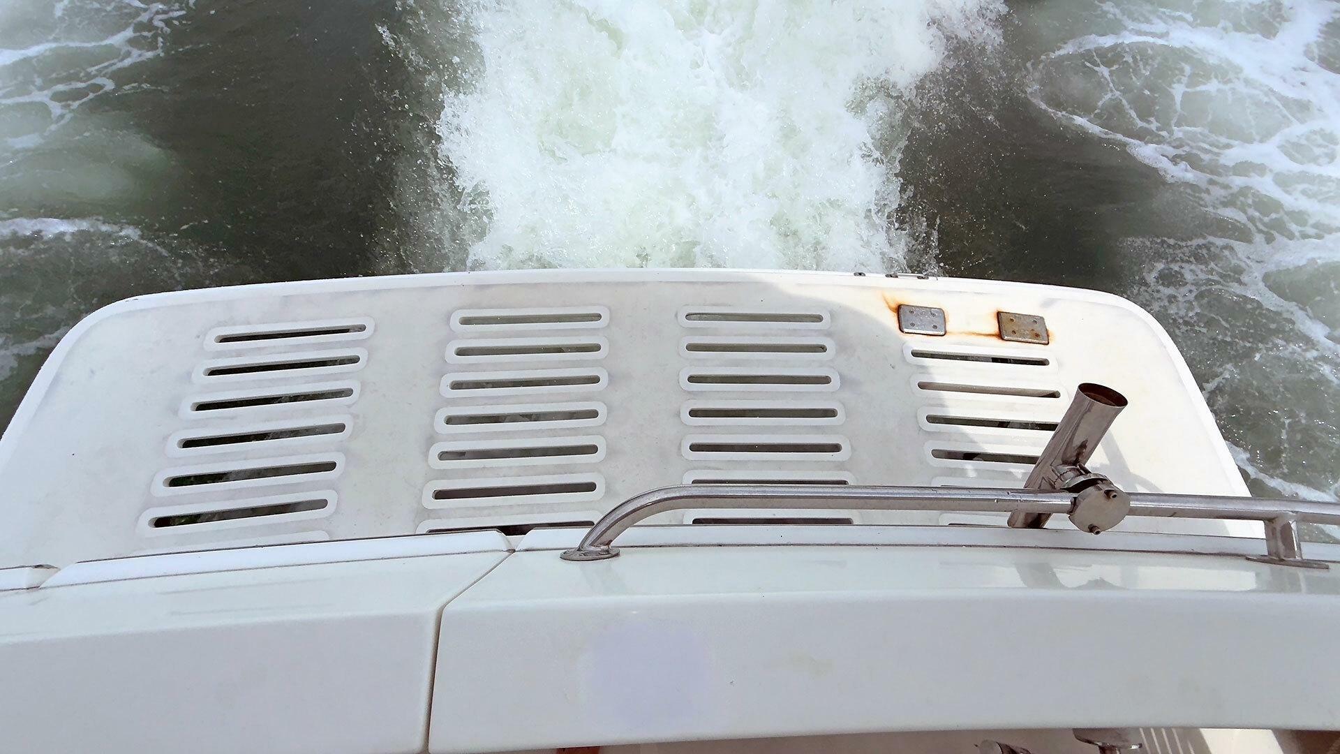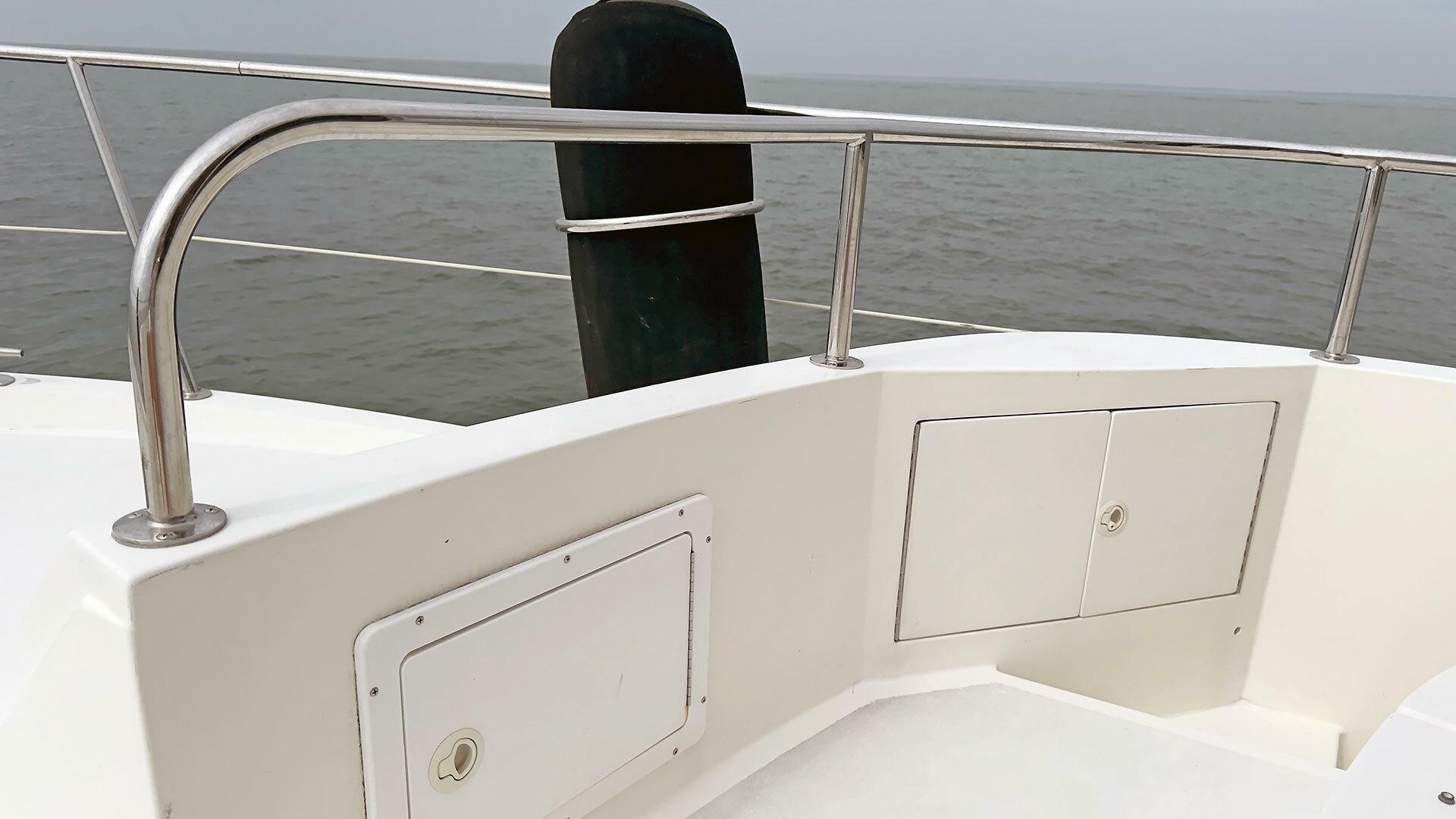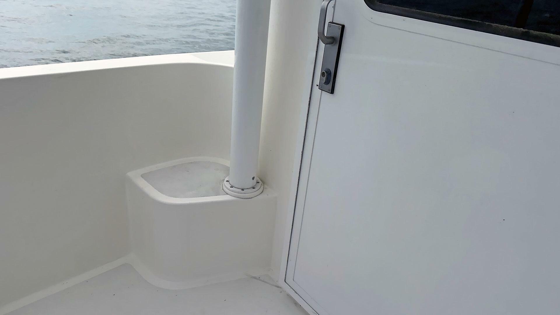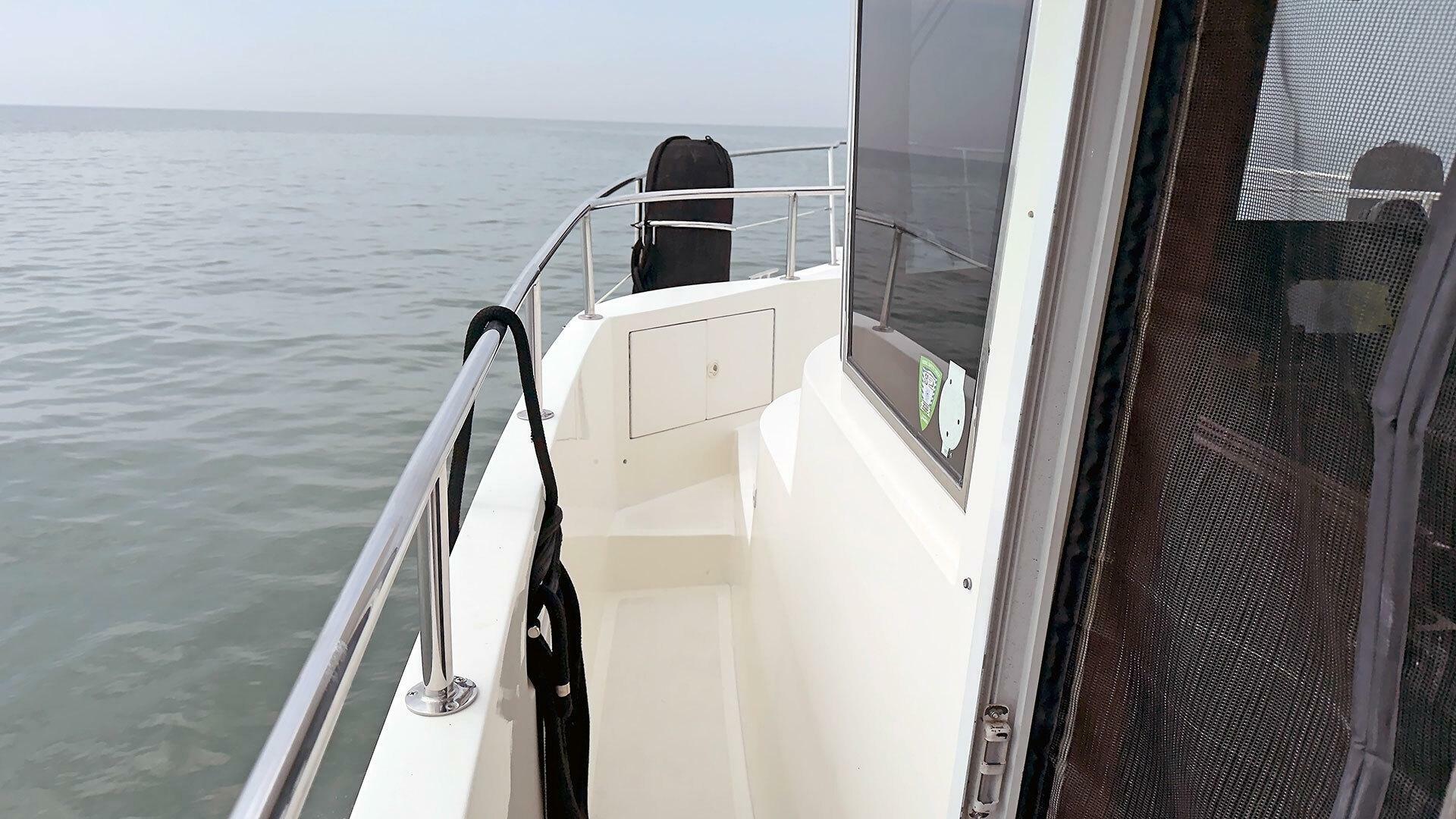 - Stainless steel handrail along beam of outboard transom