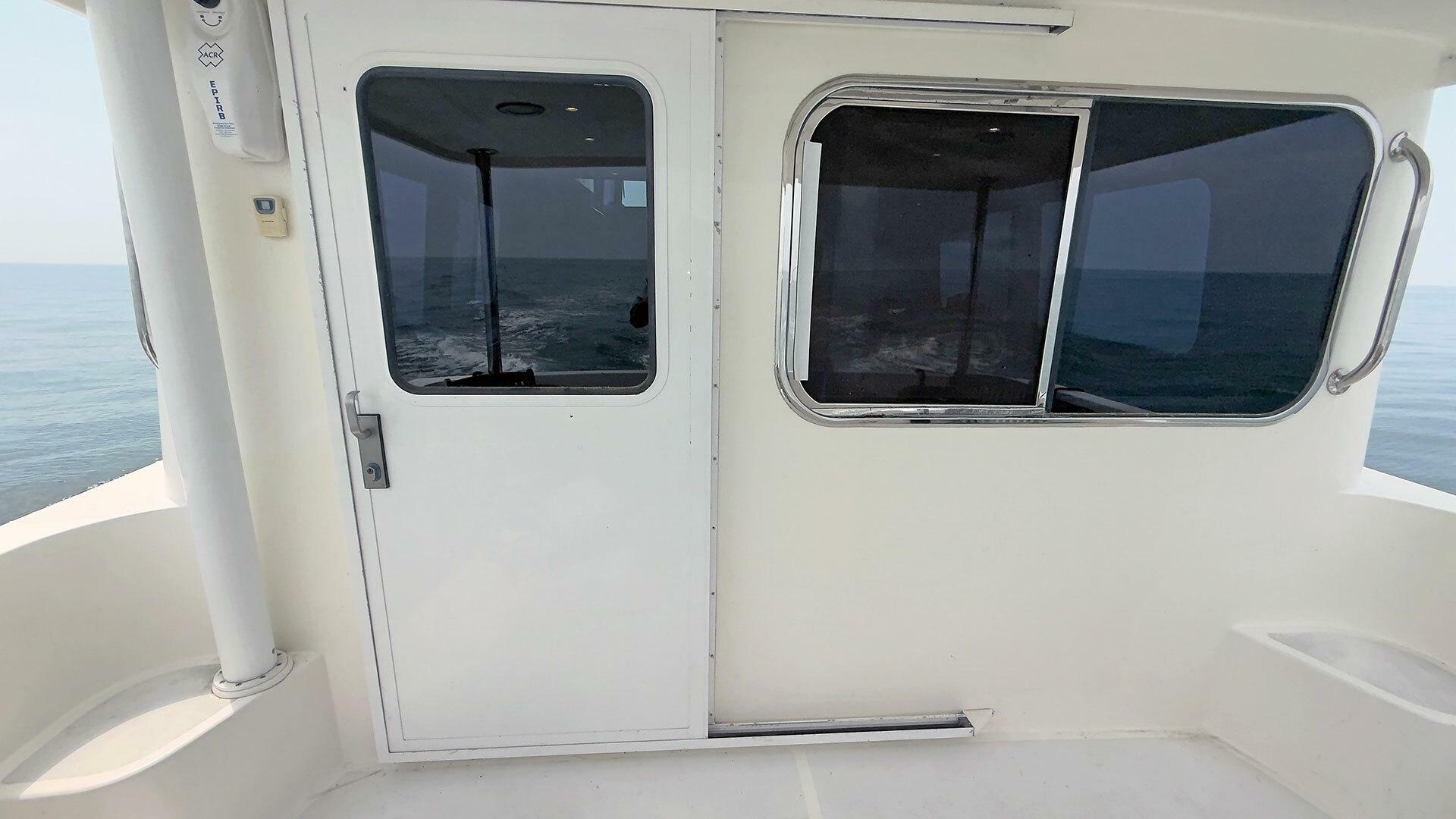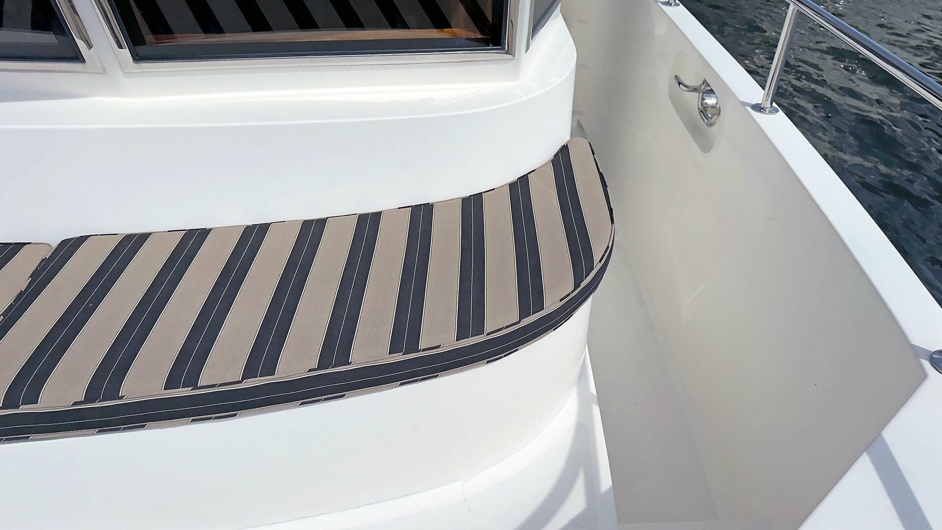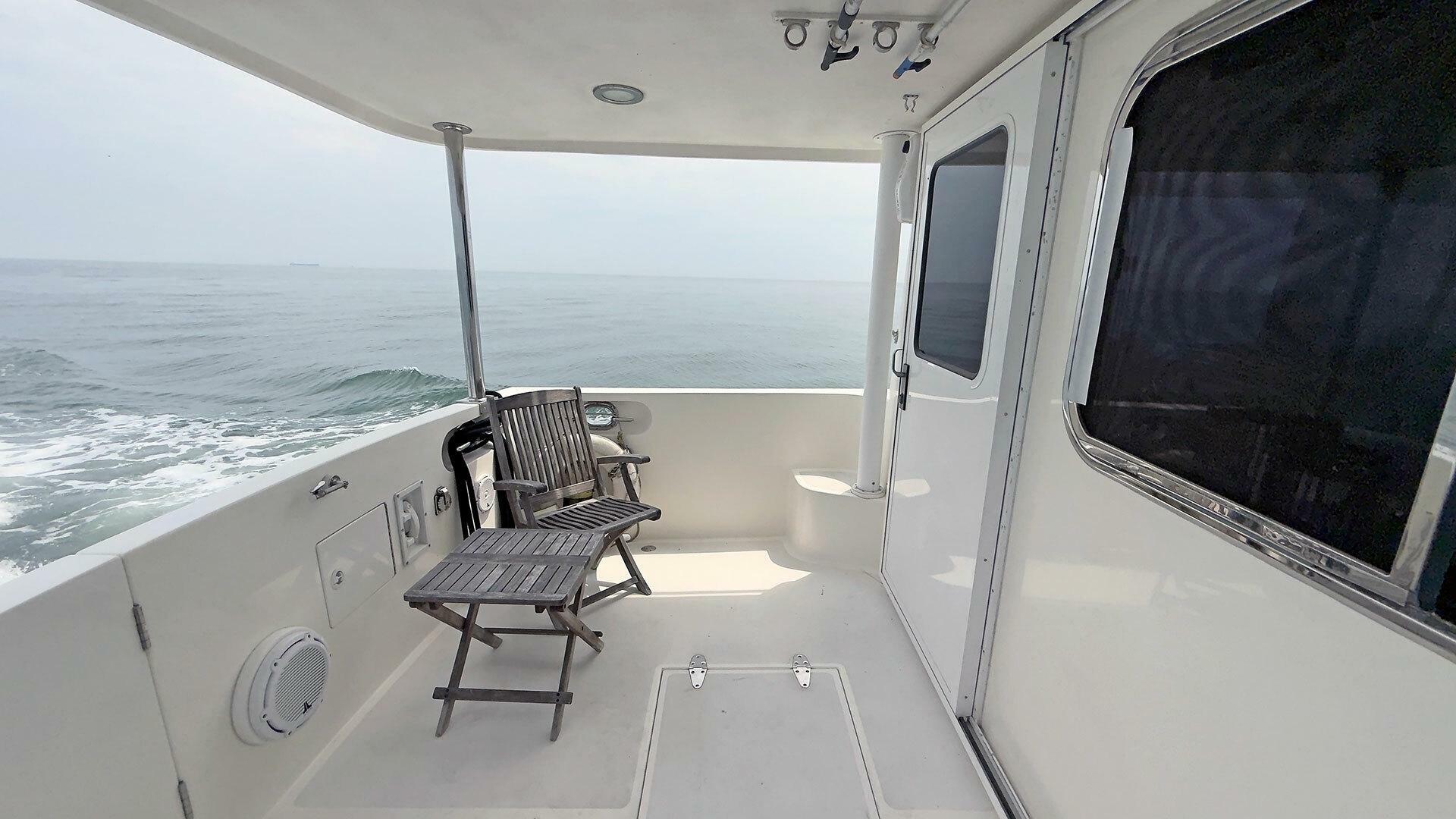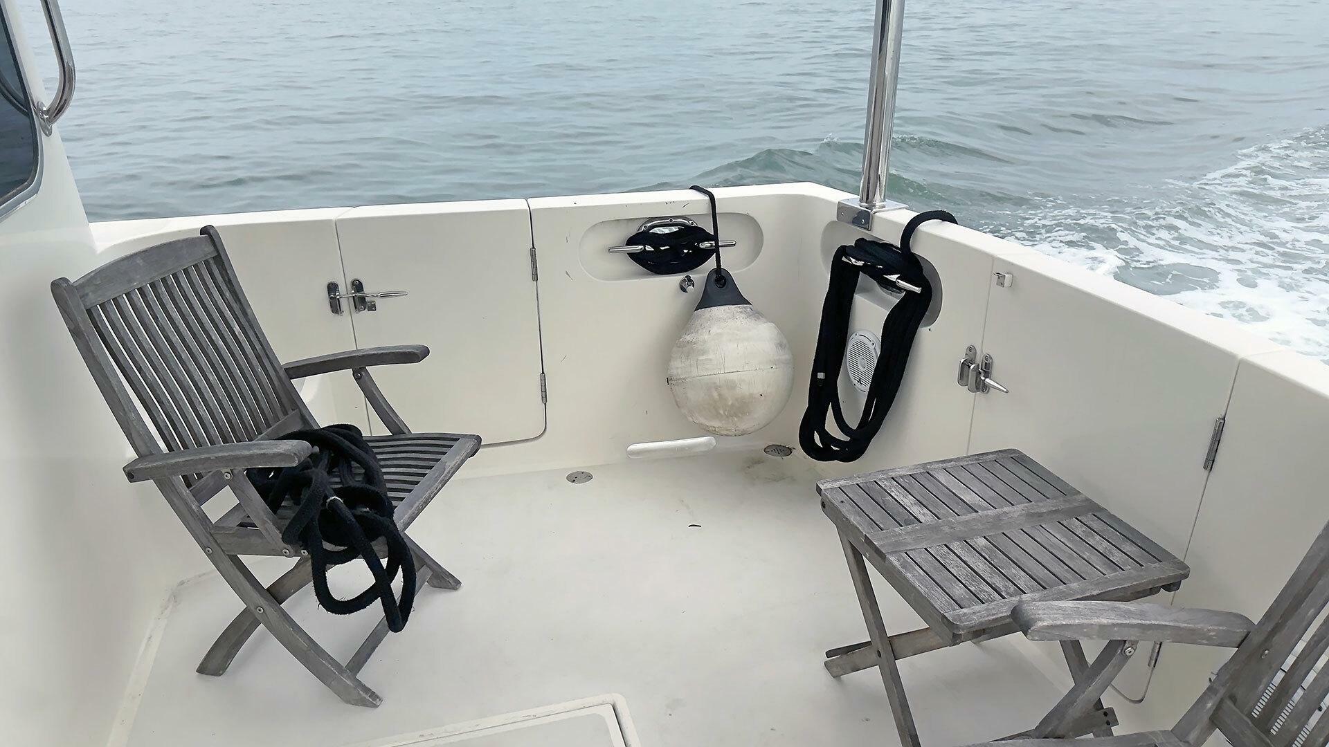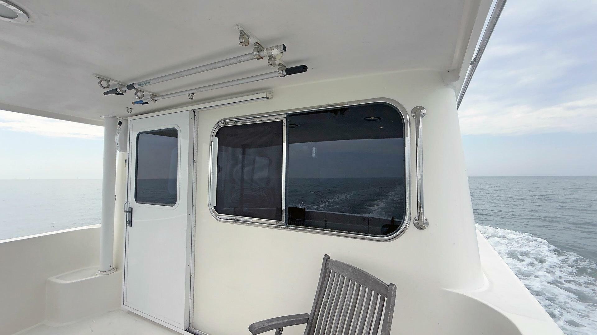 - Stainless steel handrail along beam of outboard transom