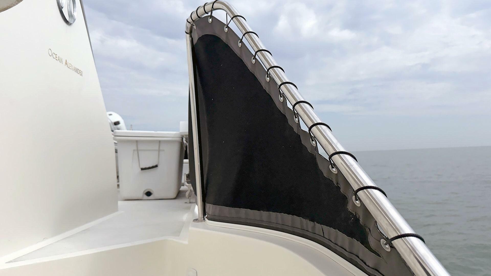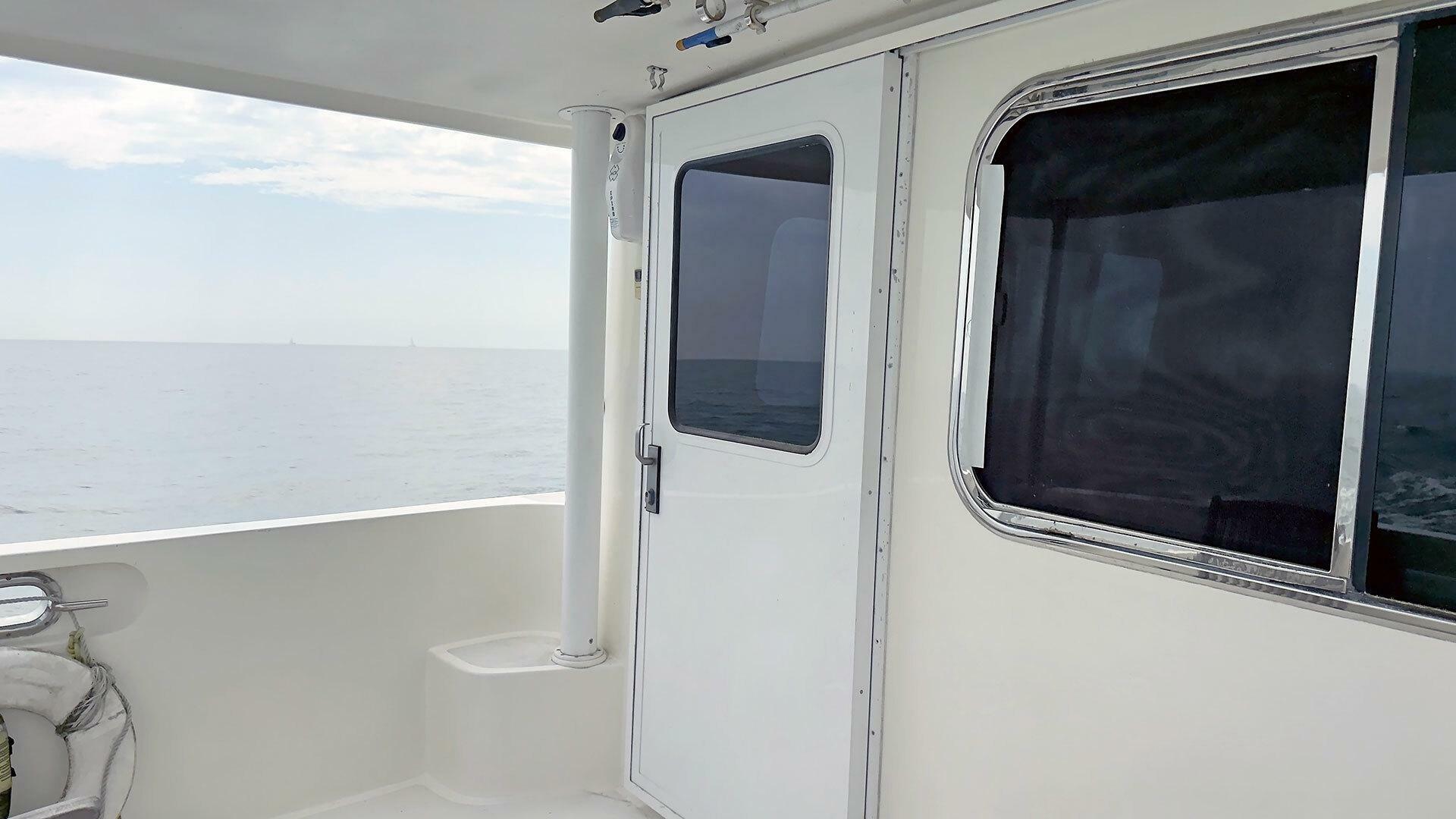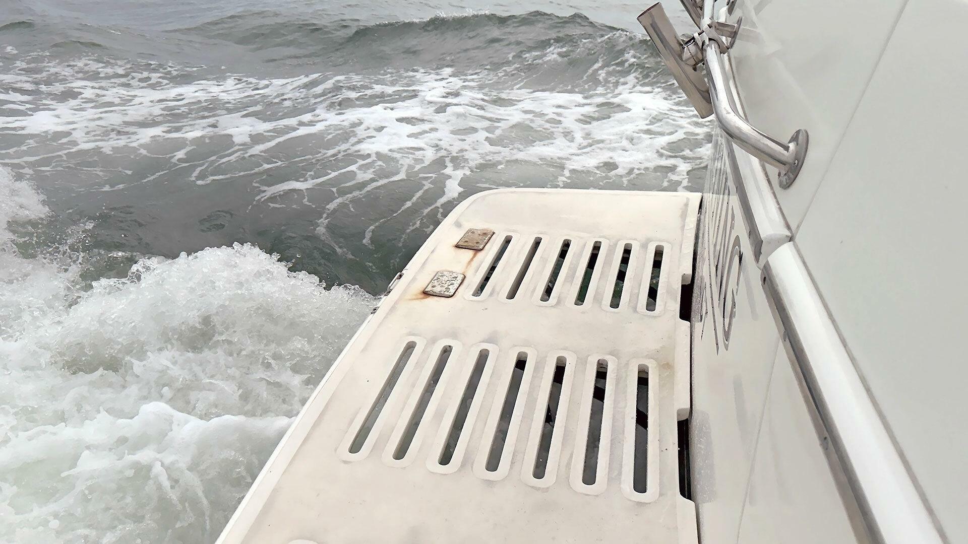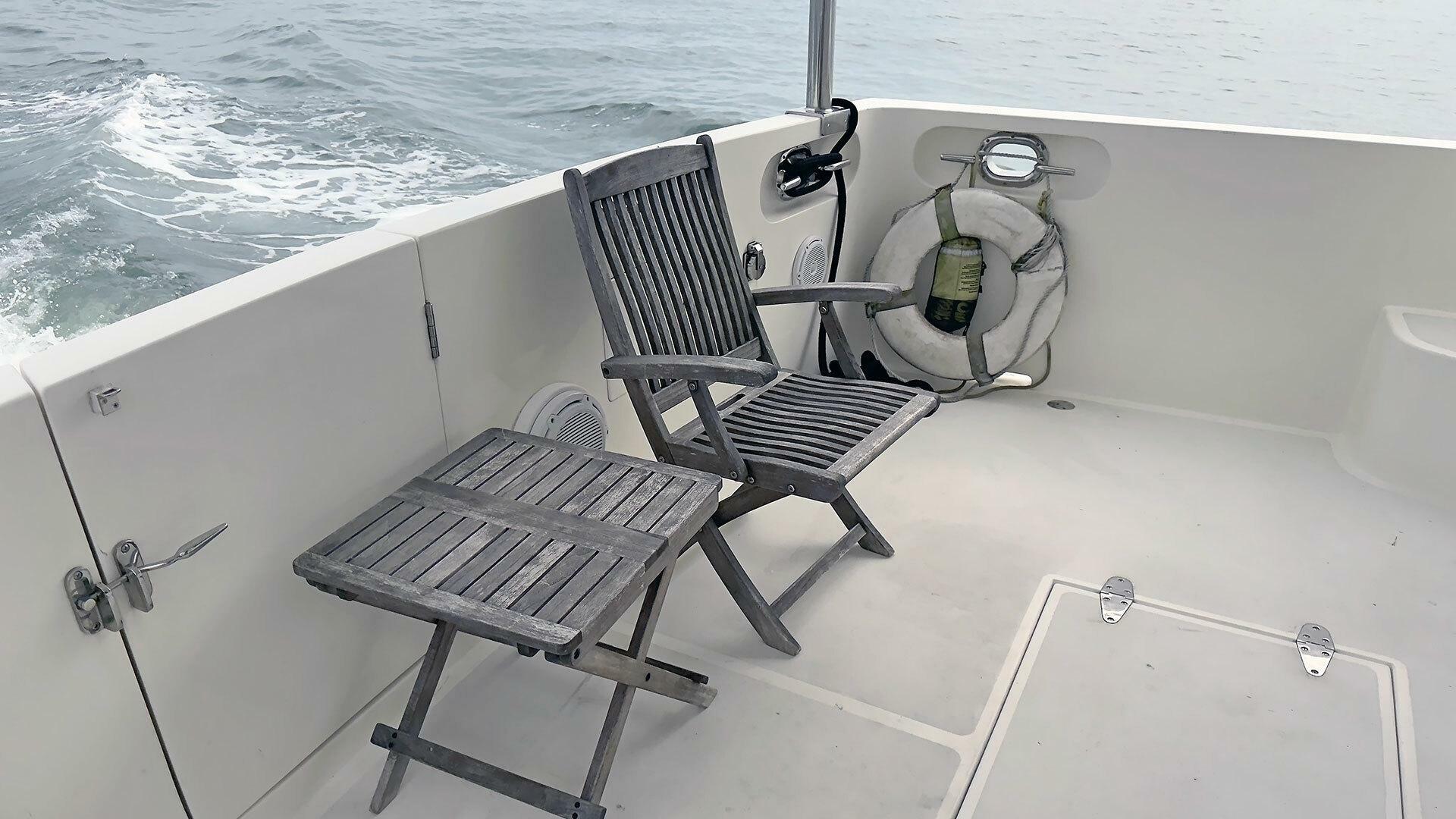 - Stainless steel handrail along beam of outboard transom
