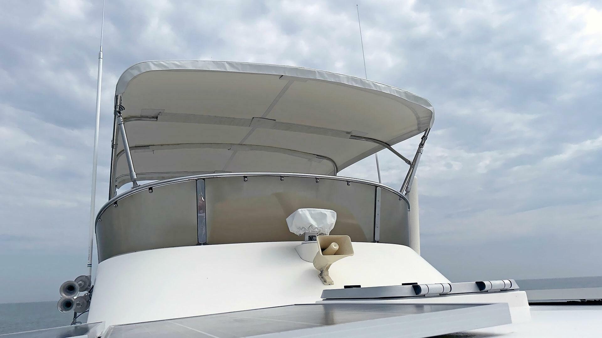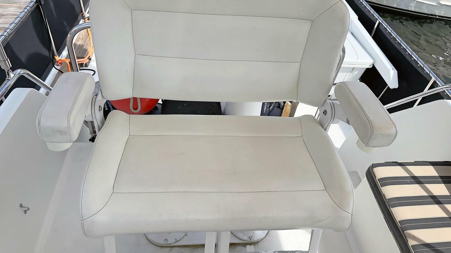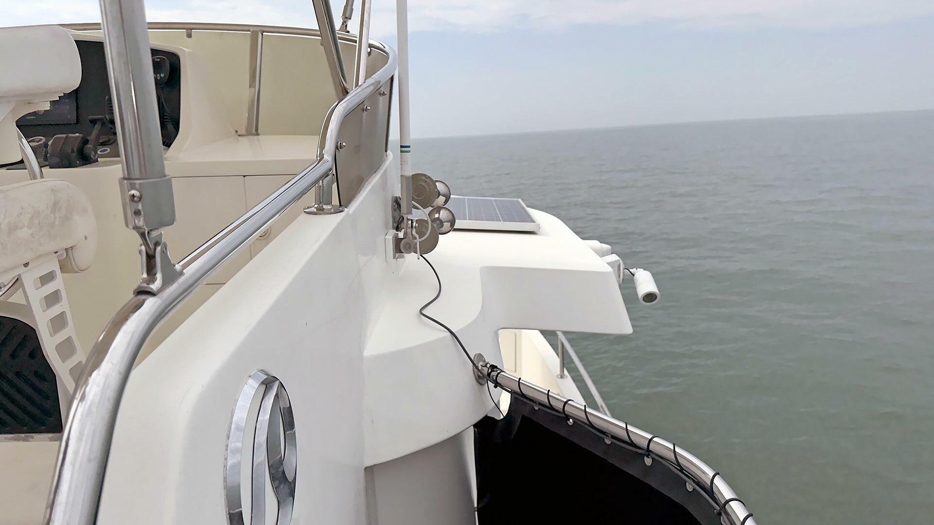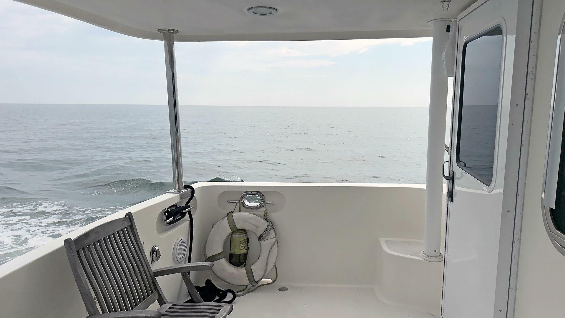 - Stainless steel handrail along beam of outboard transom