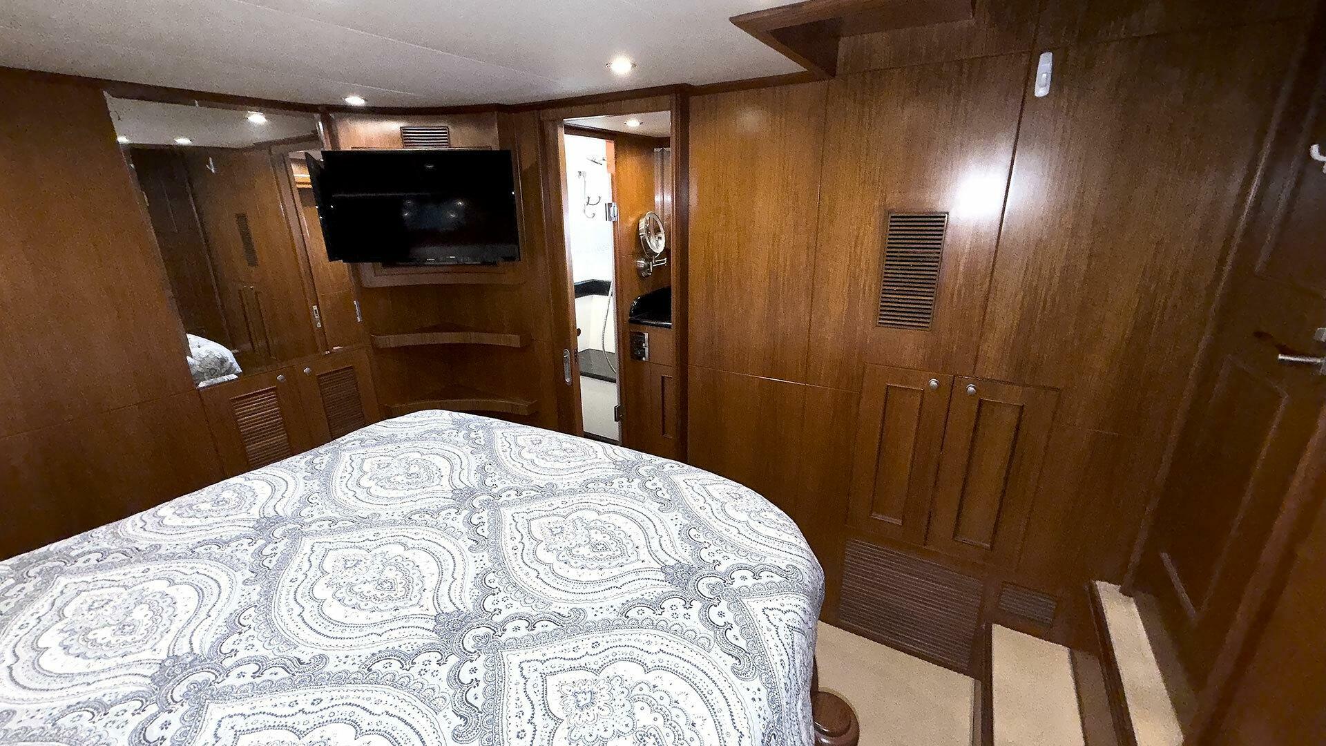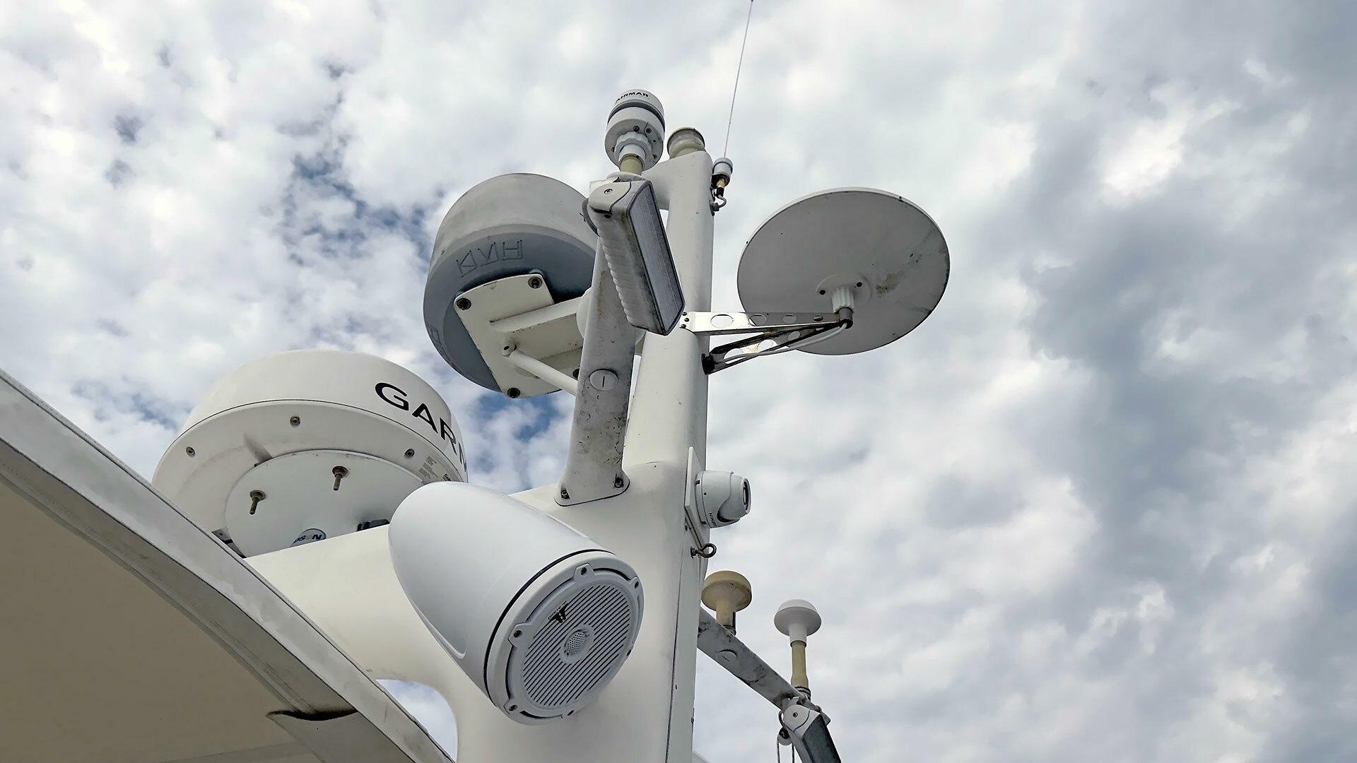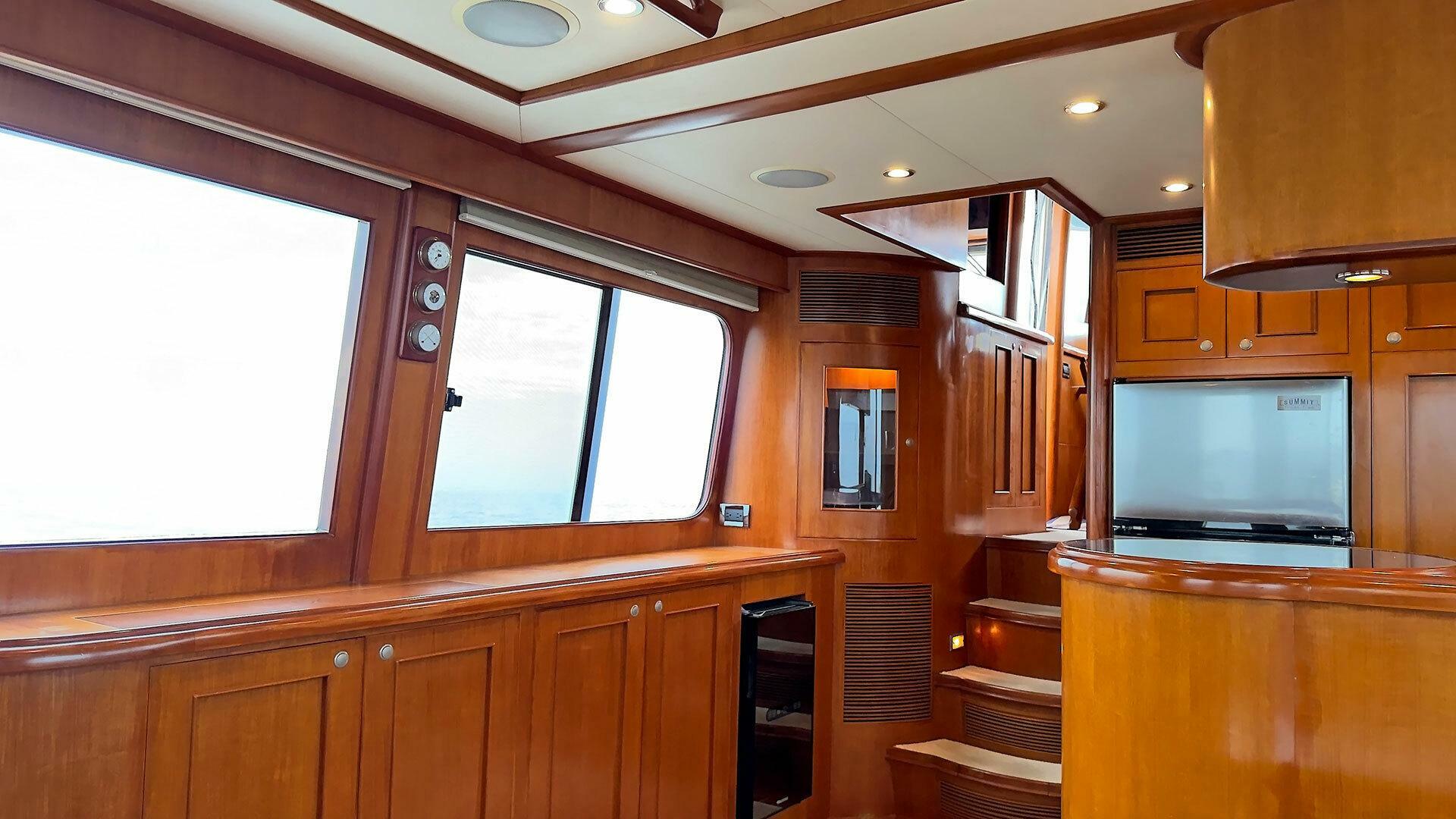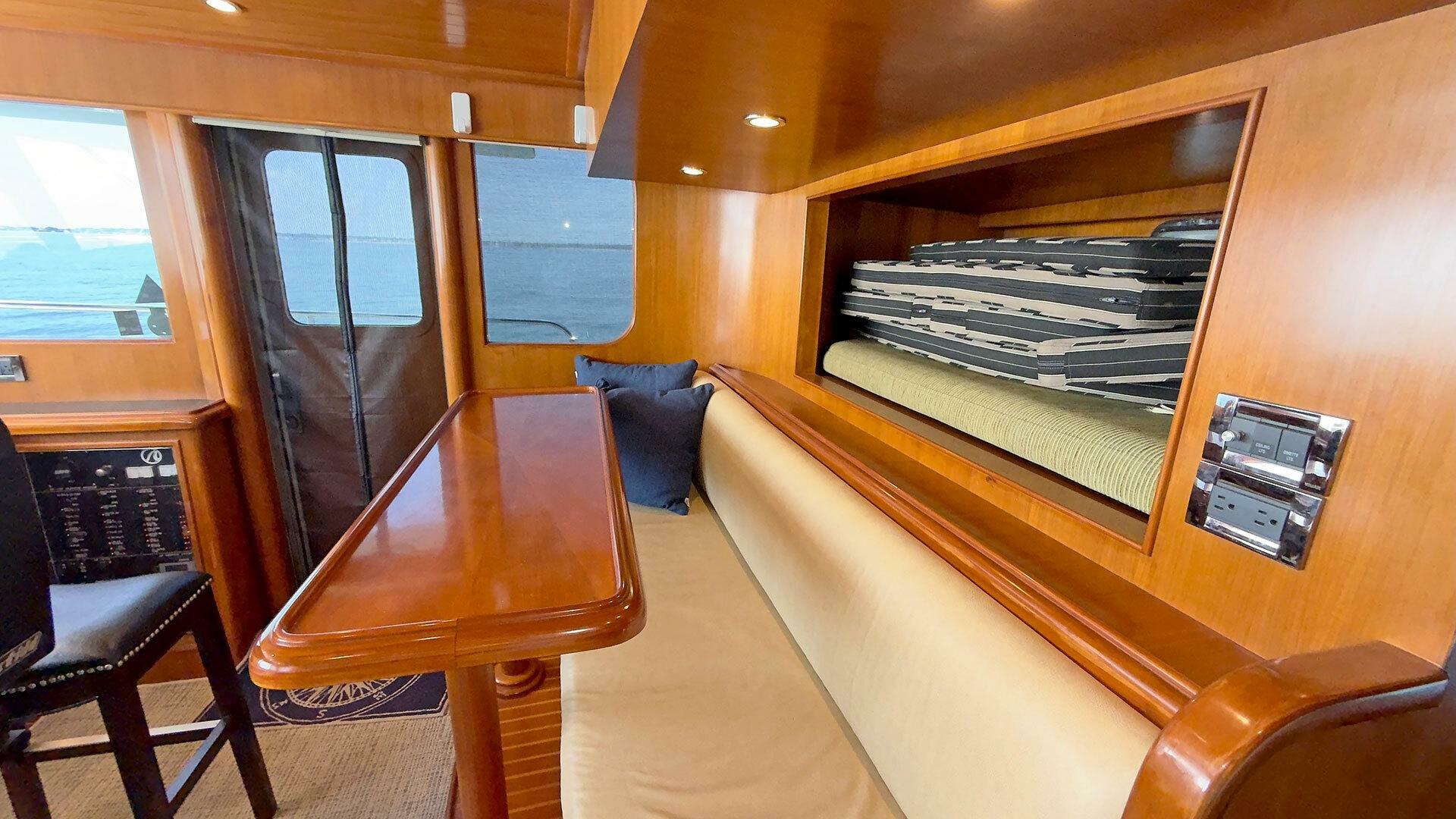 The saloon has a 32" Samsung LCD Smart TV with custom vertical lift motor | Digital TV antenna | Sony home theatre with Blue-Ray system with ceiling mounted speakers |Pilothouse Fusion MS-UD755 AM/FM/Sirius radio with Infinity speakers | 32” Samsung LCD Smart TV on wall mount in owner stateroom | Peplink Router with 5G and Wi-Fi plus integration with Starlink for Internet