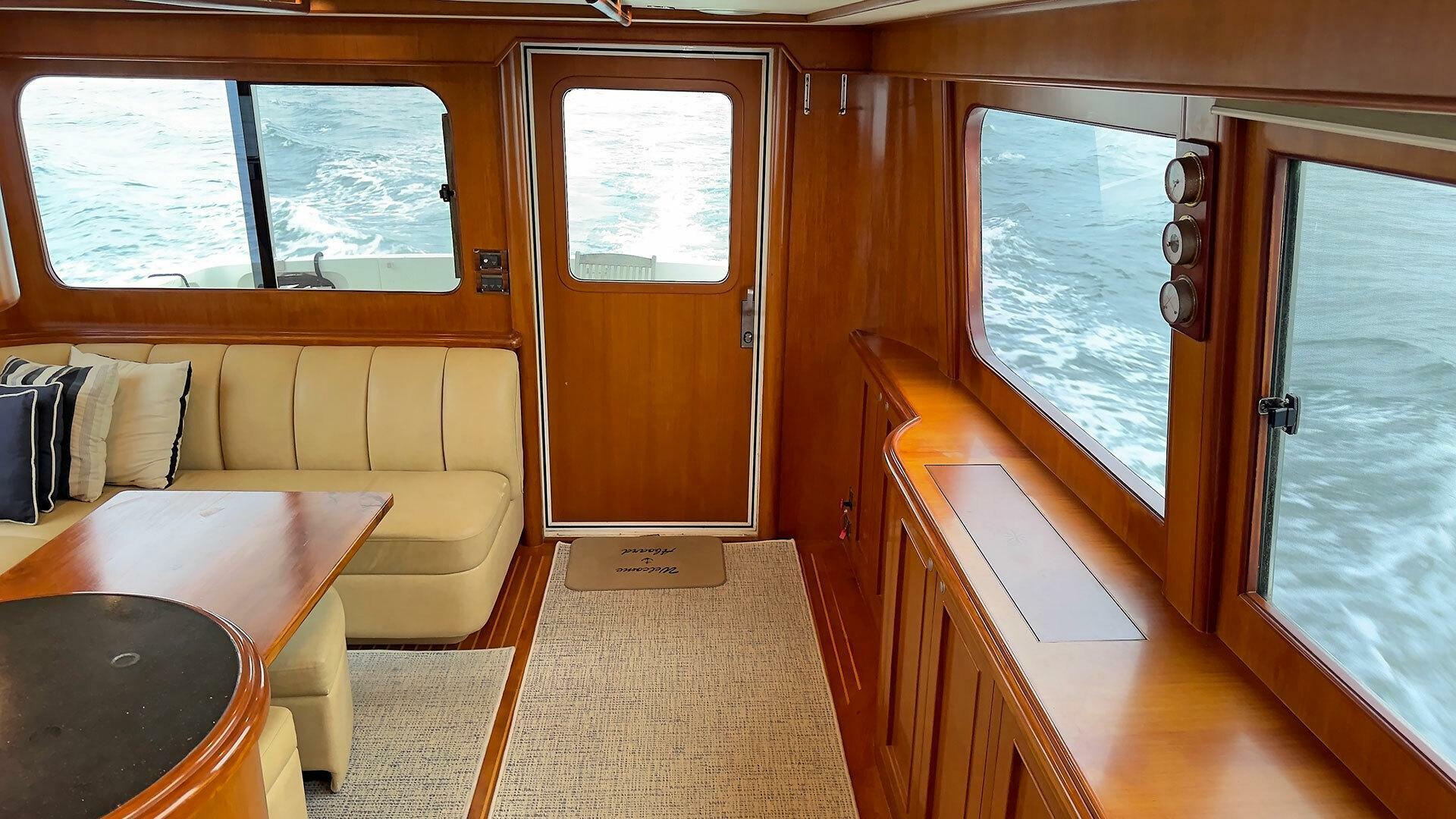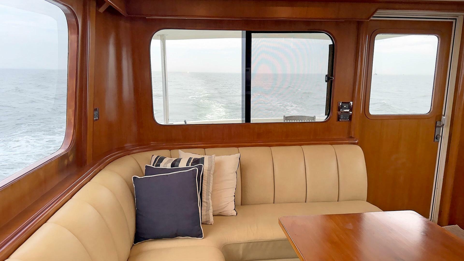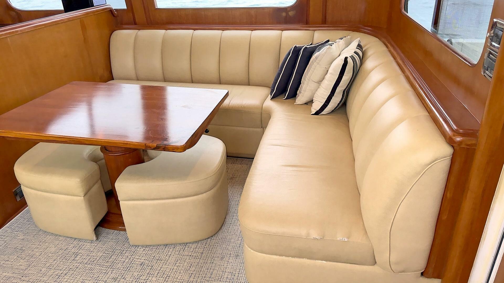 - L-shaped settee on starboard side