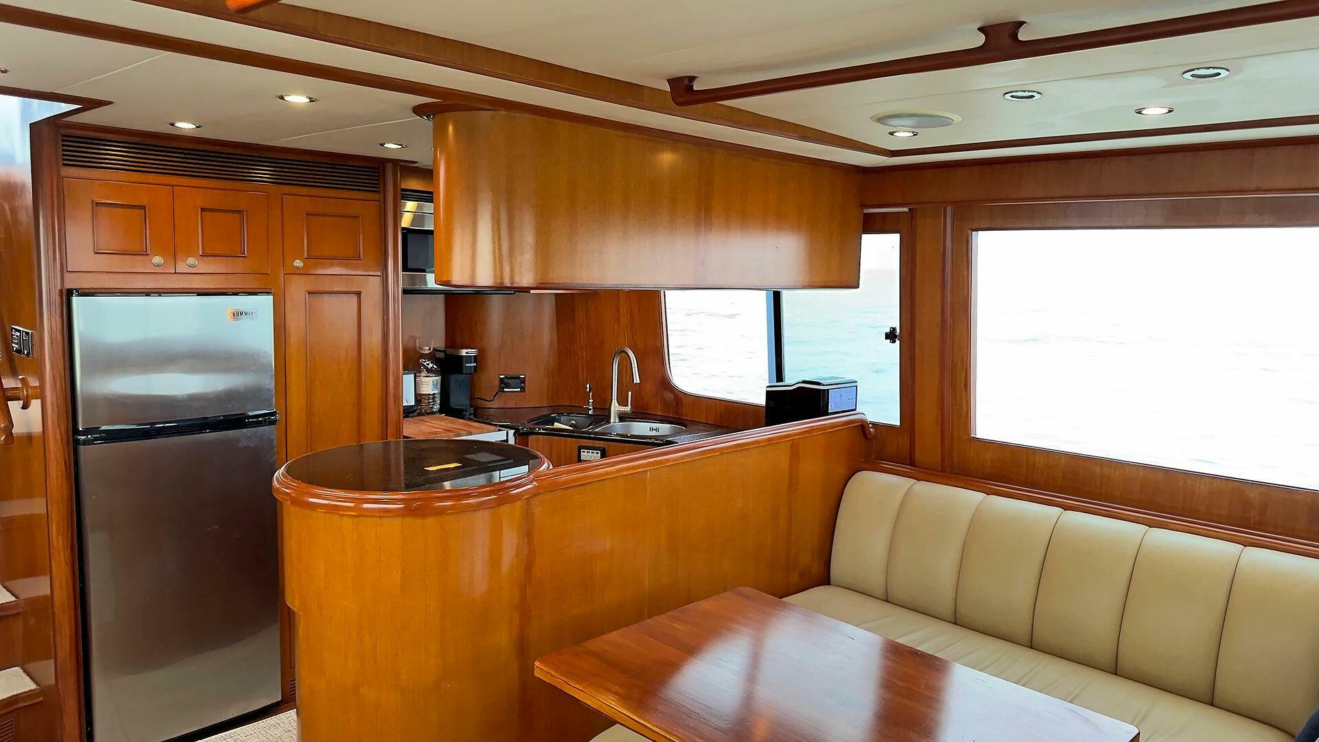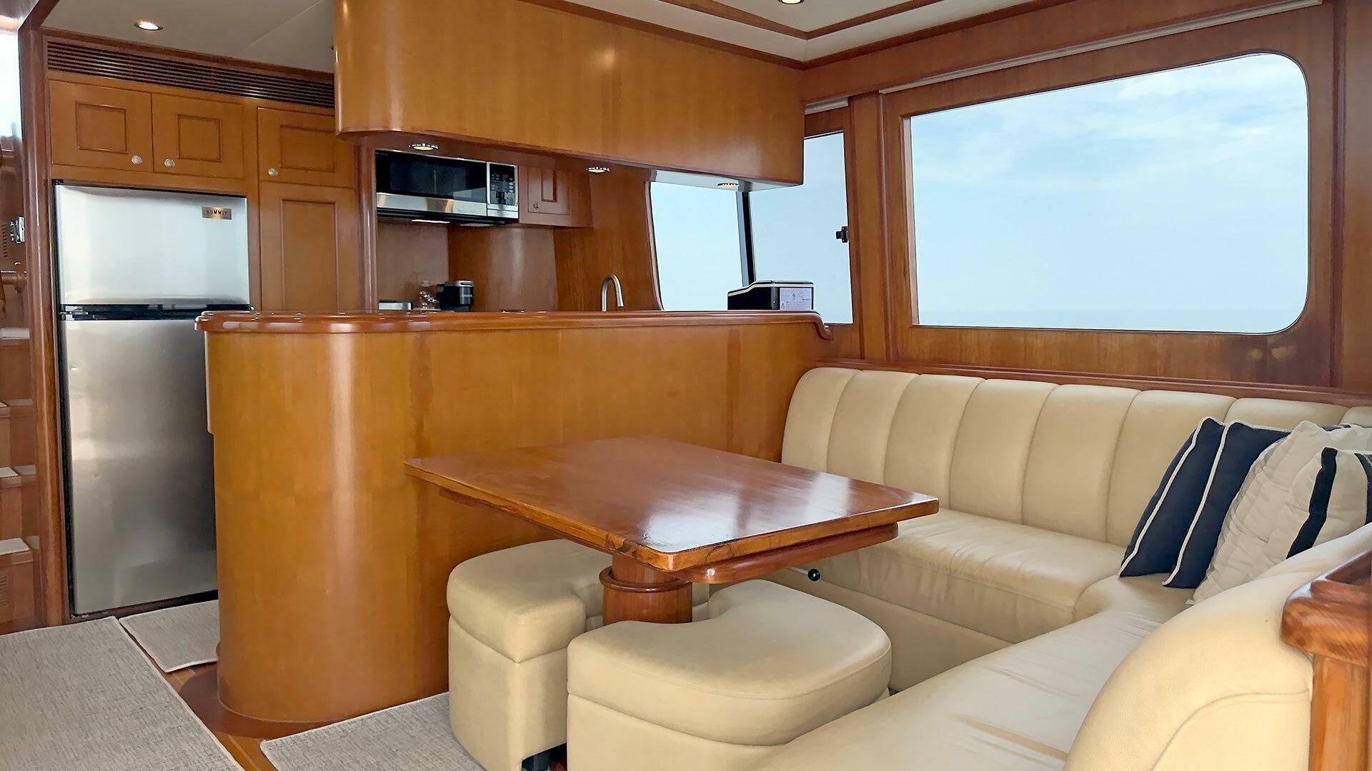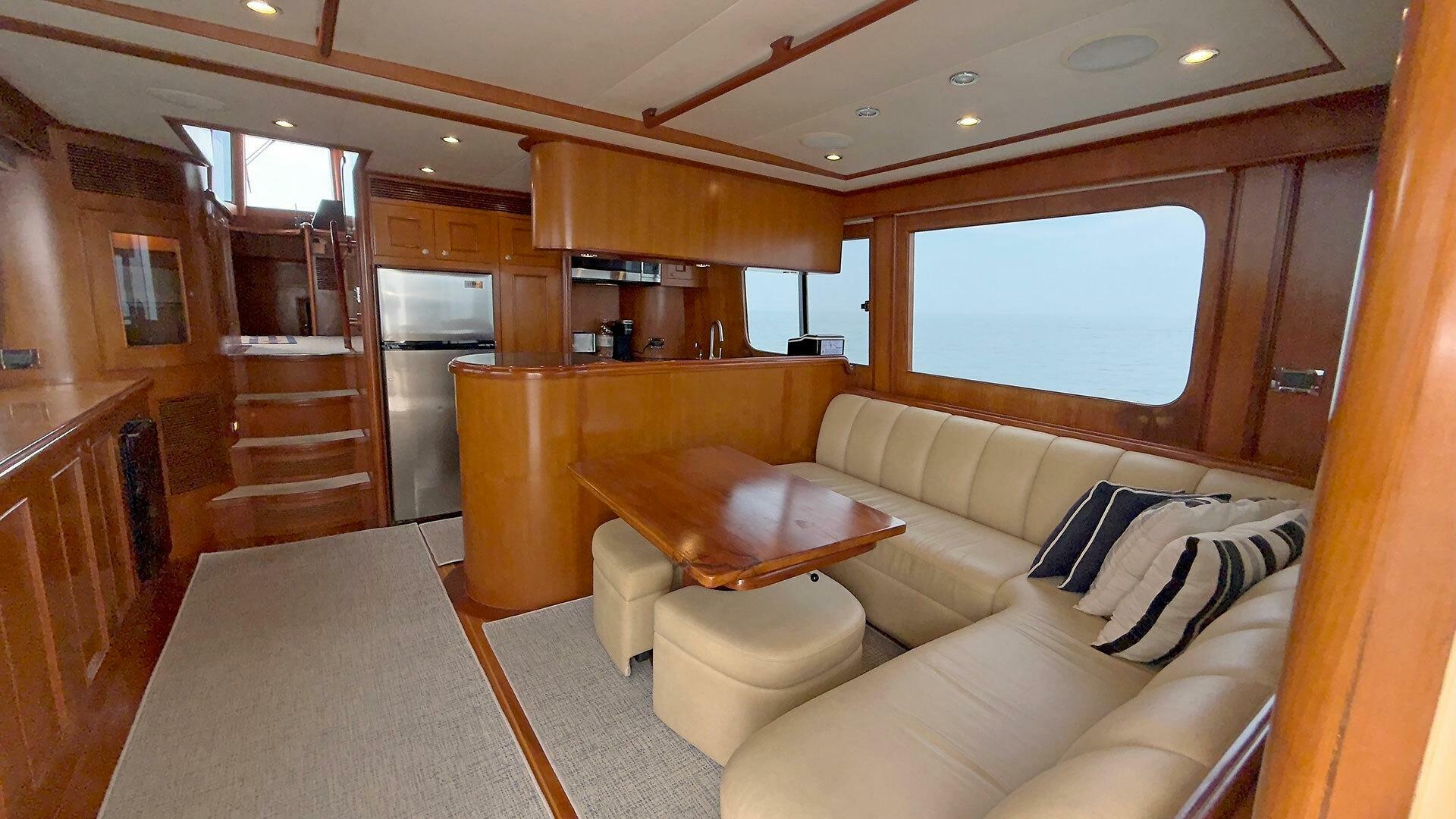 - L-shaped settee on starboard side