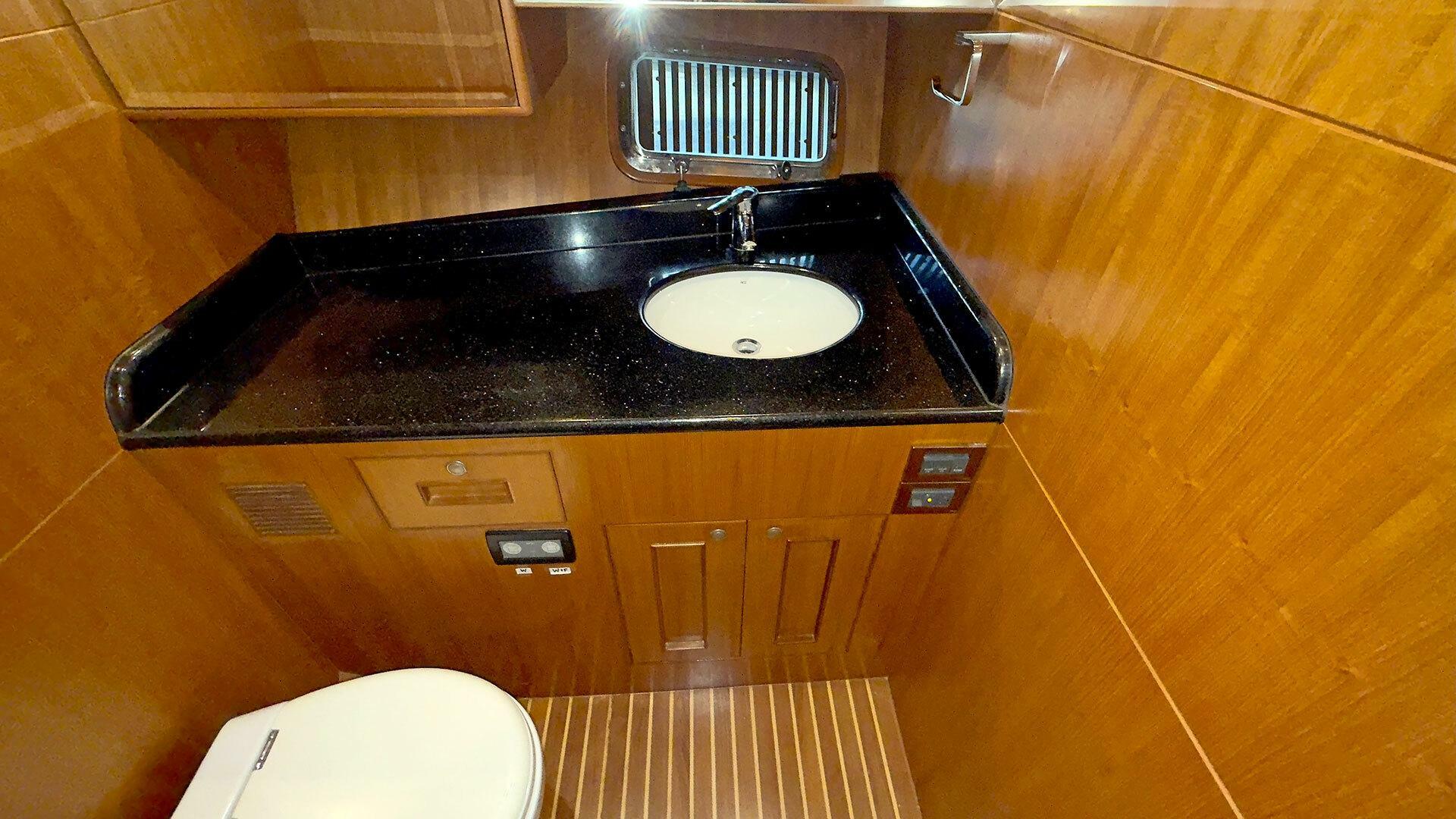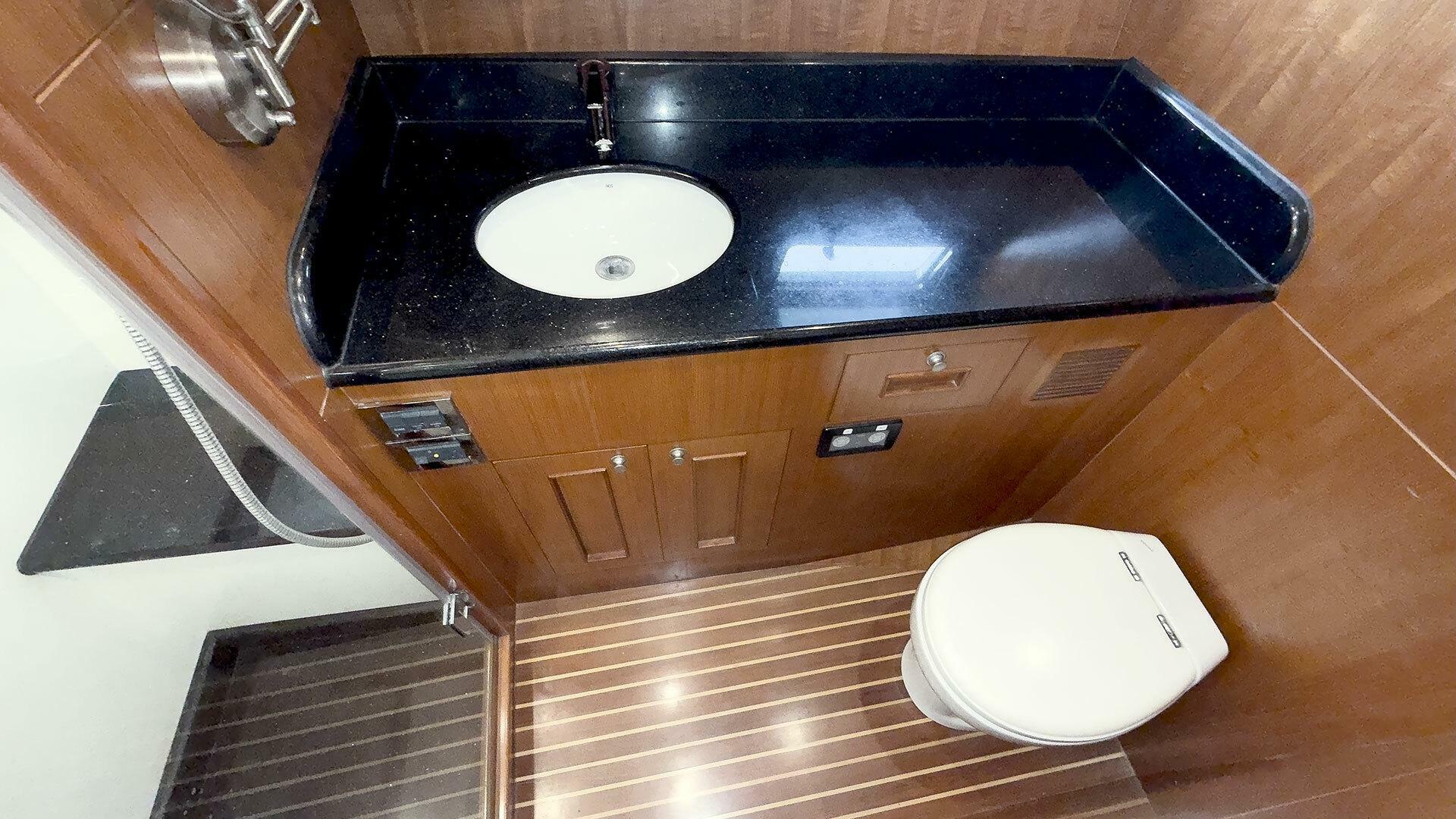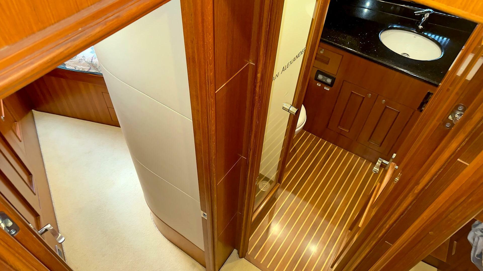 Three: Stand up in owner head with door| Stand up in guest head with door | Cockpit shower