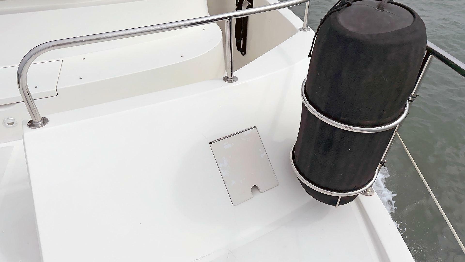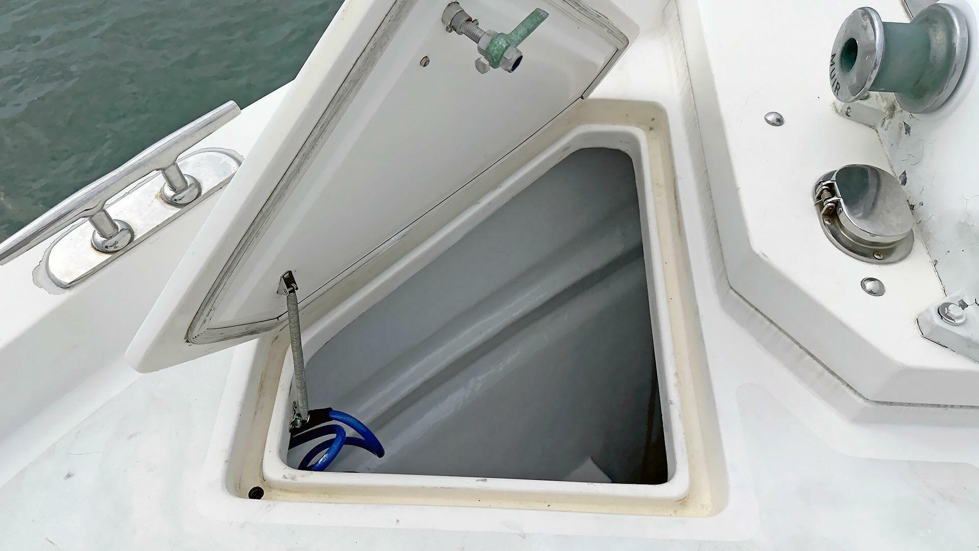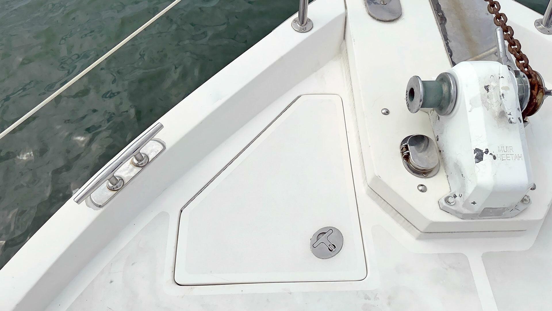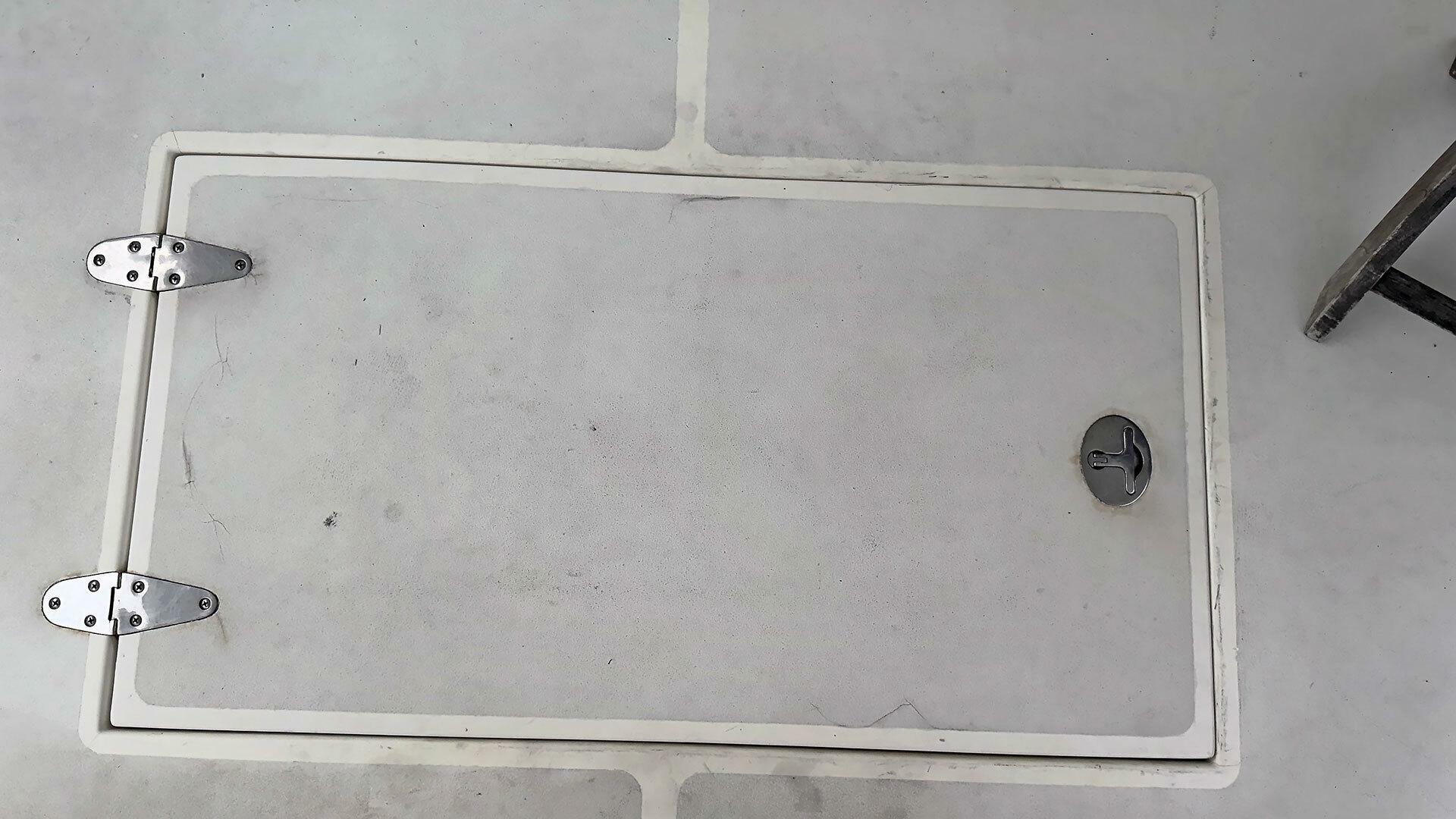 - Opening hatch in the deck to the lazarette below