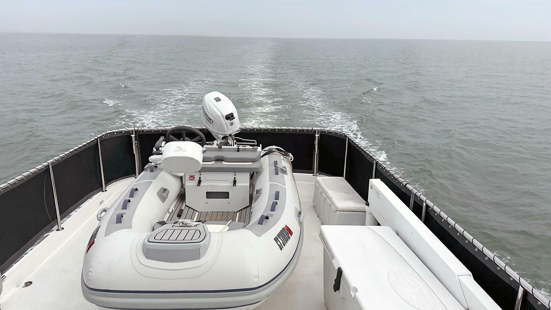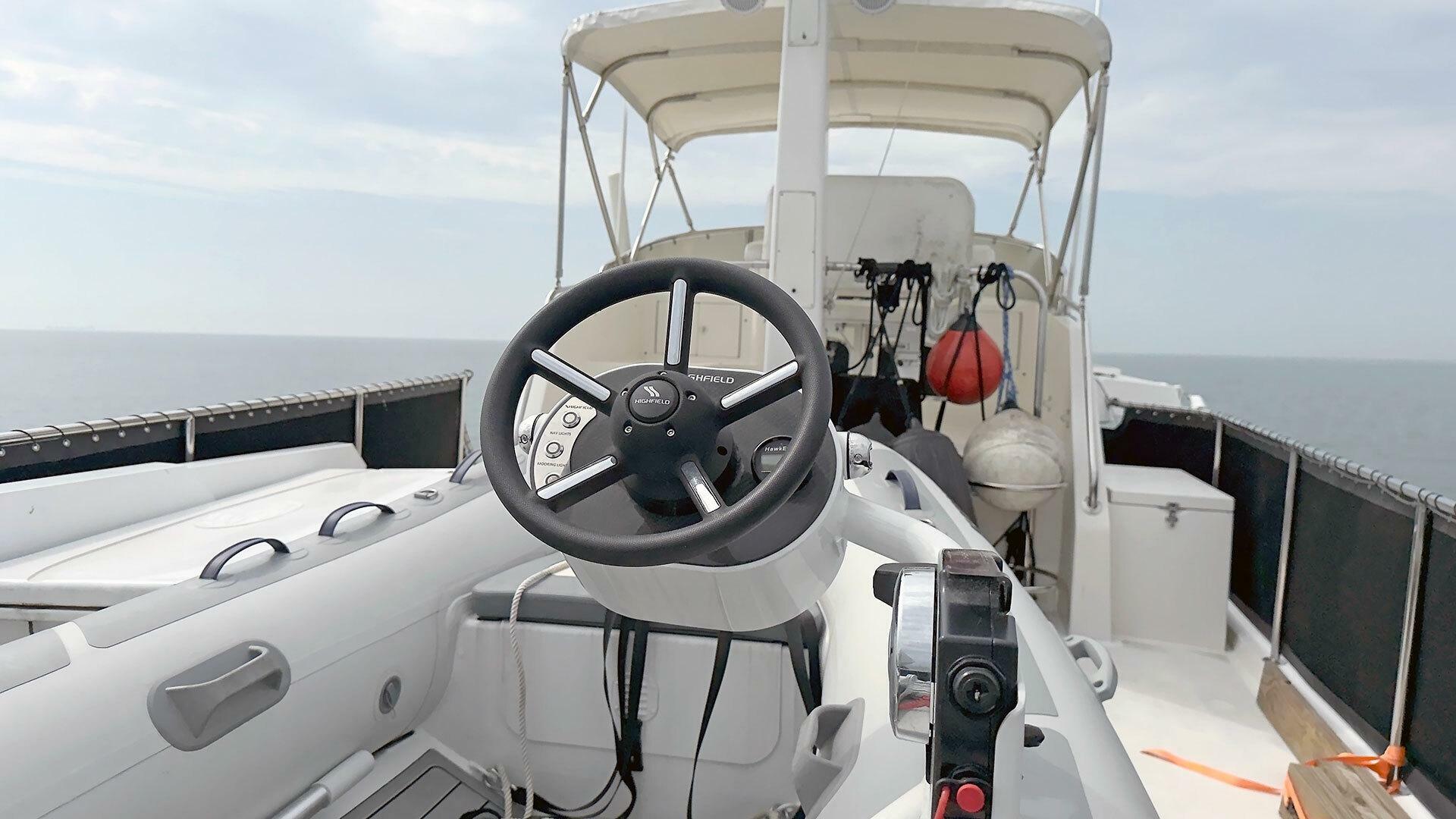 Highfield CL340 with FTC Console | 25 HP Suzuki 4-stroke engine | Depth sounder and bilge pump| Dinghy cover
