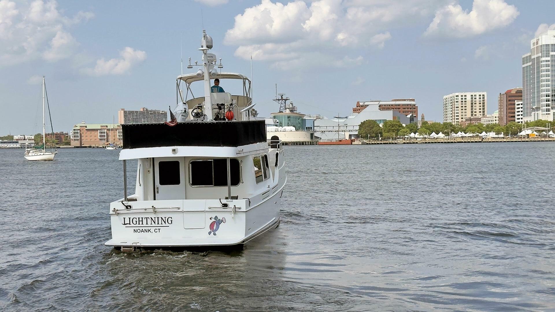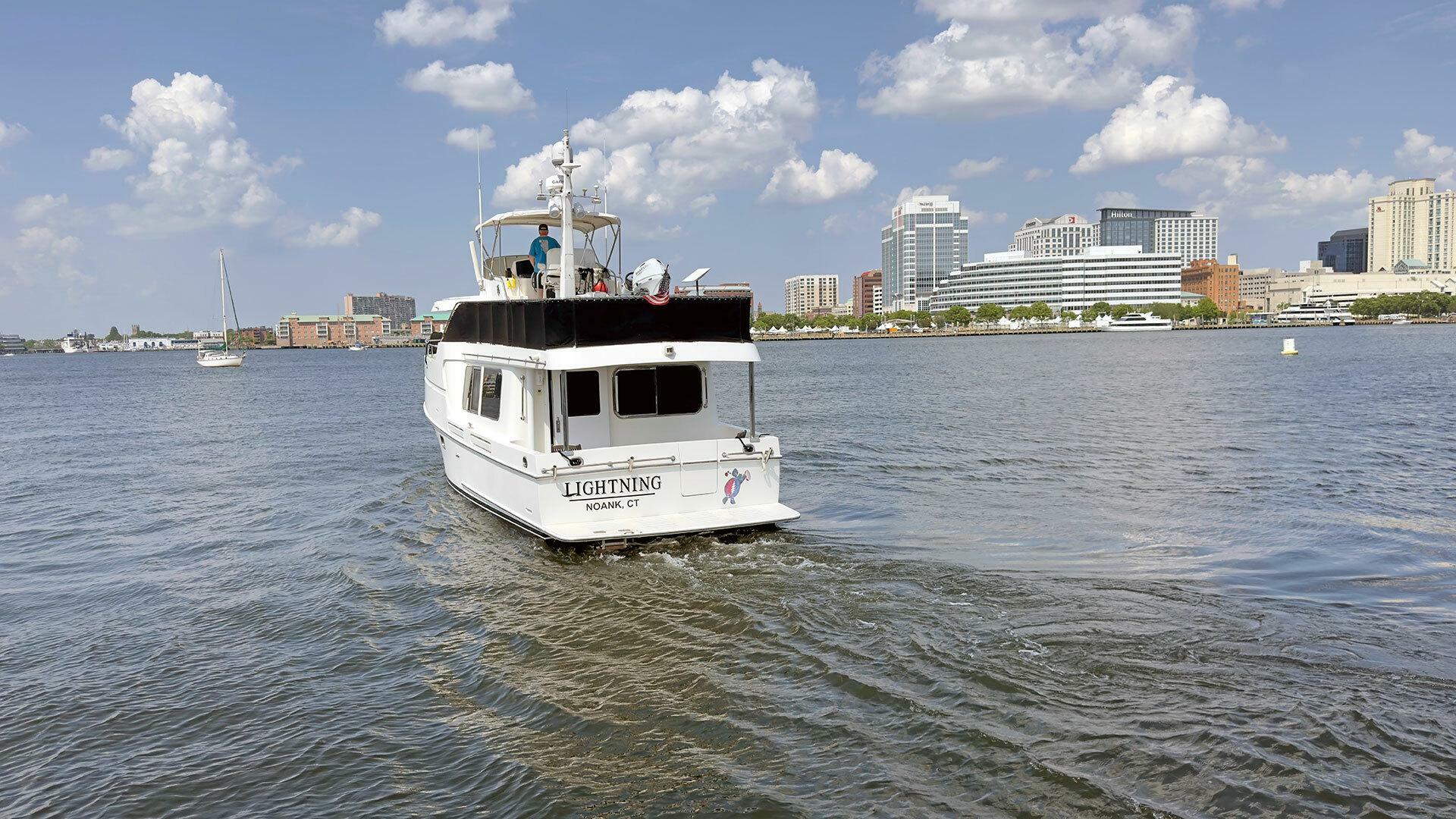 Lightning is a highly desirable trawler due to her exceptional stability underway and comfortable layout. Sturdy construction and reliable systems allow her to travel offshore, port to port as an ideal coastal cruiser. She has completed America’s Great Loop – twice! And is ready to head back out for another lap.