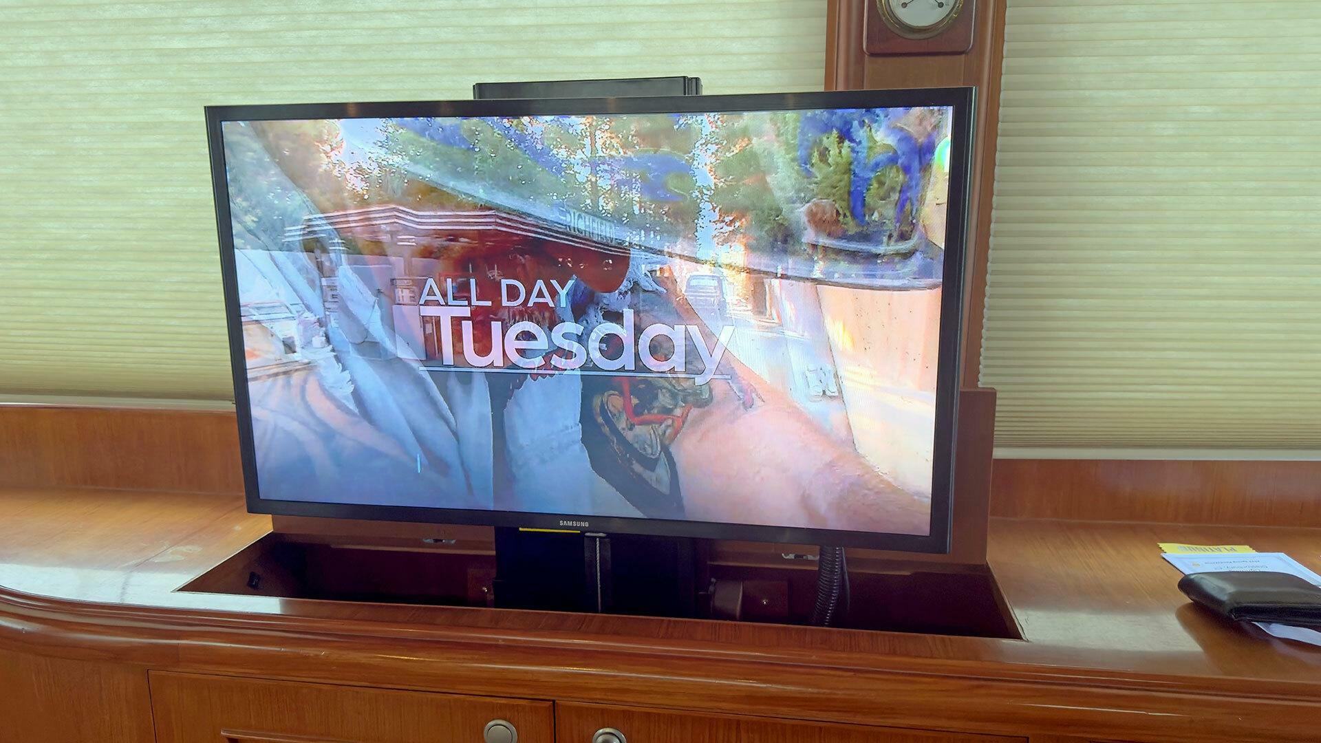 - 32” Samsung LCD Smart TV on motorized vertical Lift in port side cabinet