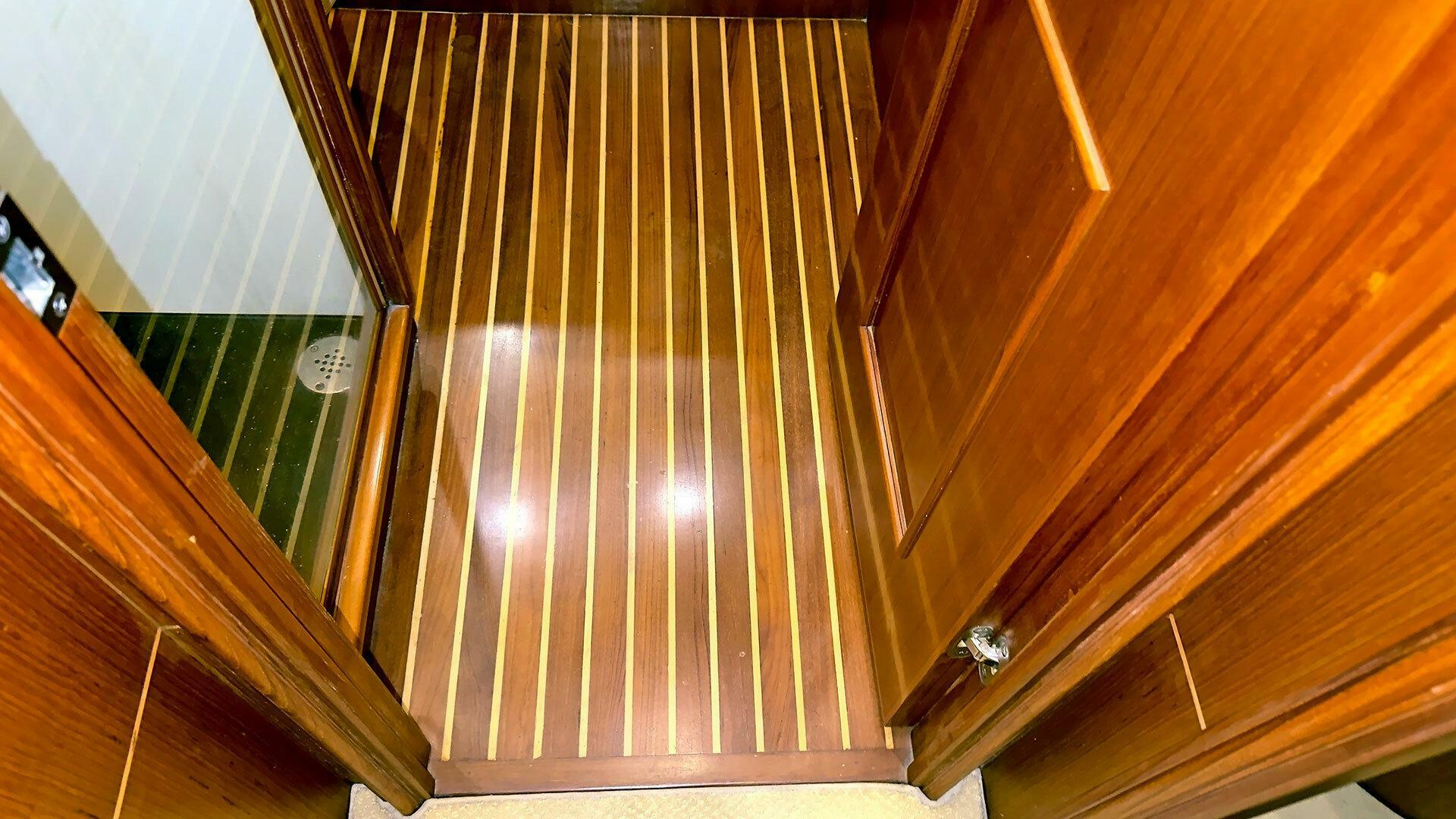 - Teak and holly sole with carpet runners over