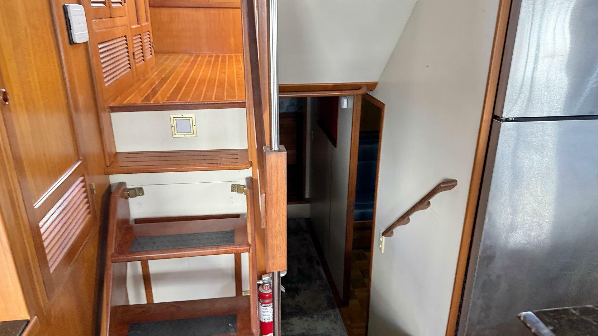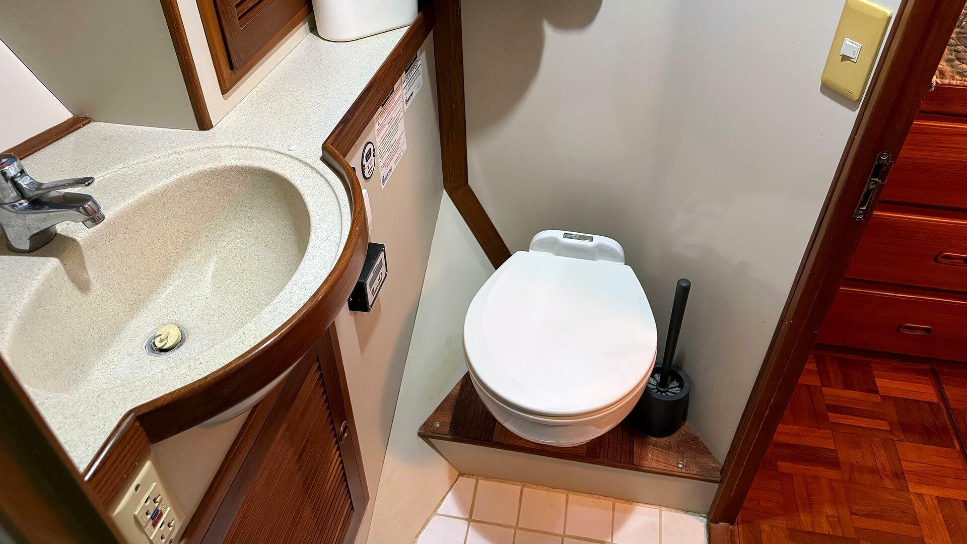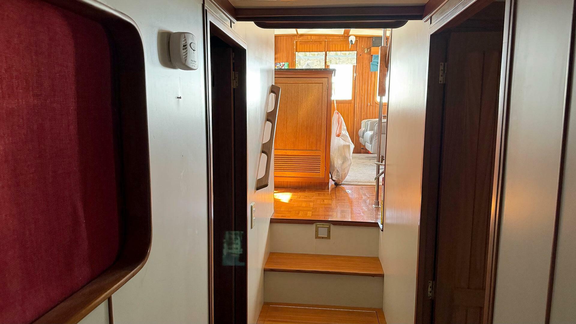 Moving forward from the galley you can go up to the pilothouse or down a short flight of steps to the lower-level living quarters with consists of two staterooms and two heads.