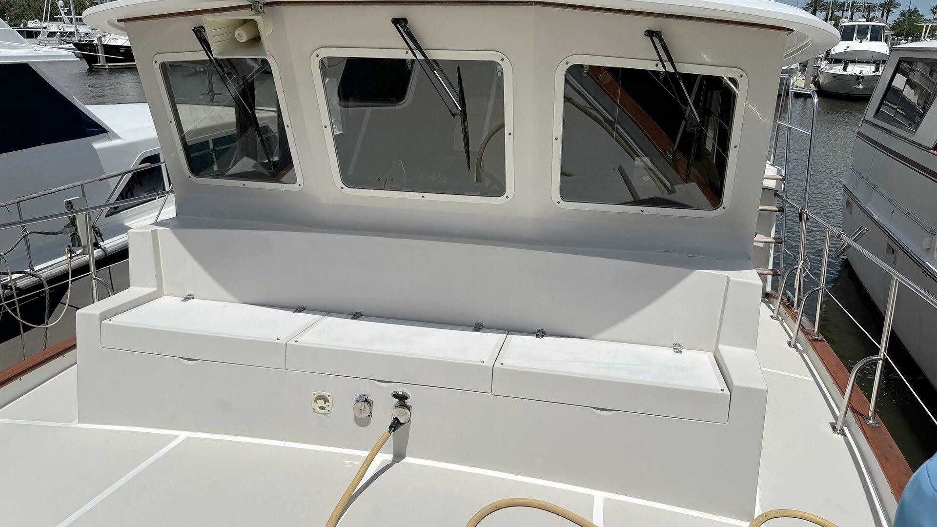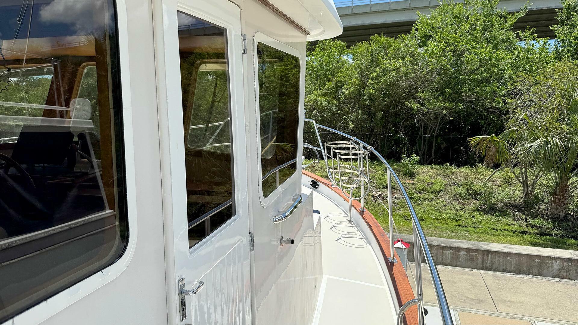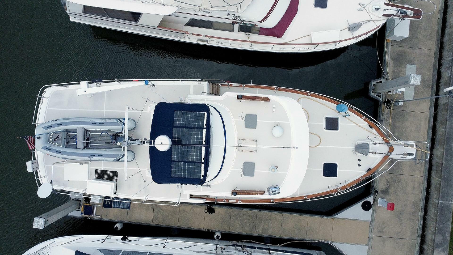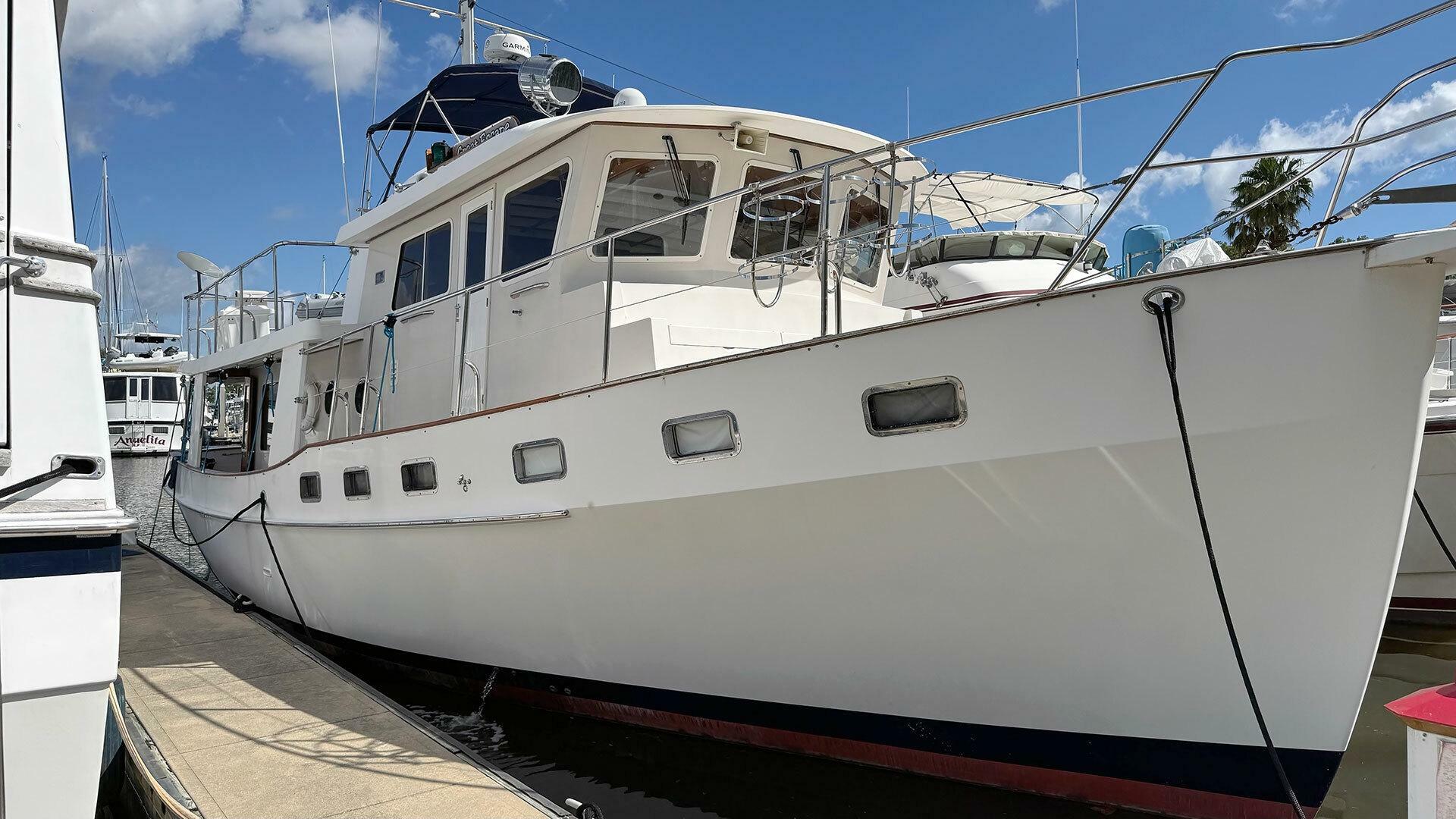 Her current owners have enjoyed several adventures and many improvement projects to enhance their experiences. She features the popular widebody saloon/deck arrangement which creates more interior volume in the entry level, galley/saloon. The living arrangements below decks is the popular, two stateroom and two head layout. For operations you have the choice of running her from the raised pilot house or flybridge, both with excellent visibility.