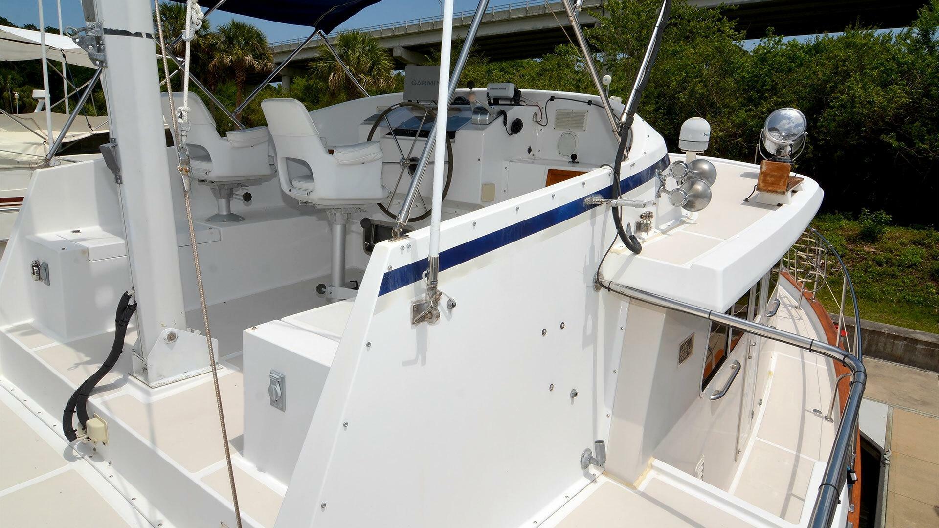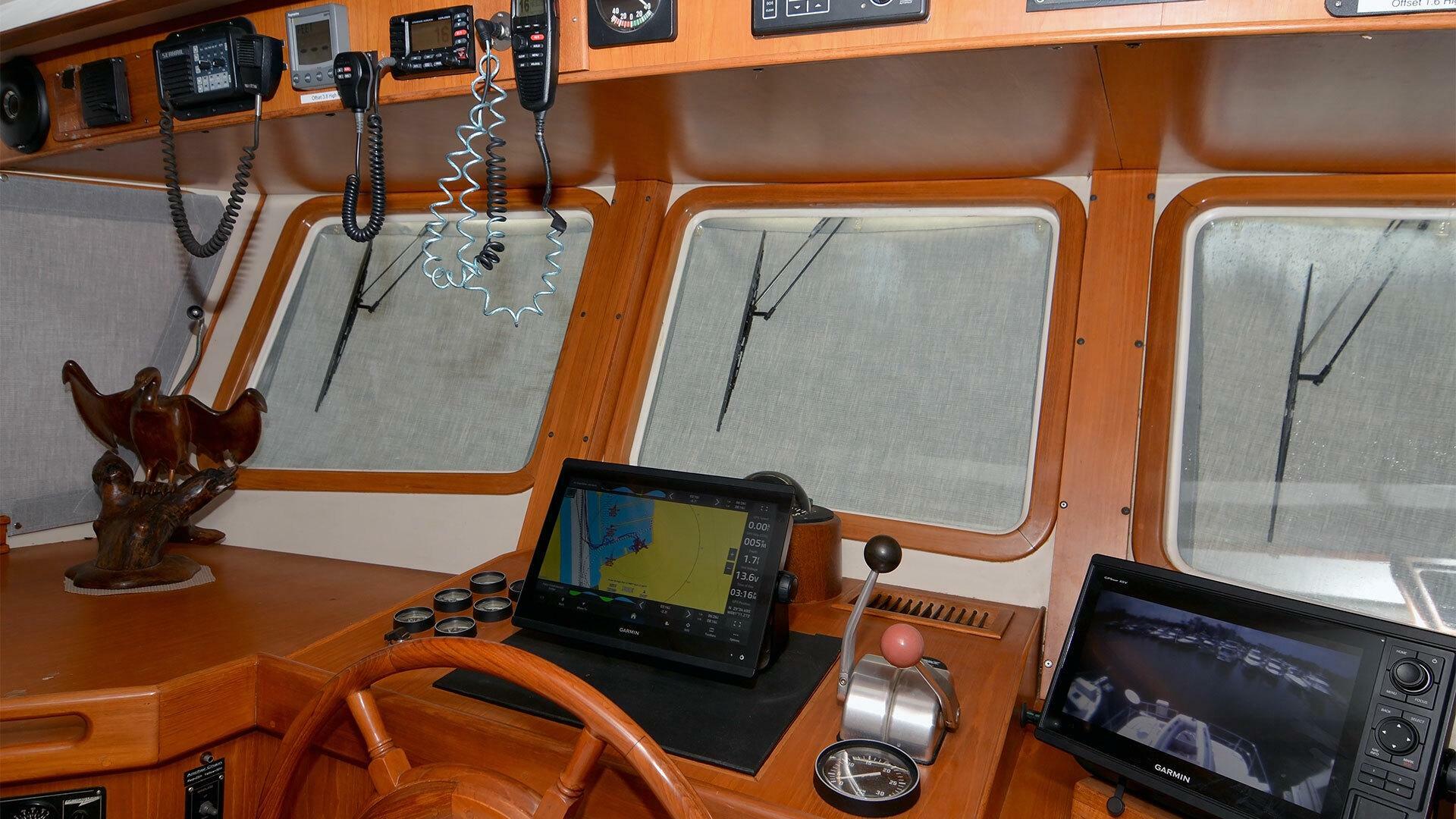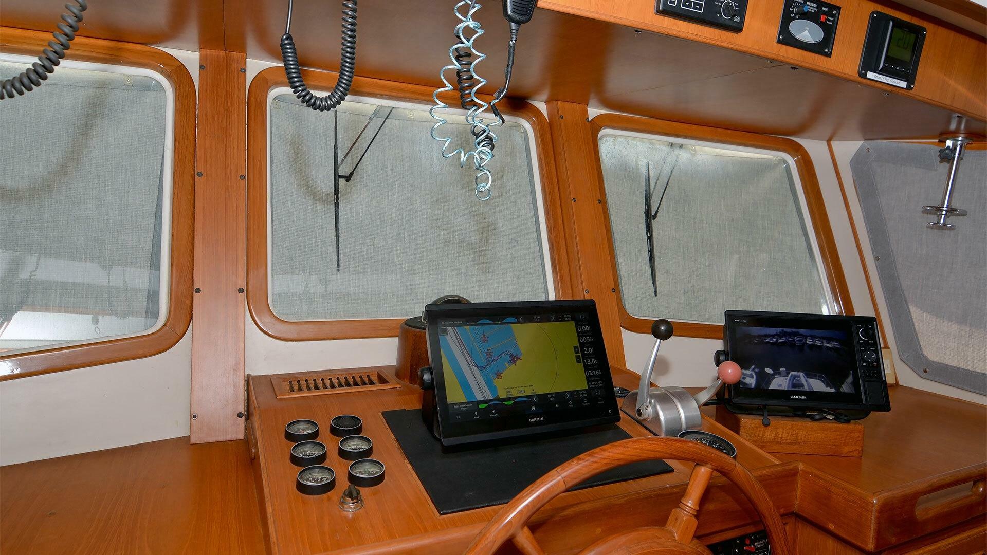 Her current owners have enjoyed several adventures and many improvement projects to enhance their experiences. She features the popular widebody saloon/deck arrangement which creates more interior volume in the entry level, galley/saloon. The living arrangements below decks is the popular, two stateroom and two head layout. For operations you have the choice of running her from the raised pilot house or flybridge, both with excellent visibility.