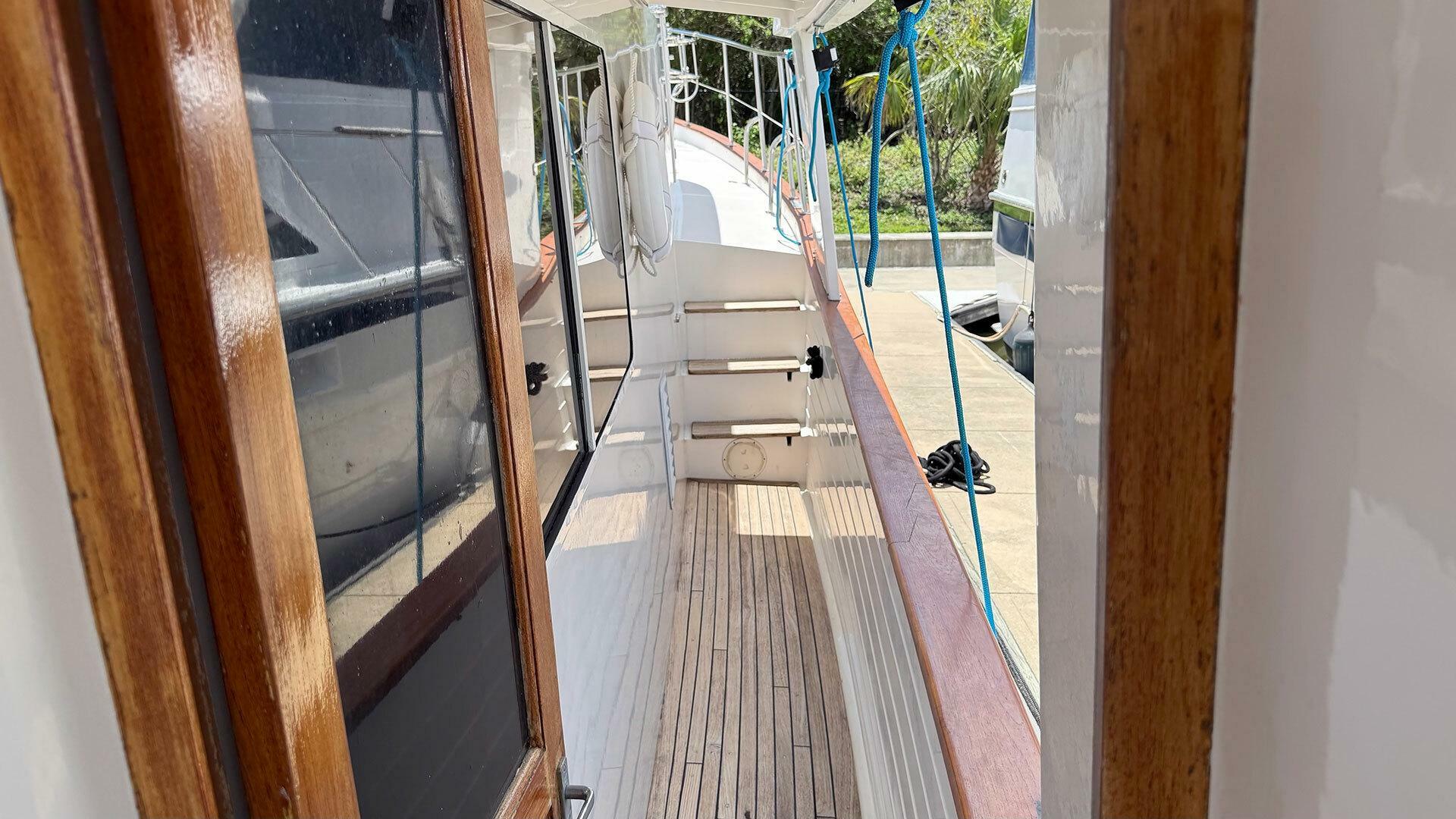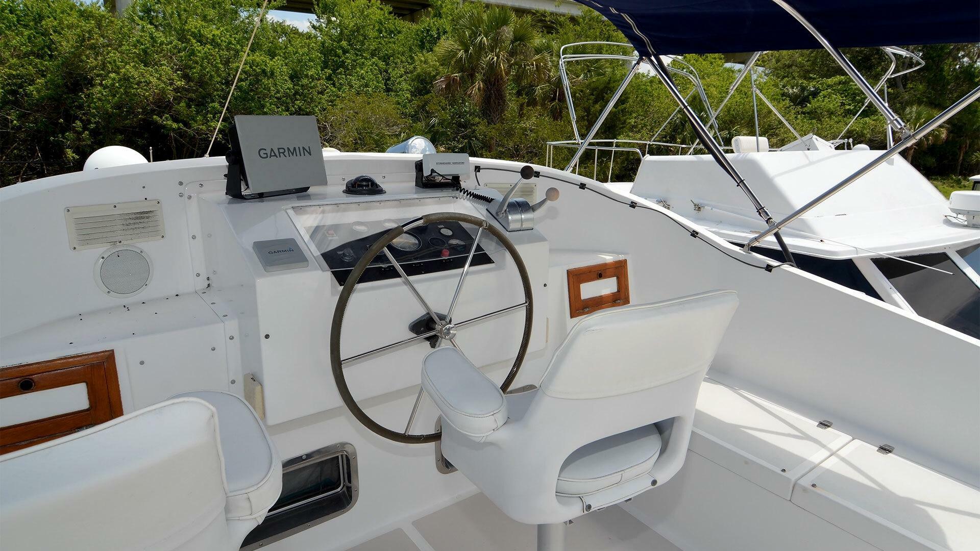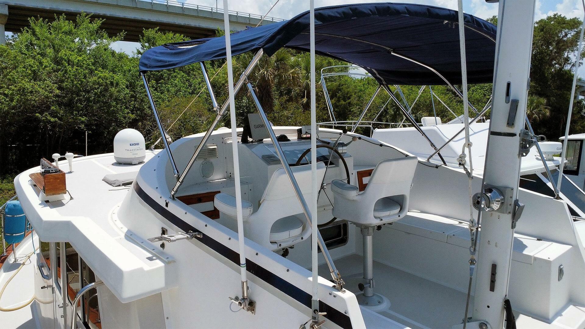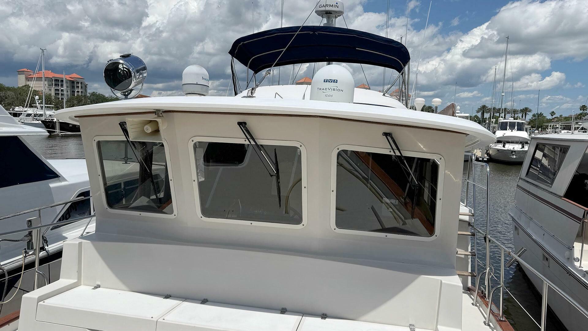 Her current owners have enjoyed several adventures and many improvement projects to enhance their experiences. She features the popular widebody saloon/deck arrangement which creates more interior volume in the entry level, galley/saloon. The living arrangements below decks is the popular, two stateroom and two head layout. For operations you have the choice of running her from the raised pilot house or flybridge, both with excellent visibility.