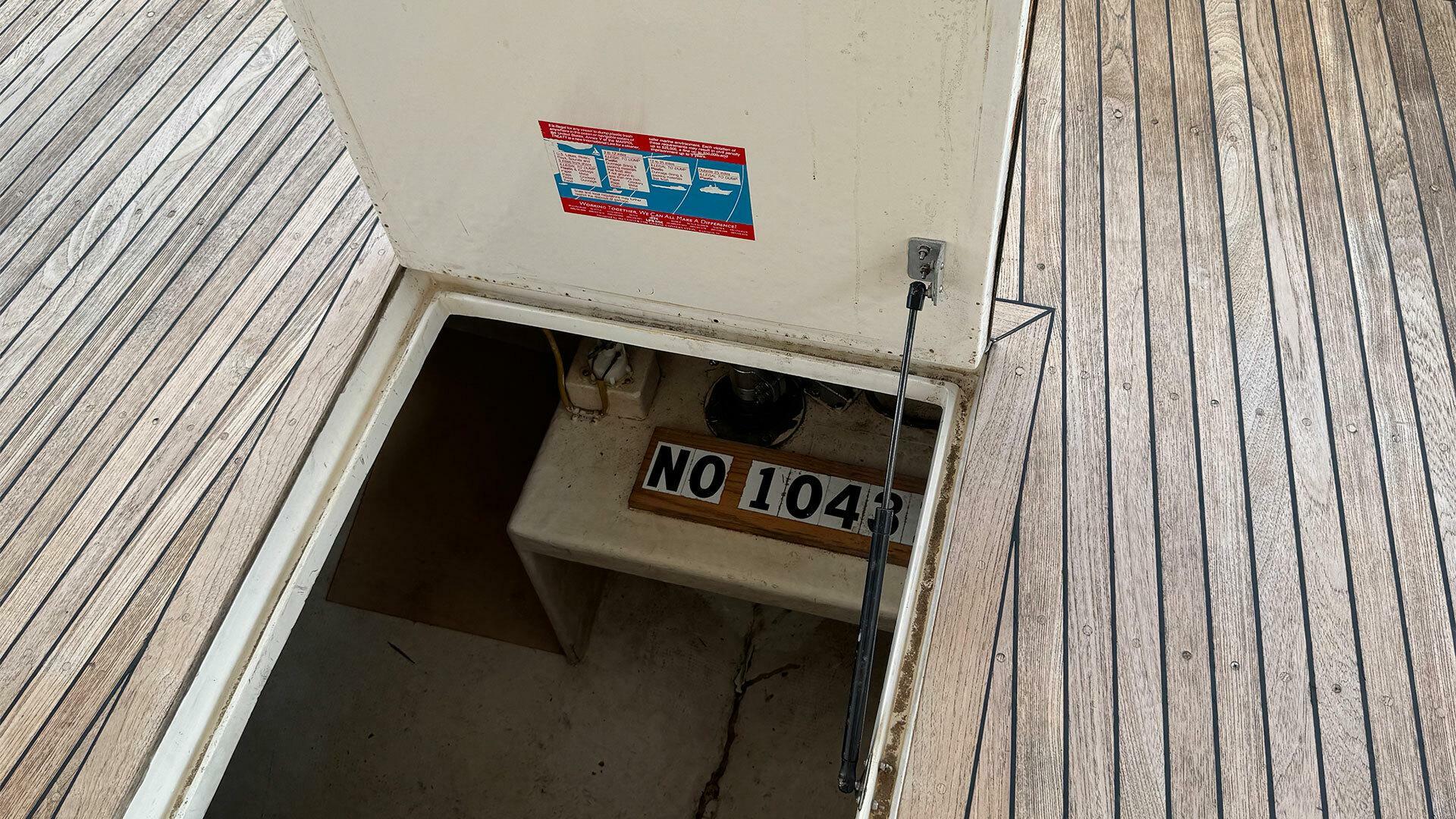 The lazarette houses the steering system and provides plenty of storage. Room to bring aboard your own requirements and spares.