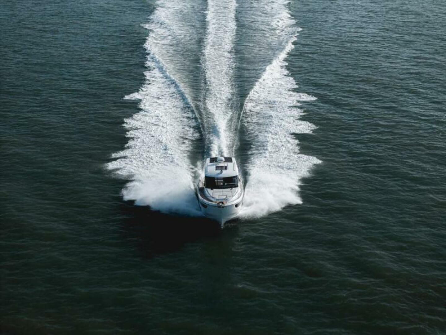 The new Antares 9 has an elegant profile and boasts sleek, powerful lines, enhanced by a silver rubbing strake and long hull windows. The wheelhouse arch, a real hallmark of the line, forms a slightly broken curve. It joins the extensive coachroof, which protects the generously sized aft cockpit. By adding an extra seat, the L-shaped bench seat can be converted into a U-shaped saloon area, the ideal layout for a large number of guests. This modular saloon can be easily converted into a sunbathing area when you want to relax and sunbathe.