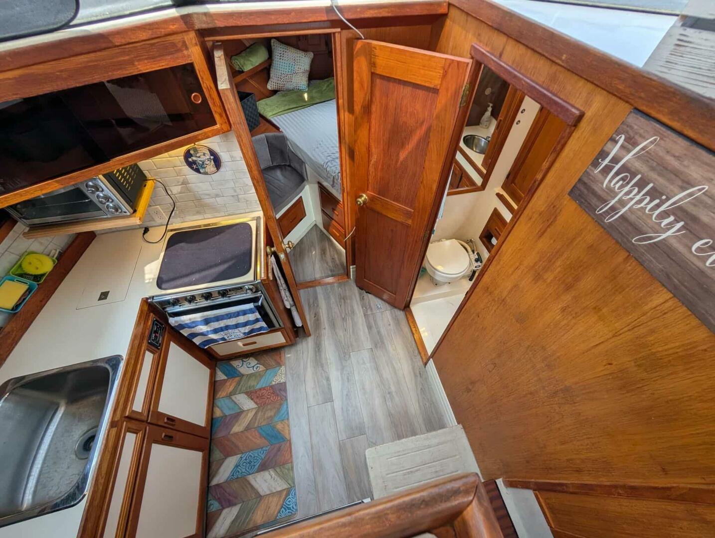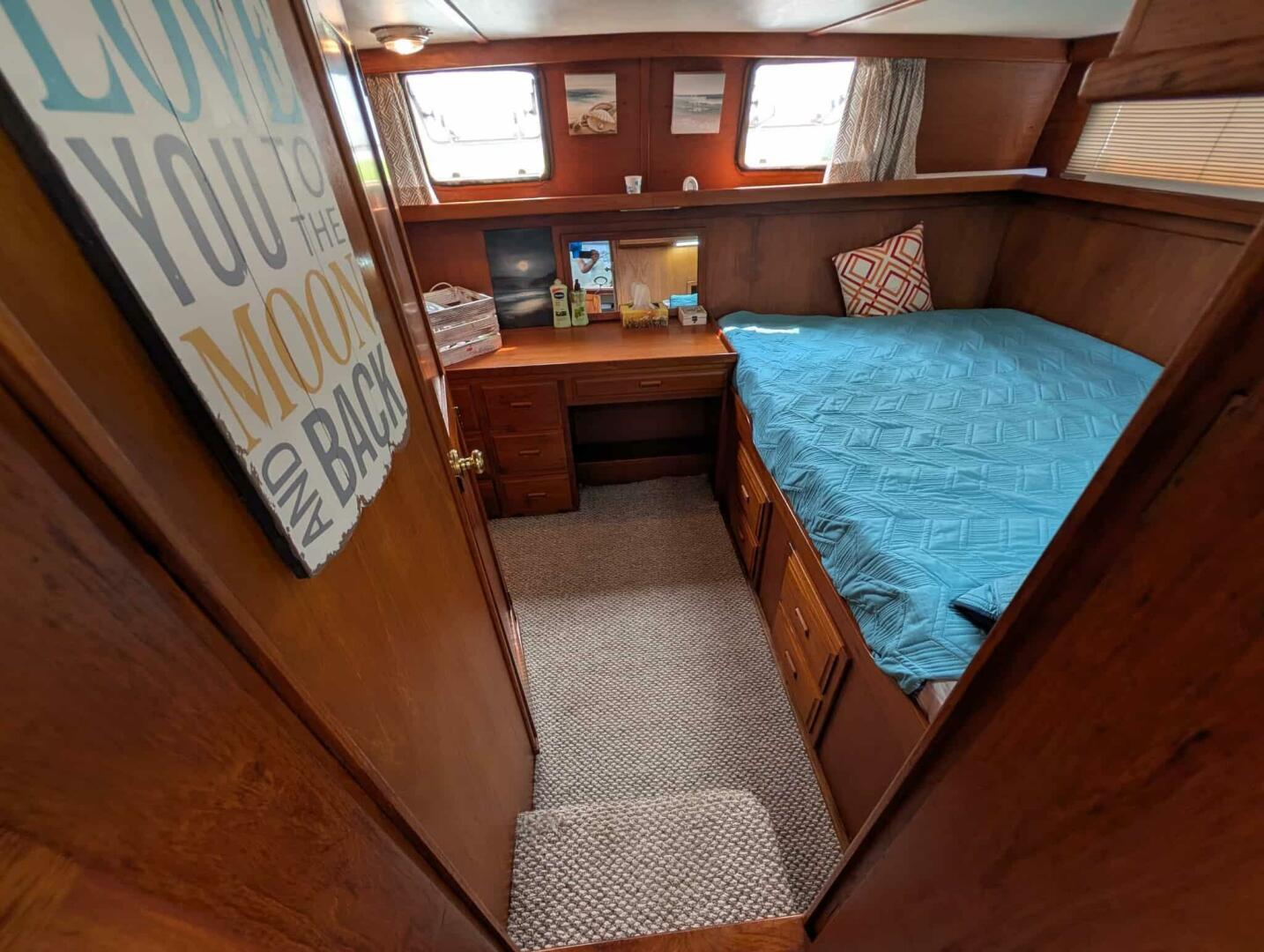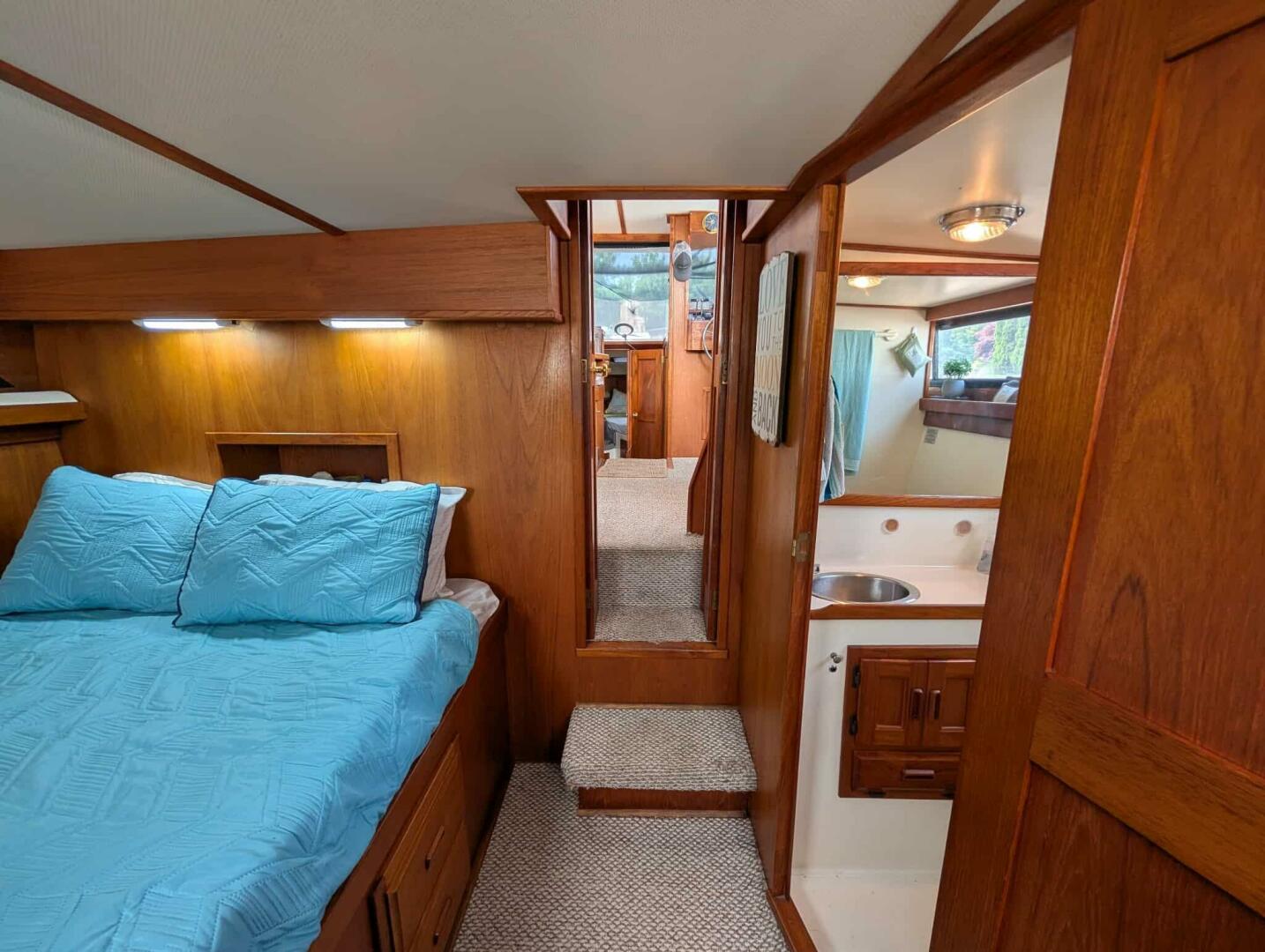 Sleeps 6: Forward Cabin, Aft Queen Walkaround Stateroom + Convertible Salon Berth