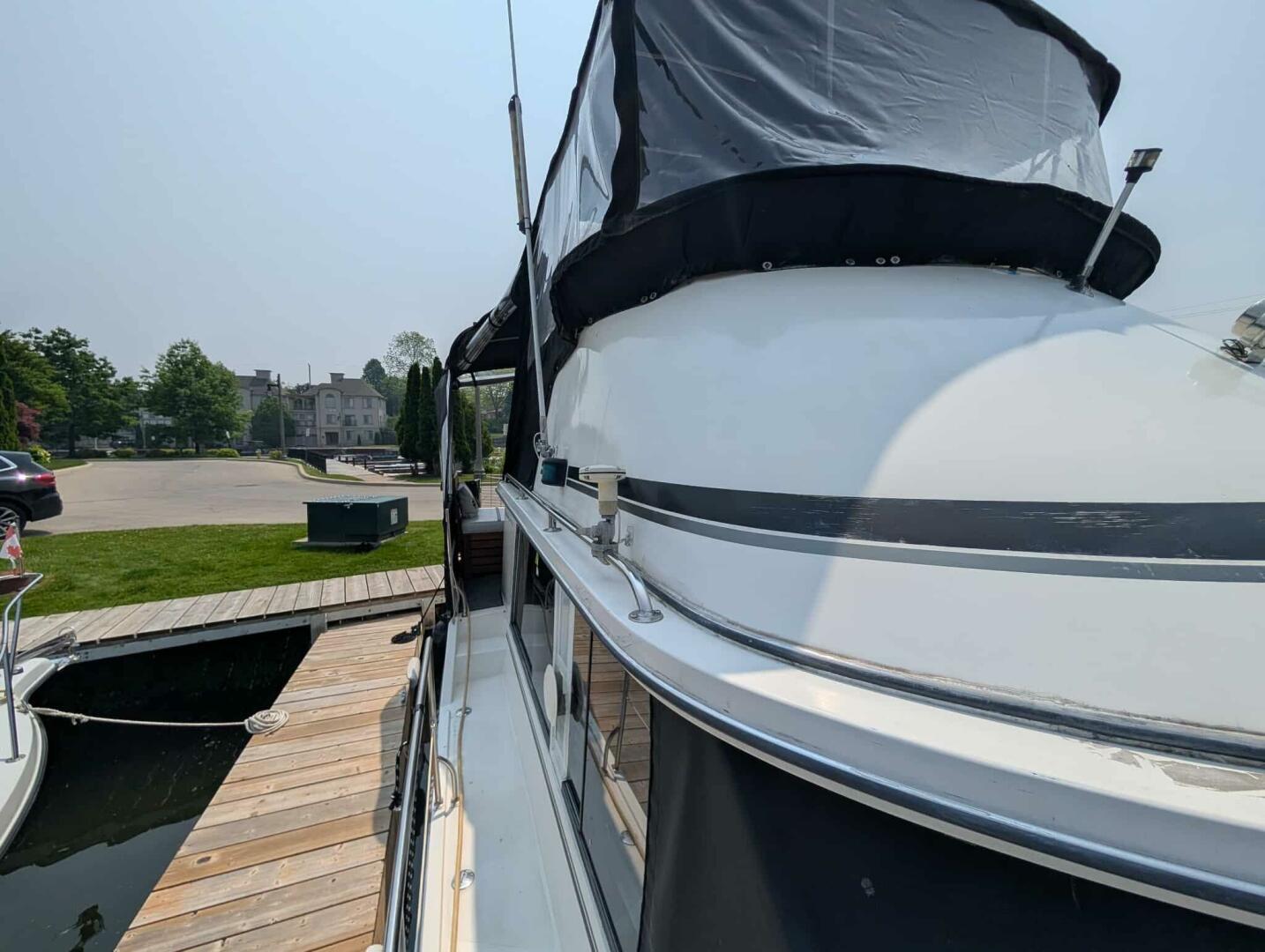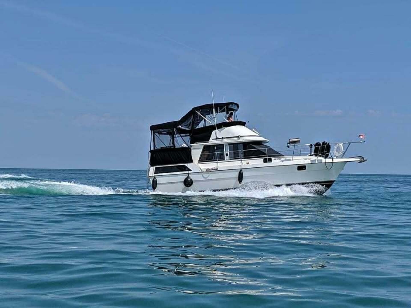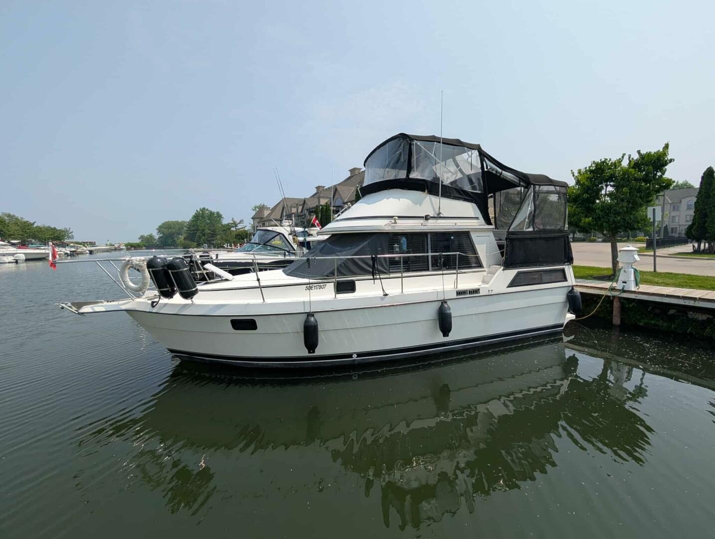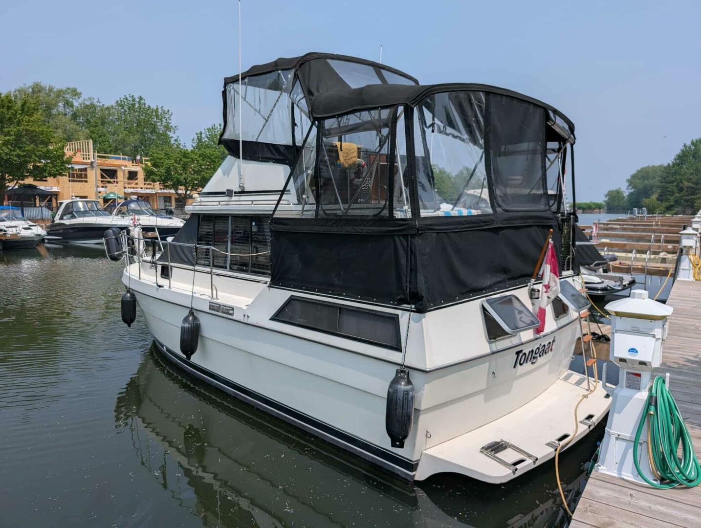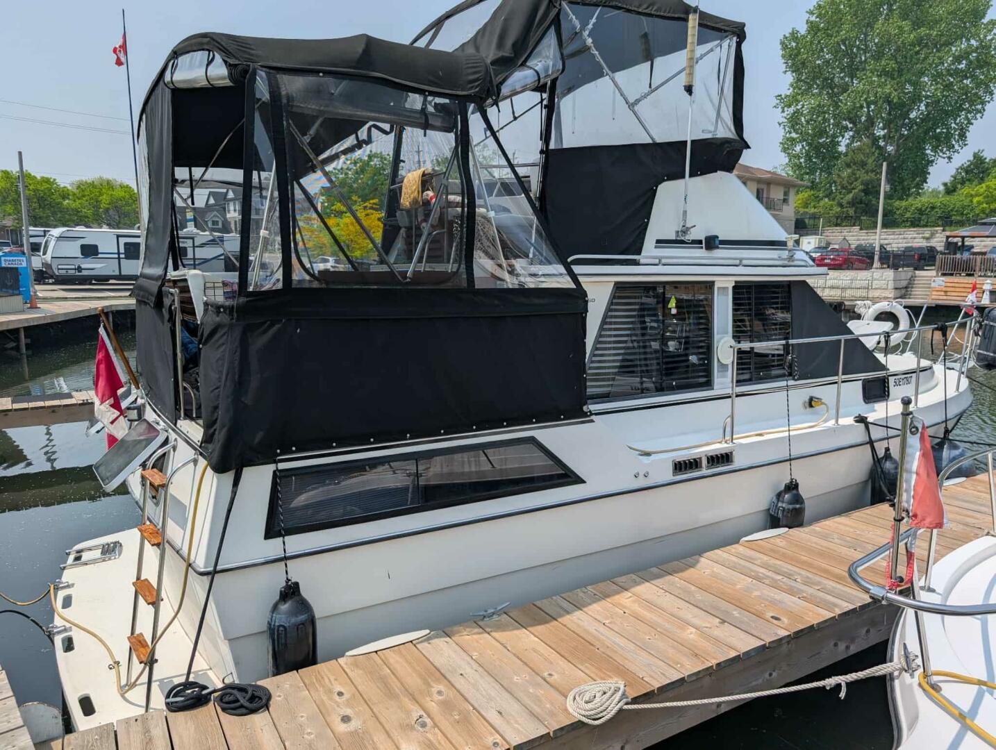 1986 COOPER PROWLER 10M SUNDECK – TWIN 305 V8 MERCRUISERS – 2 PRIVATE CABINS – 2 HEADS – FULL GALLEY – CUSTOM FLYBRIDGE SEATING – PROFESSIONALLY MAINTAINED – LOCATED IN GRIMSBY – SLIP FEE COVERED FOR 2025 – TRULY TURN-KEY WITH ALL EQUIPMENT INCLUDED – FULLY STOCKED, READY TO CRUISE THIS SEASON.