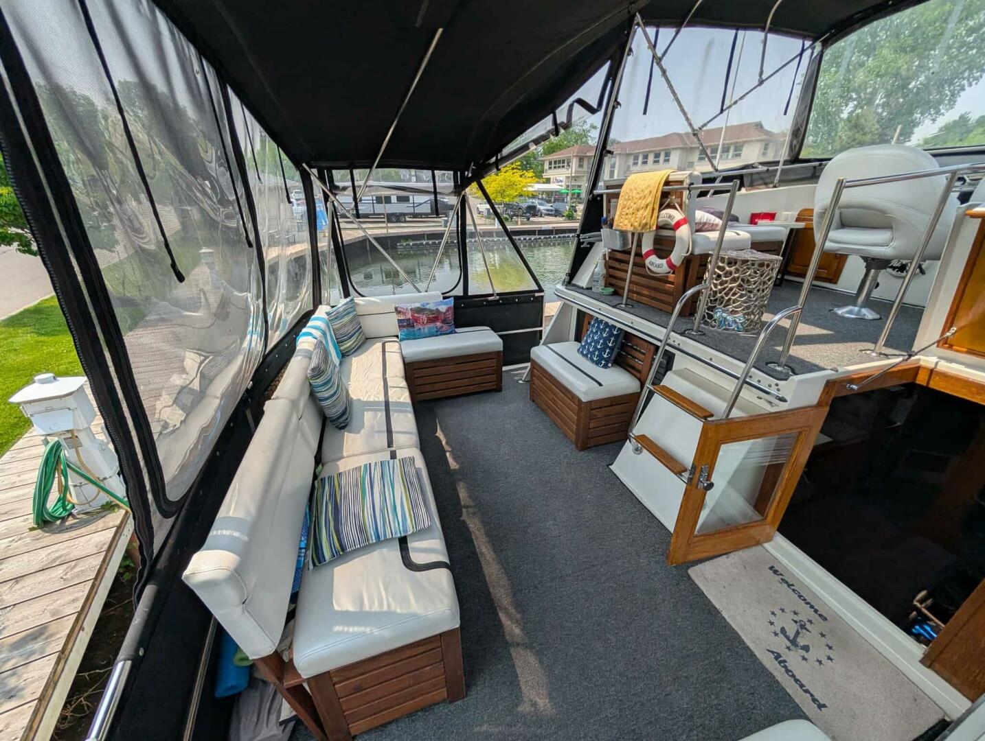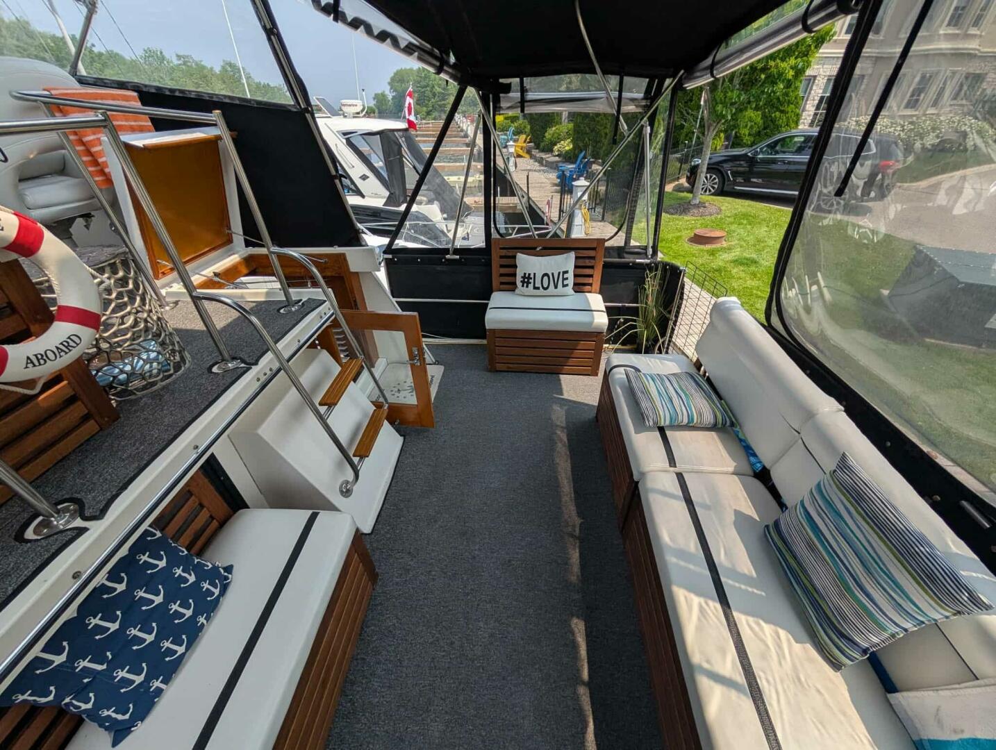 | Notable Upgrades: BRAND-NEW REFRIGERATOR/FREEZER (2024) – ROYAL SOVEREIGN 14,000 BTU A/C UNIT – CUSTOM FLYBRIDGE SEATING WITH CUSHIONS – UPGRADED MATTRESSES, SOFT GOODS, AND INTERIOR DECOR – FULLY OUTFITTED GALLEY WITH DISHWARE, COOKWARE, AND APPLIANCES – SLIP FEE FOR 2025 PAID AND TRANSFERABLE – PROFESSIONALLY MAINTAINED WITH RECORDS – FULL SAFETY & CRUISING GEAR INCLUDED – READY TO CRUISE THIS SEASON |