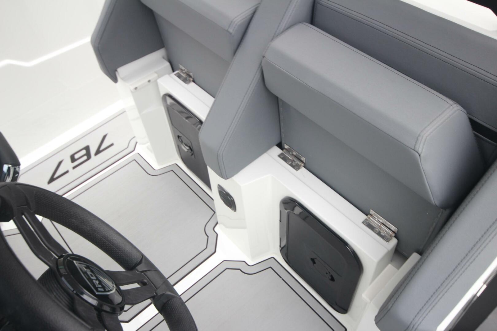 The IRON 767 is the perfect balance of power and stability, designed to deliver exceptional performance in all conditions. Powered by quiet and efficient outboard engines, it offers the choice of 250 or 300 horsepower. Both options provide impressive torque, effortless handling, and a thrilling top speed of 40-50+ kn. Engineered with precision for stability, the IRON 767 glides smoothly through the water, ensuring superior handling and a comfortable ride, even in challenging weather. With its elevated DNA and cutting-edge features, the IRON 767 sets a new standard in 26-foot class, making every journey unforgettable.