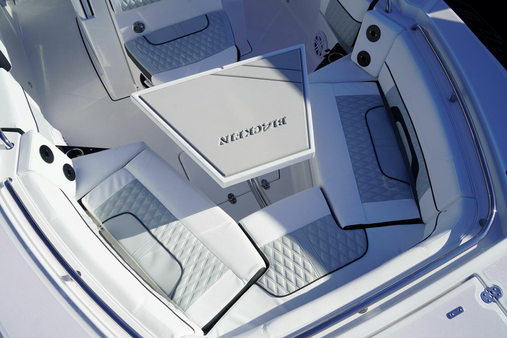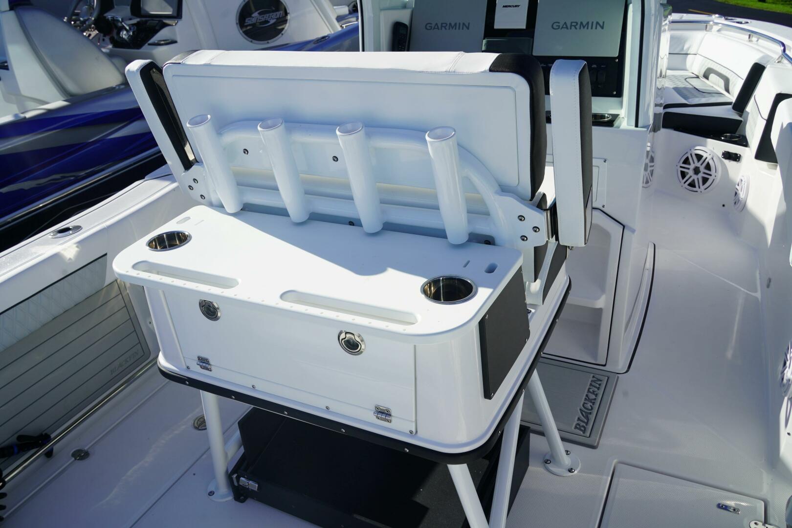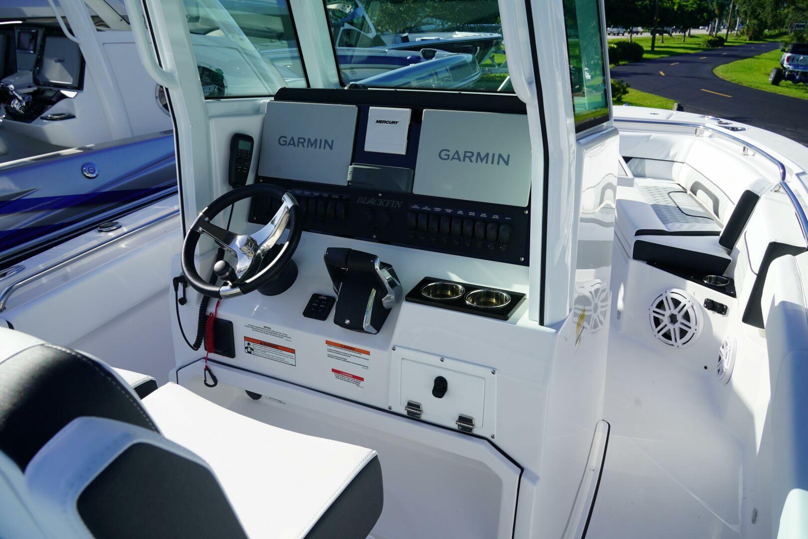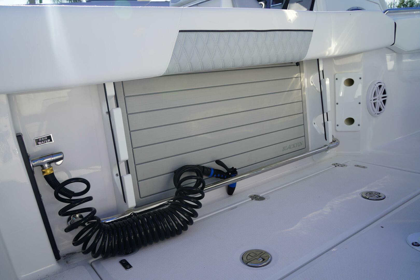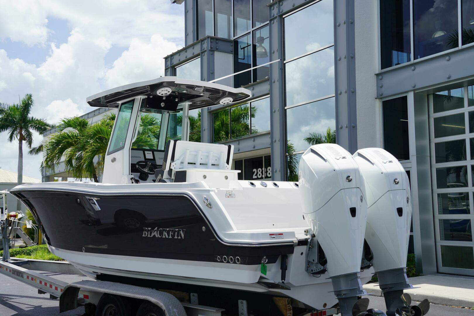 | Notable Upgrades: 2025 Blackfin 252CC - Titanium Twin Mercury 225XL Four Stroke DTS- White Arctic Hull Sides W/Colored Boot Stripe & Matching Upper Underside Hardtop Color Anchor Windlass w/SS Anchor & Thru Hull Roller Hardware Helm Floor Pad – Seadek Transom Shower w/Pressurized Water (Cold Only) Swim Platform Inlay – Seadek Bow Shade Cockpit Table w/Seadek Inlay,Pedestal, Vertical Side Mount Premium Stereo Upg Pkg, Incl Dual GPS/Chartplotter - 8612, 315 VHF Transducer B60 600 Watts (Garmin Electronics Option Toilet, Electric w/Holding Tank, Indicator & Pump-Out Deck Macerator w/Overboard Discharge (Req. Electric Toilet FEATURES AT A GLANCE- No matter what your destination is, the 252CC will take you there in style and comfort. Designed for everyday performance and fishability, the 252CC’s unique hull design offers a smooth, dry, top performing ride. The 252CC is equipped with a fiberglass hardtop & leaning post with a command center featuring a custom-designed helm seat with flip-up bolster, high protective windscreen, gunnel and hardtop mounted rod holders, baitwell and in-floor macerated fish-boxes with pump-outs, making the 252CC perfect for handling your big offshore fishing adventures. |