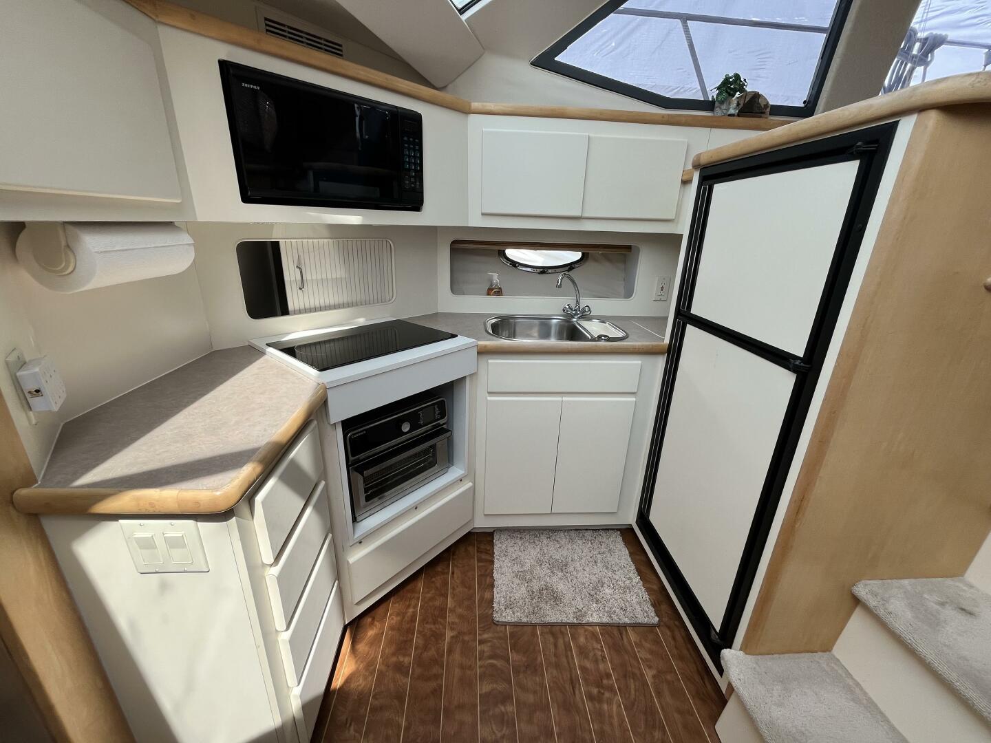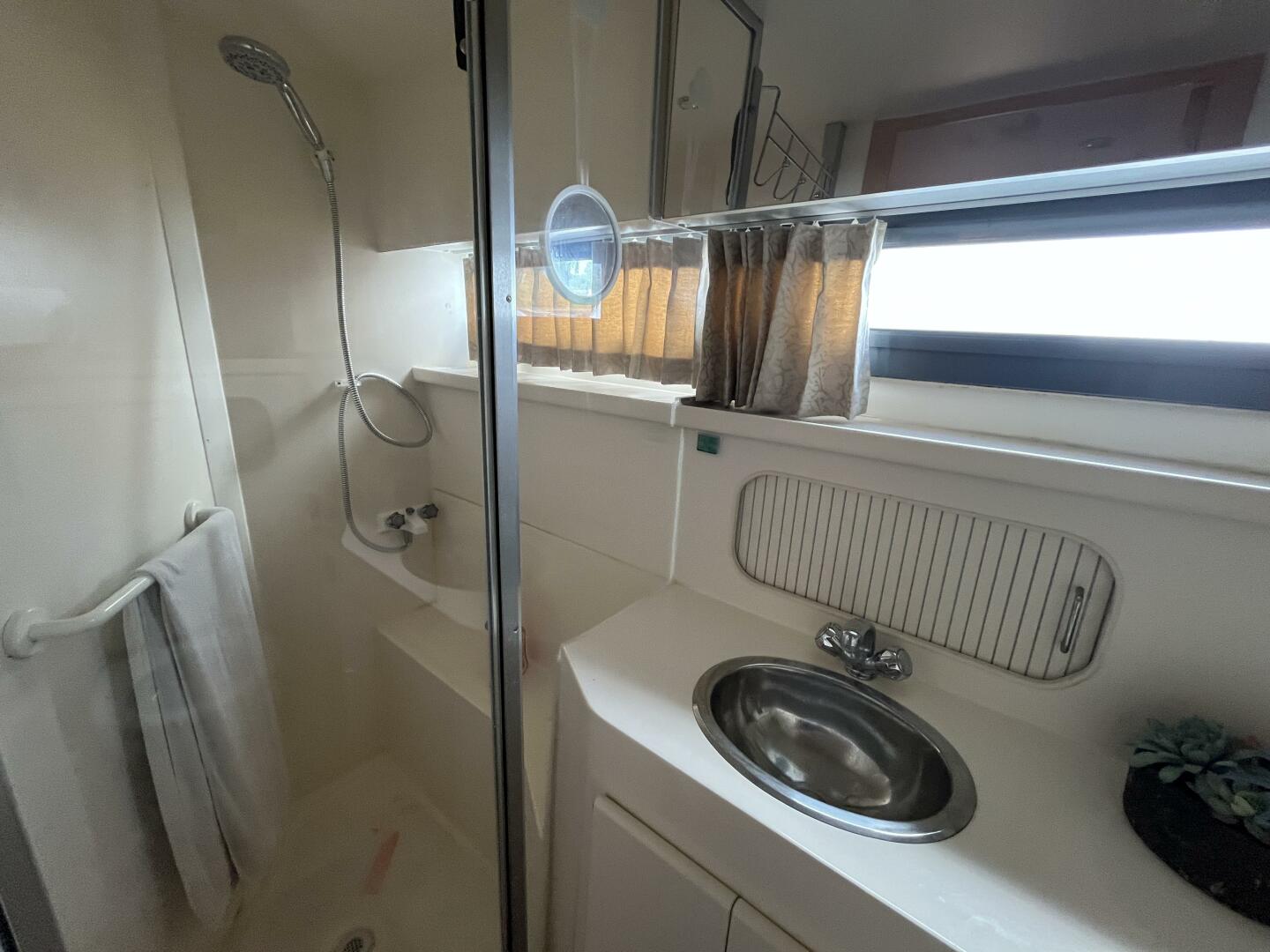 Powering this gorgeous yacht are Twin Crusader 454 EFI Engines with only 803 Hours! There is a 6.5 KW Kohler Generator onboard with 542 Hours.