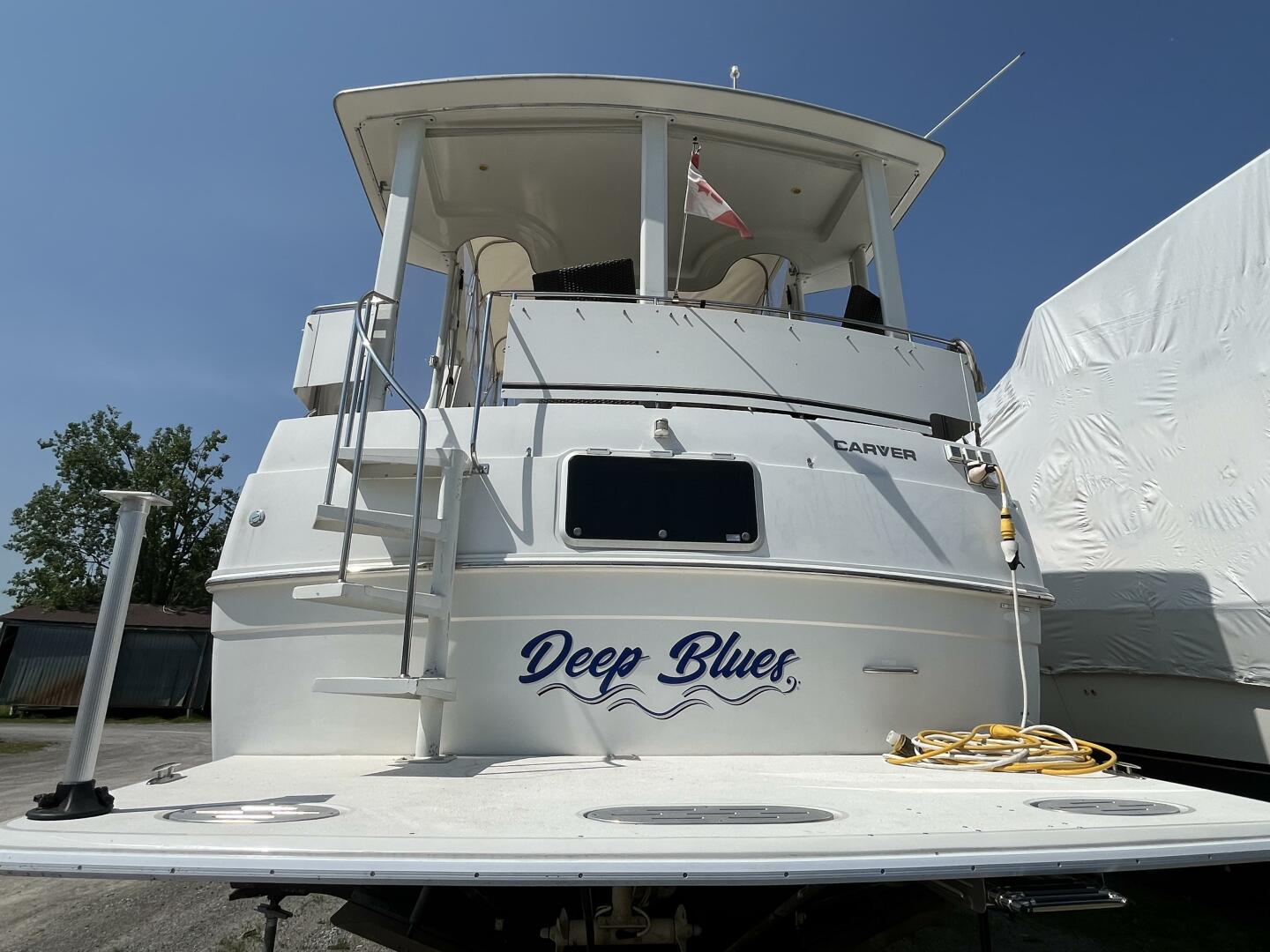 This 1996 Carver 370 Aft Cabin looks much younger.