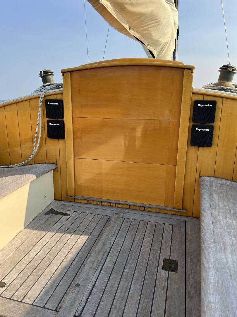 Weighing under 8,000 lbs, Tendress delivers a lively, responsive sailing experience with the feel and grace of a much larger yacht. All control lines lead aft, making her a joy to sail solo or with friends.