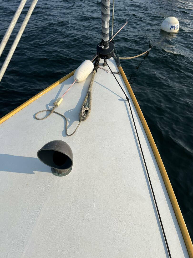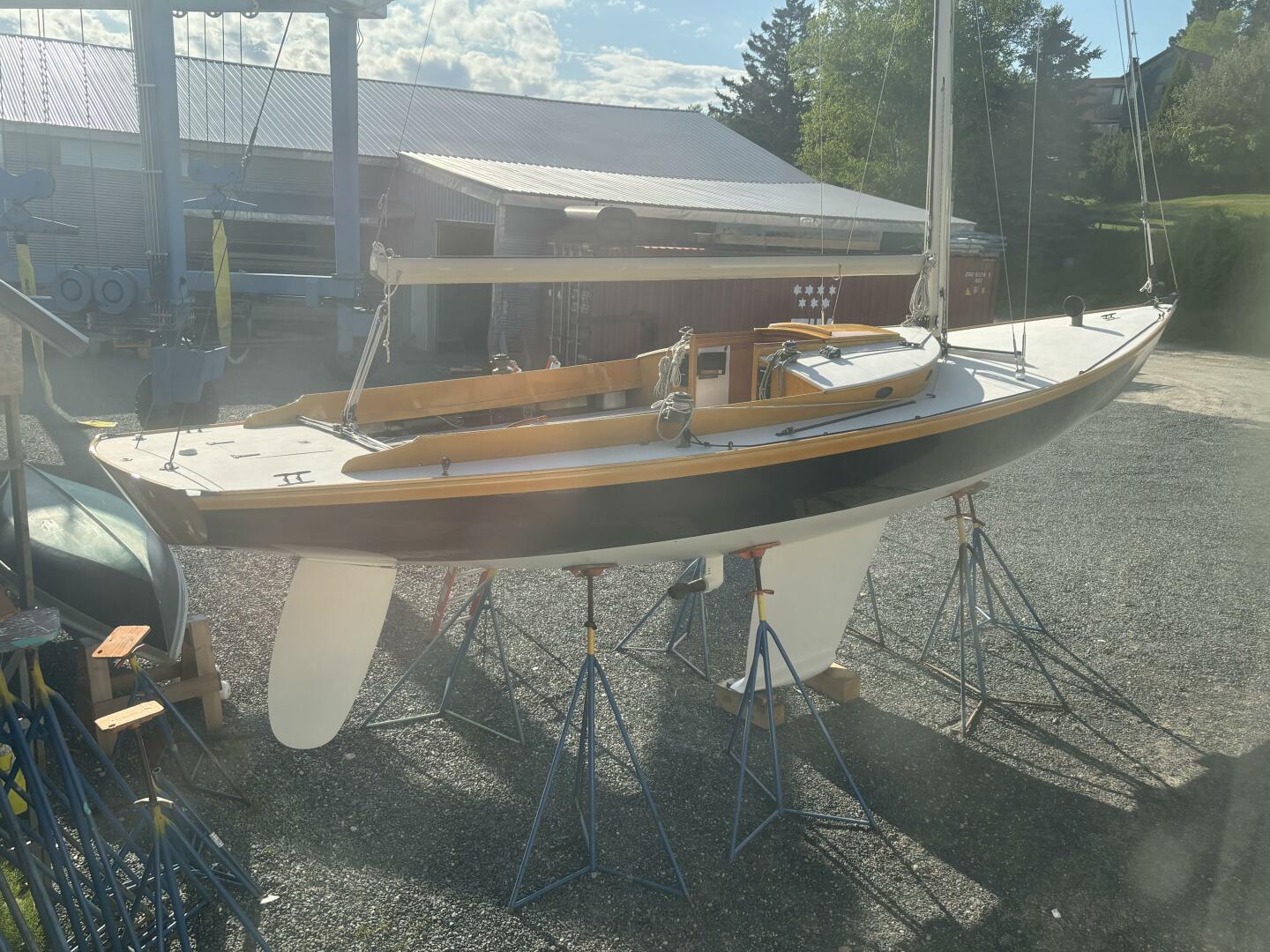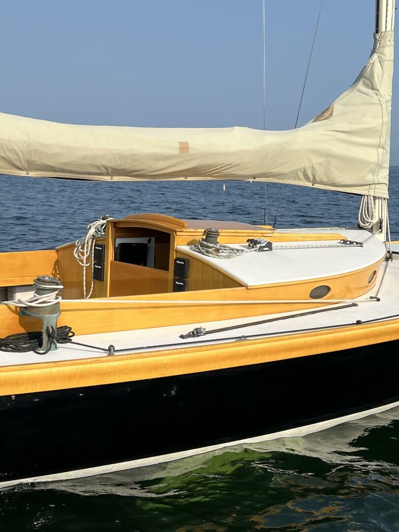 Highlights: • Lightweight wood-composite construction. • Powerful performance under sail with big-boat feel. • All lines led aft for effortless single-handing. • Expansive 9’ cockpit with custom teak benches. • Traditional cuddy with enclosed head, vee-berth, and galley. • Recent paint and varnish