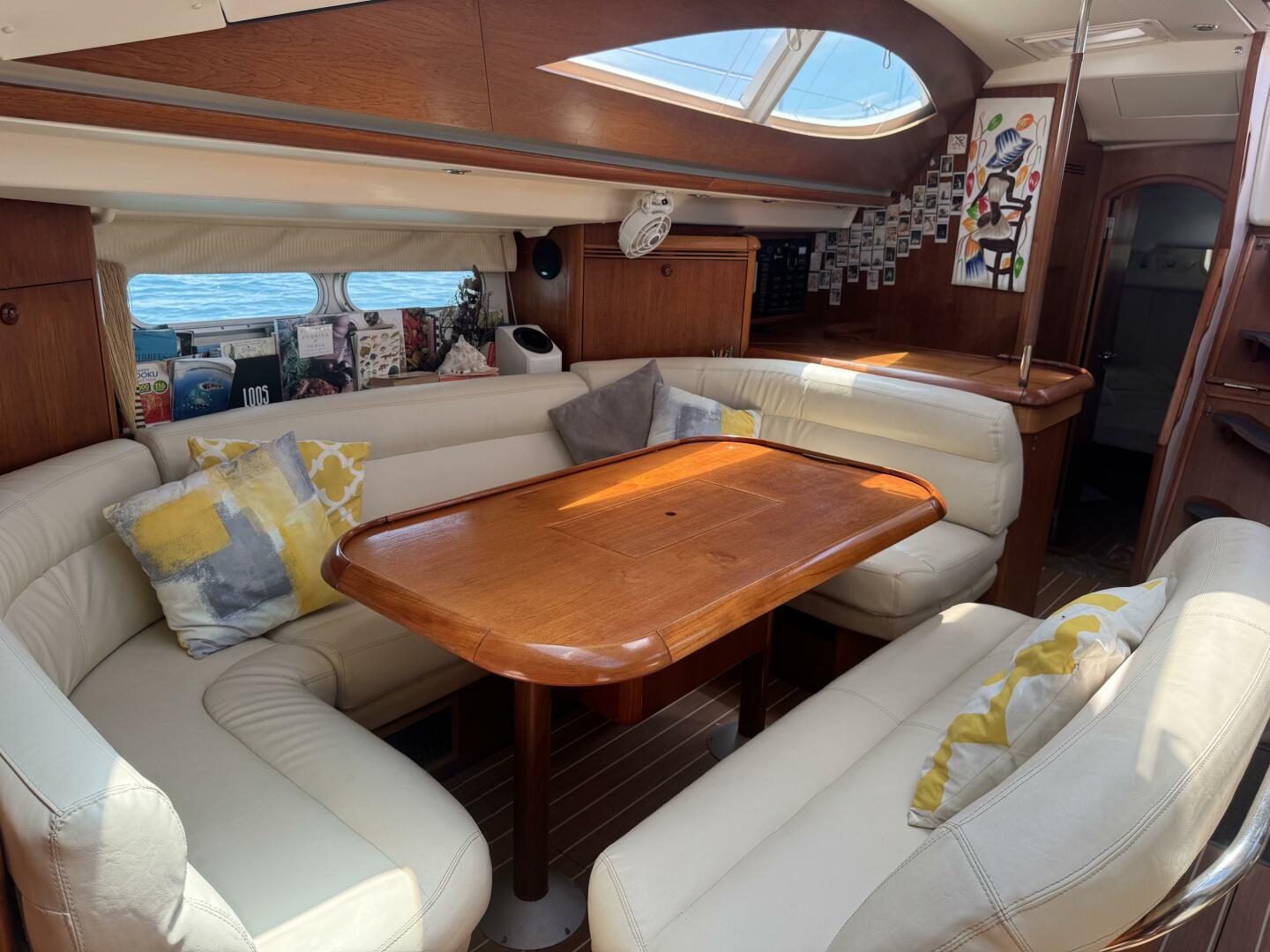- Large wraparound settee incorporated in to most of the midship of the vessel