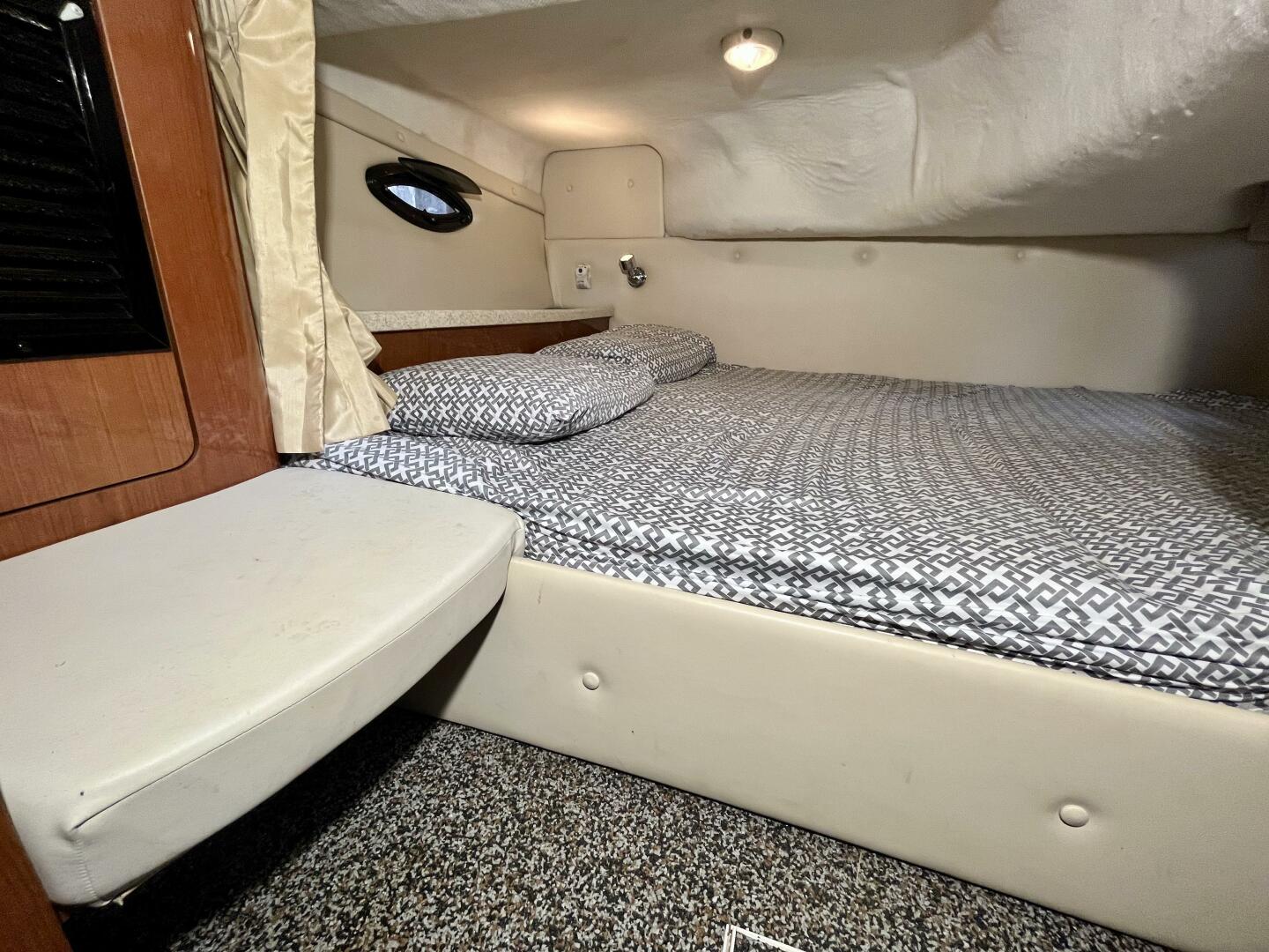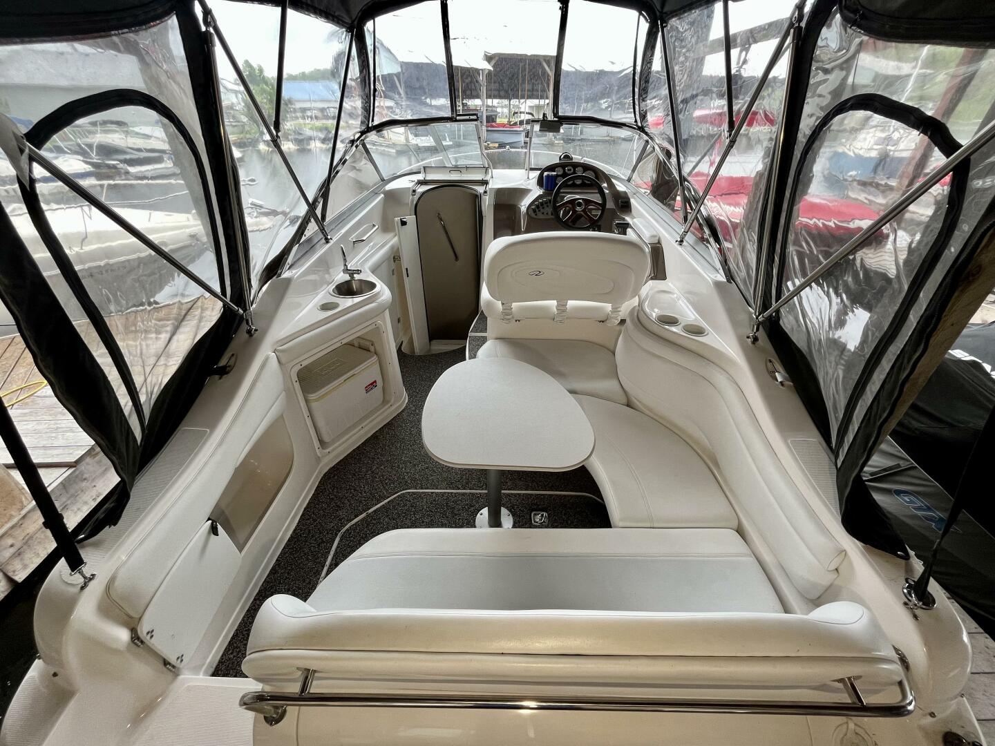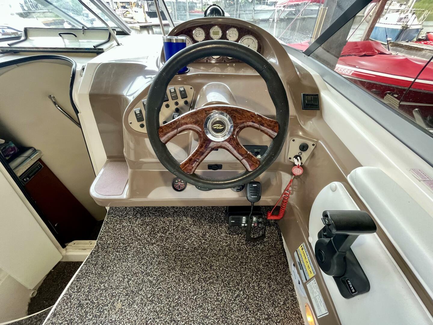270HP - EFFICIENT MERCRUISER 5.0L - 200 HRS - EXTENDED SWIM PLATFORM W/ SWIM LADDER - FULL ENCLOSURE - WRAP AROUND COCKPIT SEATING W/ DINETTE, WETBAR W/ DESIGNATED COOLER STORAGE - ELECTRIC WINDLASS - VHF RADIO - TRIM TABS - DEPTH SOUNDER - CENTRE WALK THROUGH - FULL GALLEY & HEAD - A/C & HEAT +++