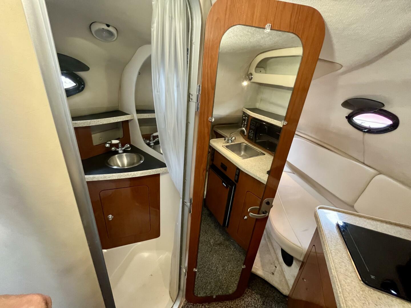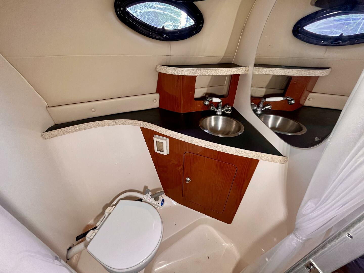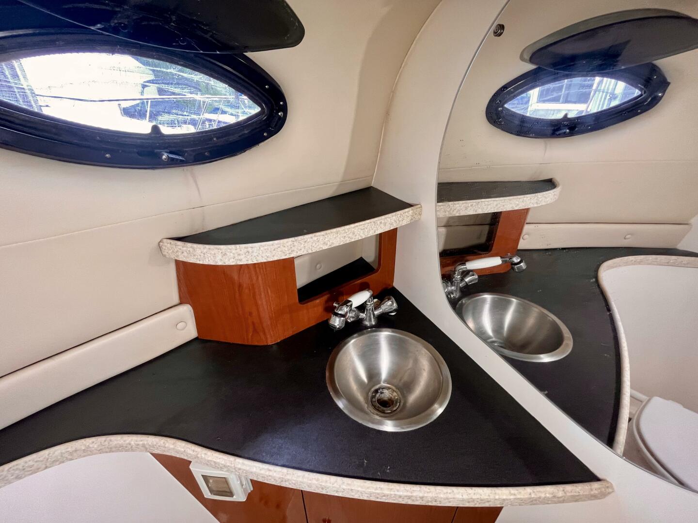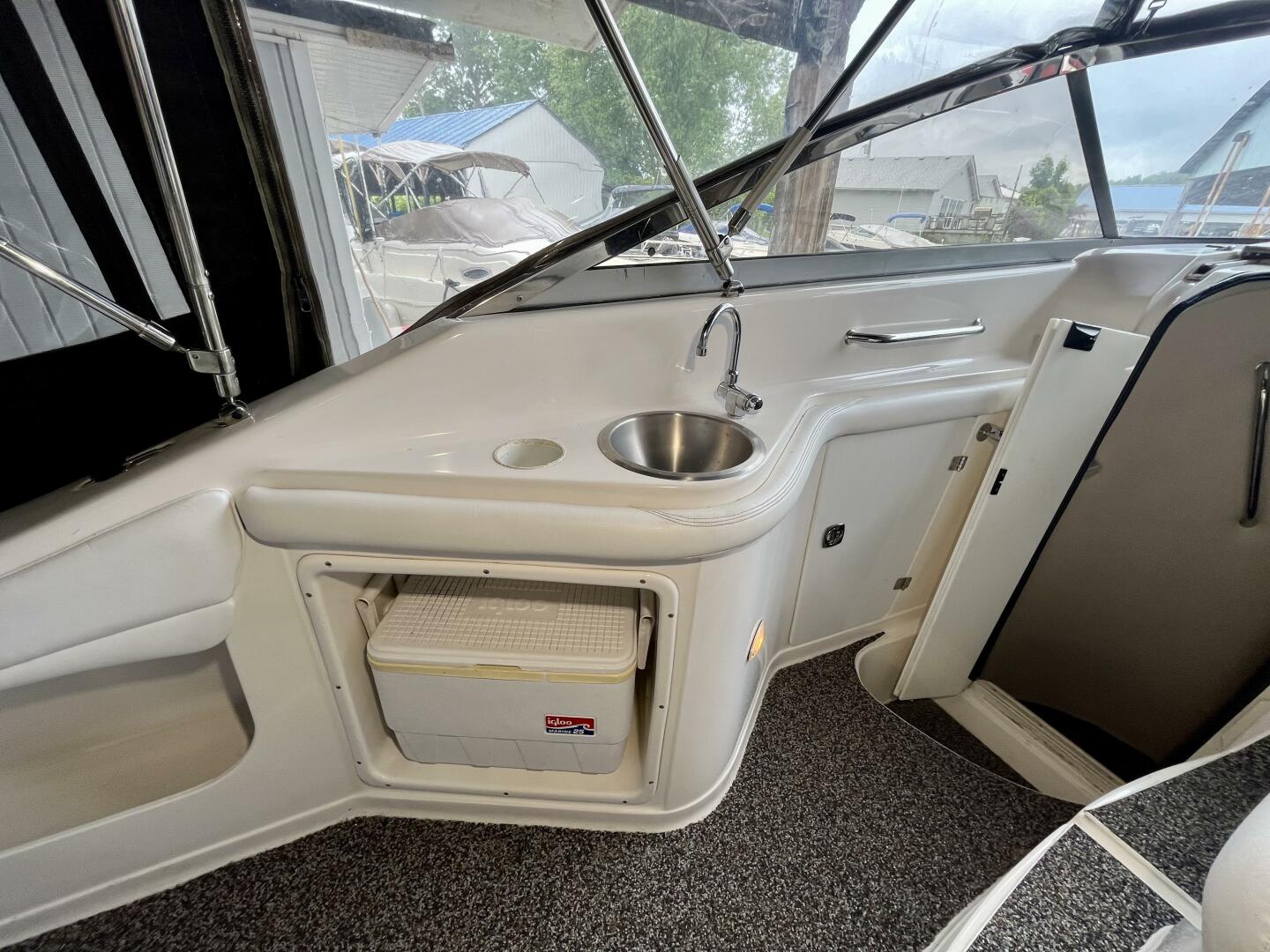 270HP - EFFICIENT MERCRUISER 5.0L - 200 HRS - EXTENDED SWIM PLATFORM W/ SWIM LADDER - FULL ENCLOSURE - WRAP AROUND COCKPIT SEATING W/ DINETTE, WETBAR W/ DESIGNATED COOLER STORAGE - ELECTRIC WINDLASS - VHF RADIO - TRIM TABS - DEPTH SOUNDER - CENTRE WALK THROUGH - FULL GALLEY & HEAD - A/C & HEAT +++