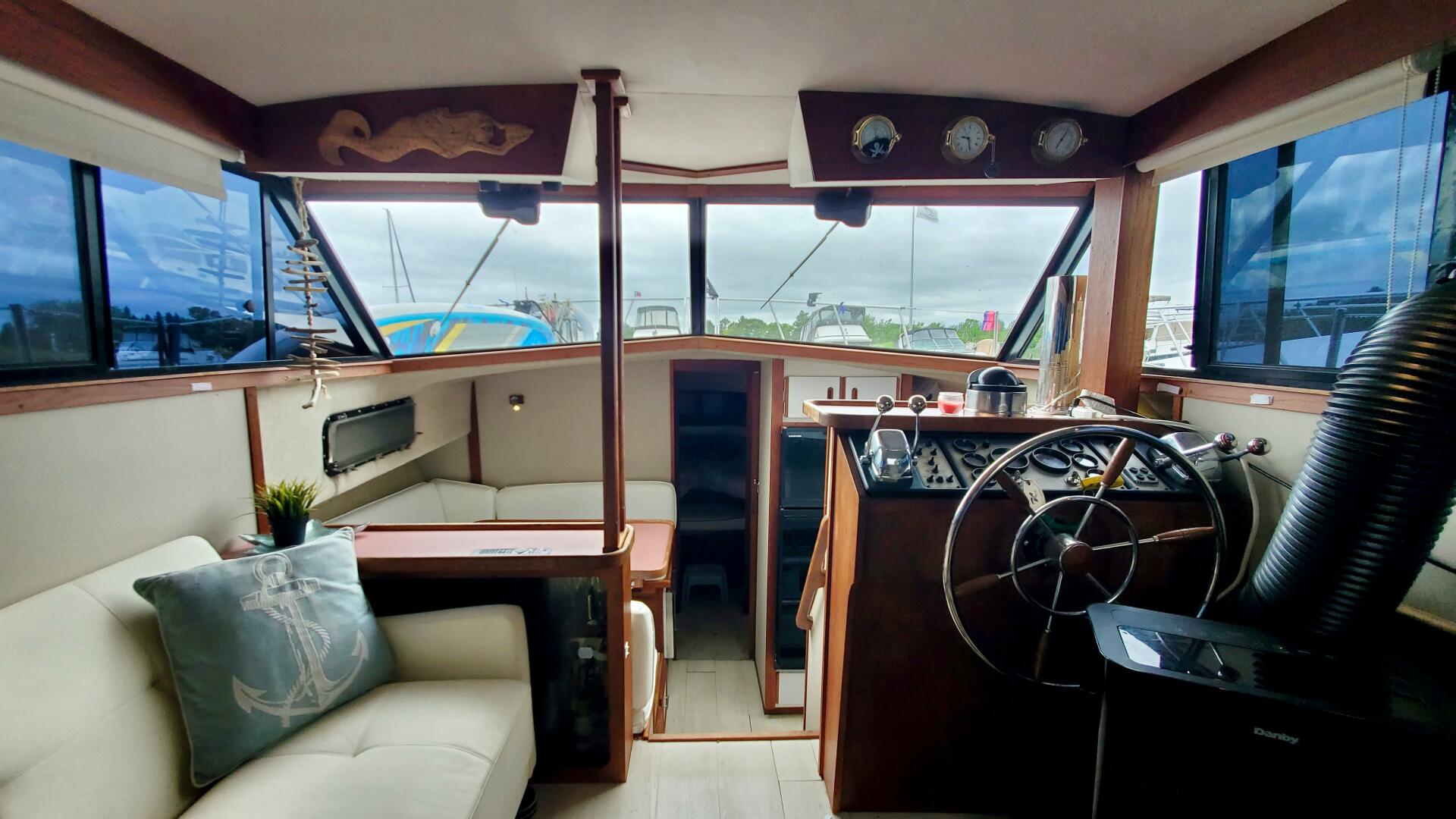 "Liquid Asset" is your invitation to endless adventure and unmatched comfort aboard a classic cruiser. This beautifully maintained 1987 Carver 3607 boasts reliable twin Crusader engines, substantial solar power upgrades, and an impressive electronics package. Thoughtful enhancements include custom wrap-around seating, modern vinyl flooring, and a cozy diesel heater—ideal for spring or fall cruising.