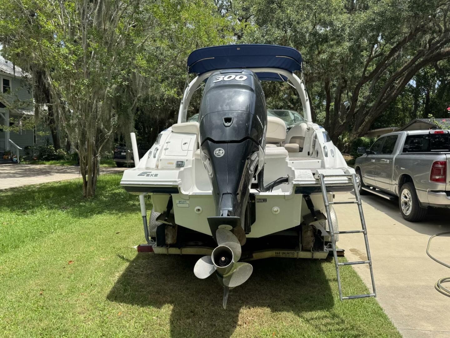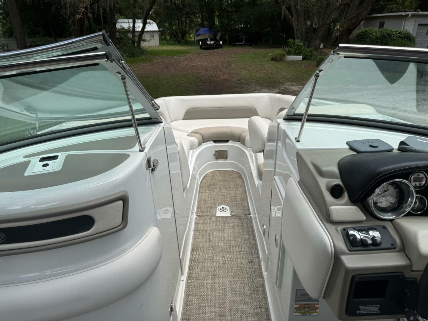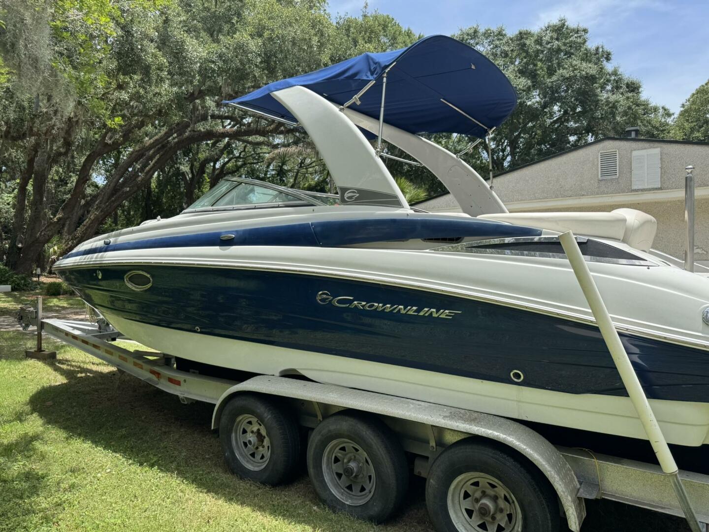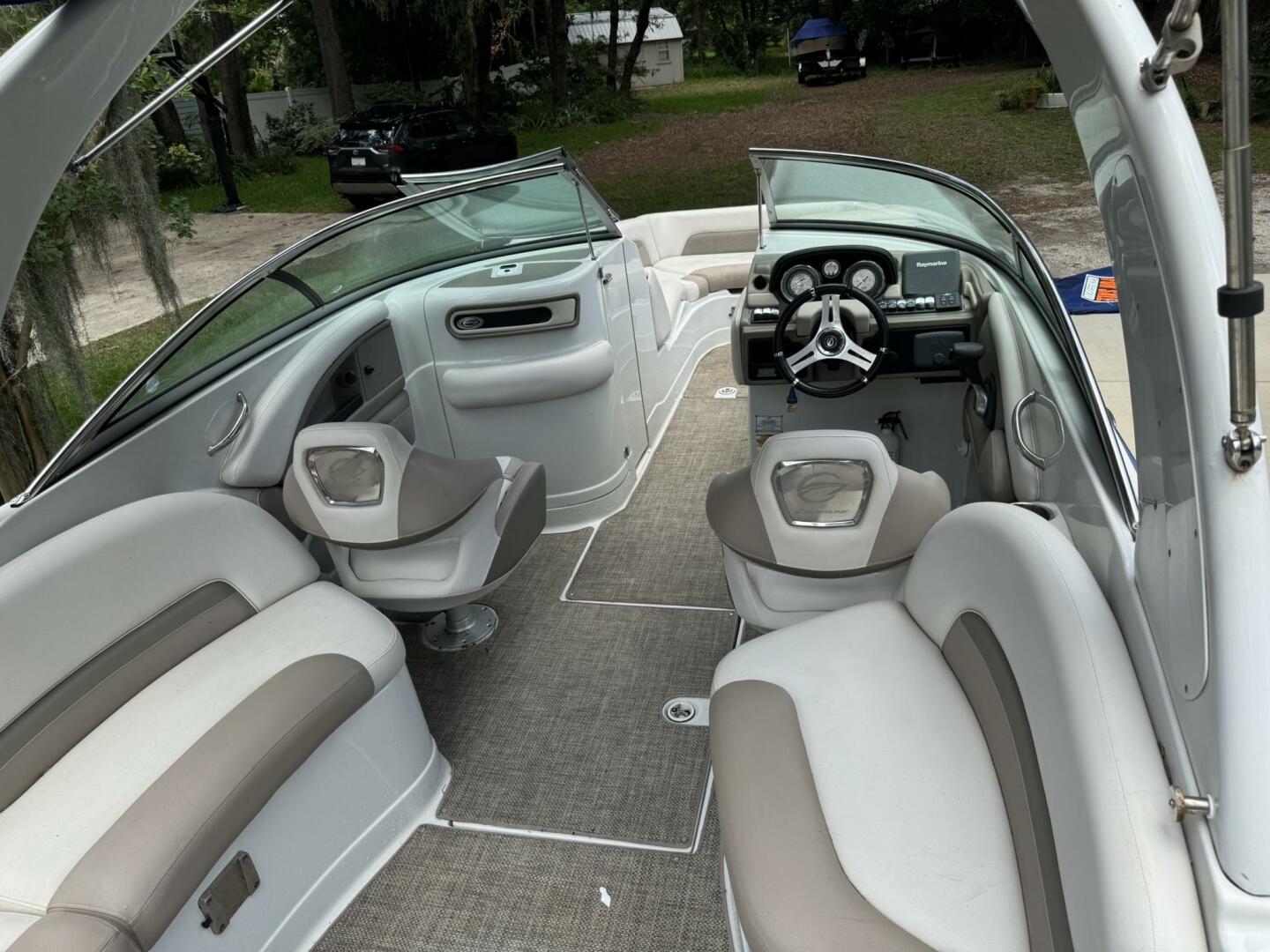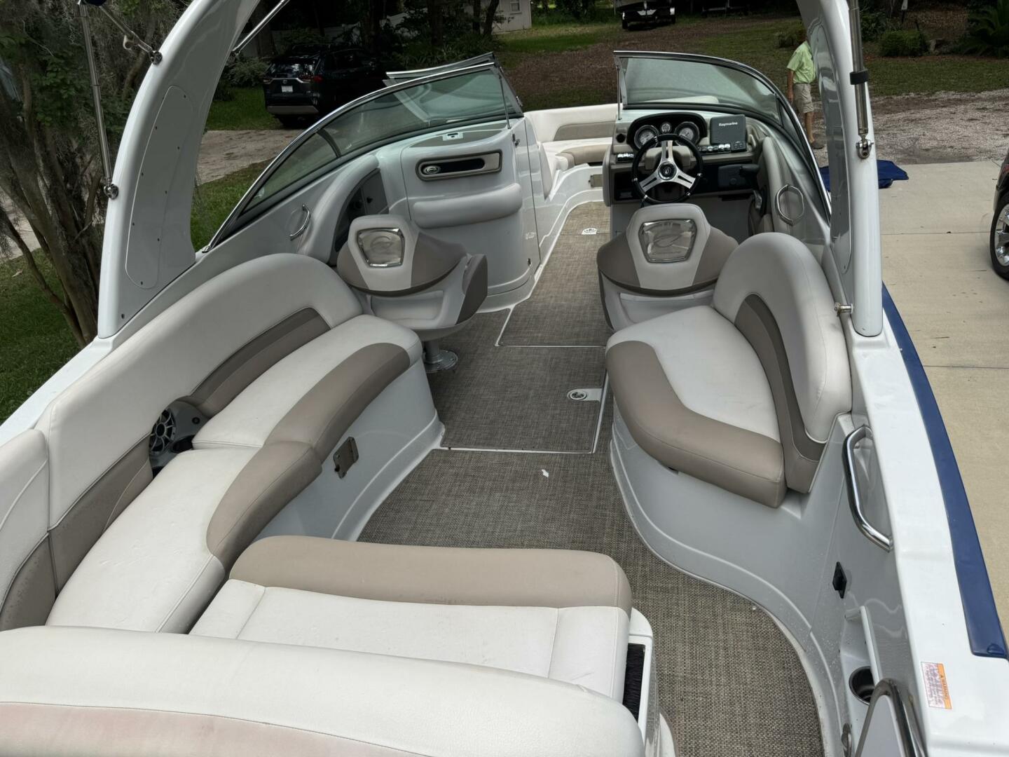 - Bimini top, snap-in carpet, stainless hardware, docking lights