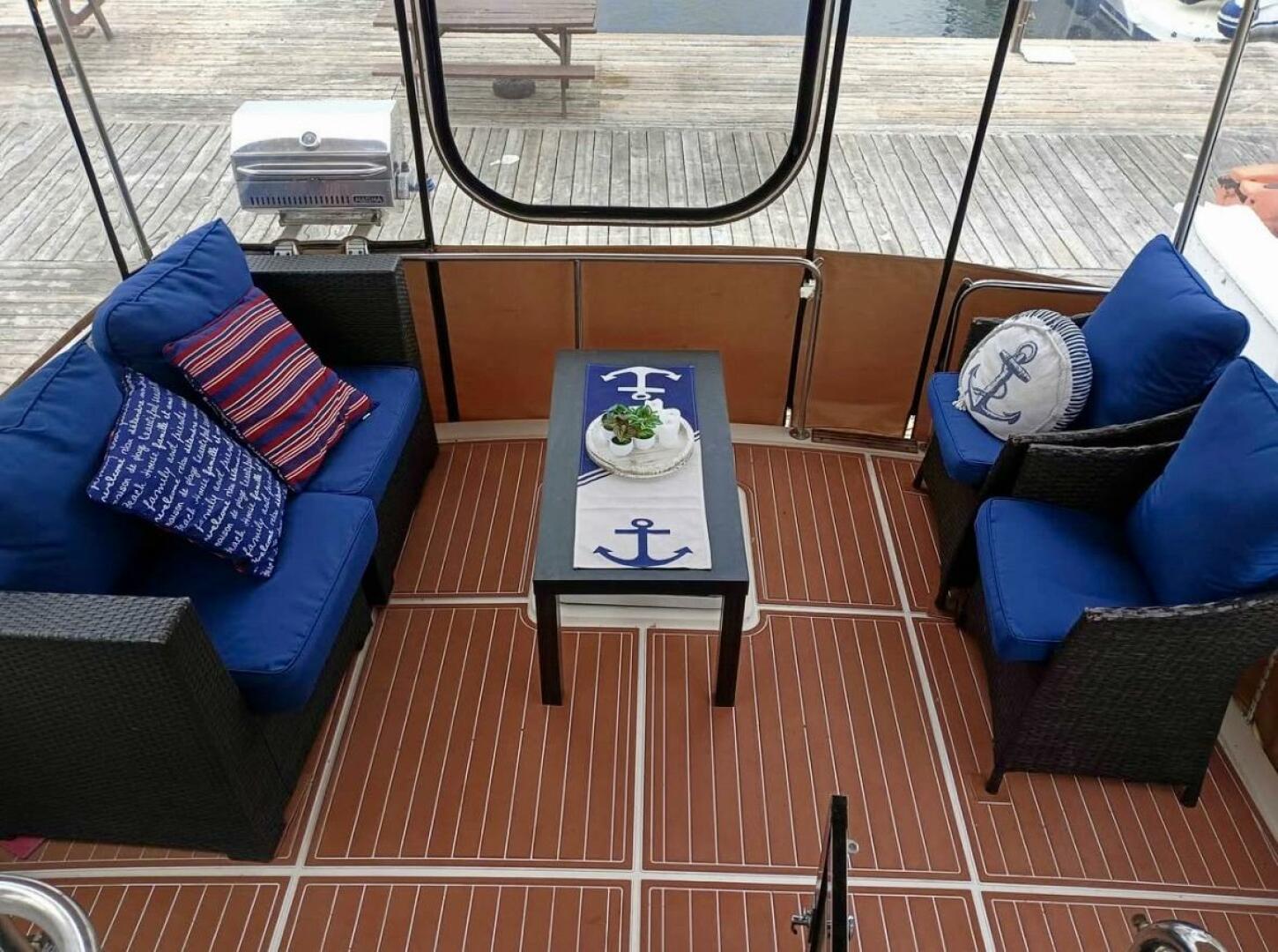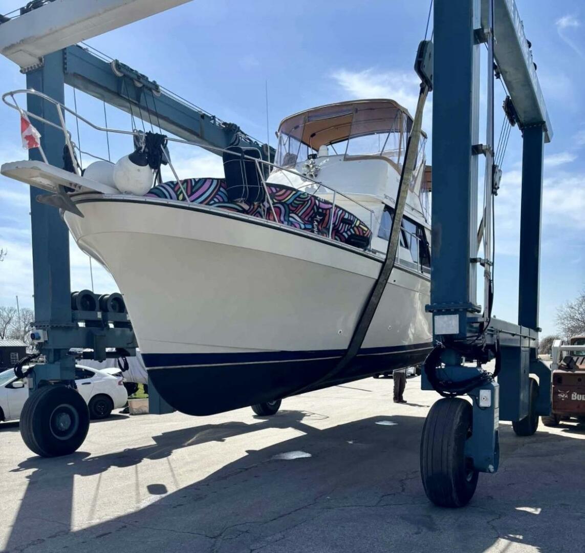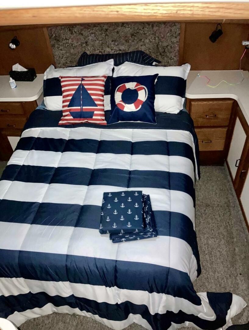 TWIN CRUSADER 350'S W/ 934 HOURS - 540 HP - DIRECT SHAFT DRIVE - GPS CHARTPLOTTER - VHF RADIO - LEWMAR WINDLASS - SEADECK FLOORING - COCKPIT & FLYBRIDGE FULL ENCLOSURE - BBQ - CABIN A/C & HEAT - GALLEY FRIDGE, FREEZER, 2 -BURNER STOVE & MICROWAVE - 2 STATEROOMS - 2 HEADS - SEPARATE SHOWER - SLEEPS 6