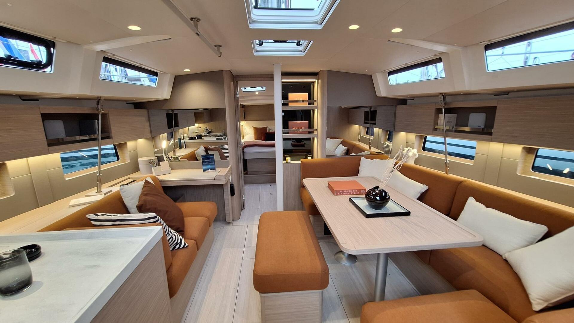 The interior of the Oceanis 47 is meticulously designed, offering an elegant and soothing environment.